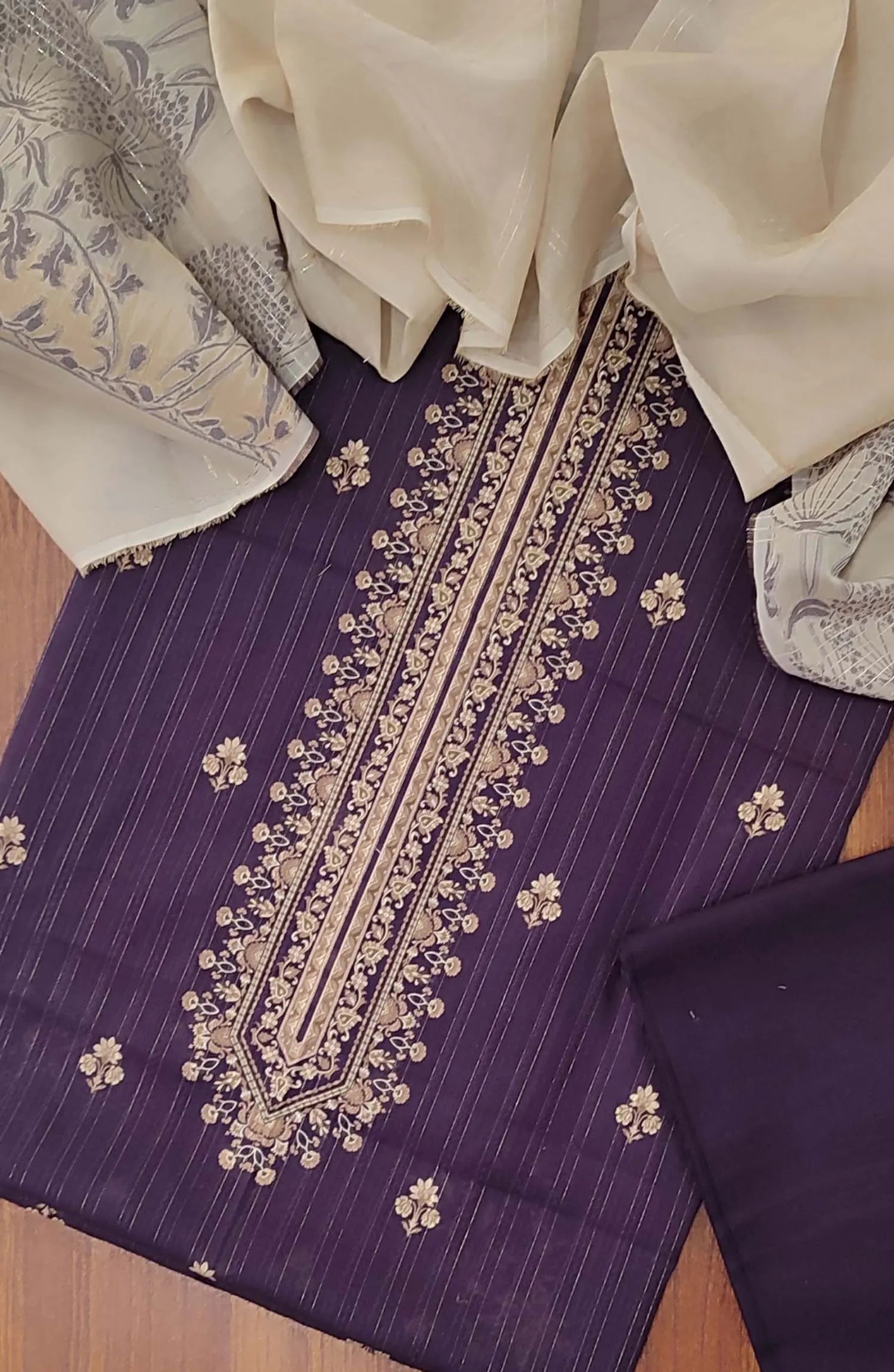 Sadabahar Luxury Embroidered Viscose Stitched 3 Piece Suit - Design-04 - SBD25XLVC - Navy Blue - Winter Collection