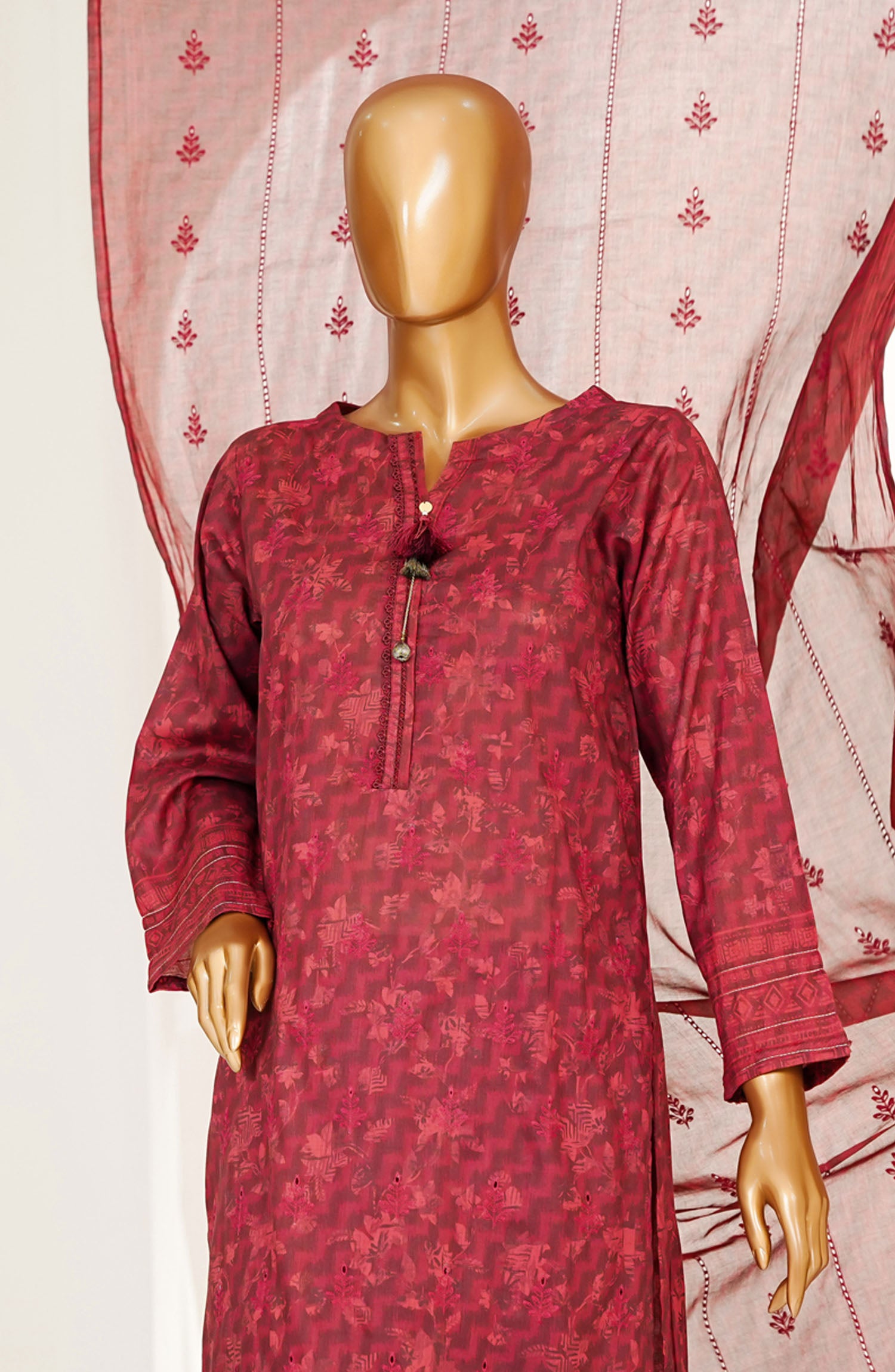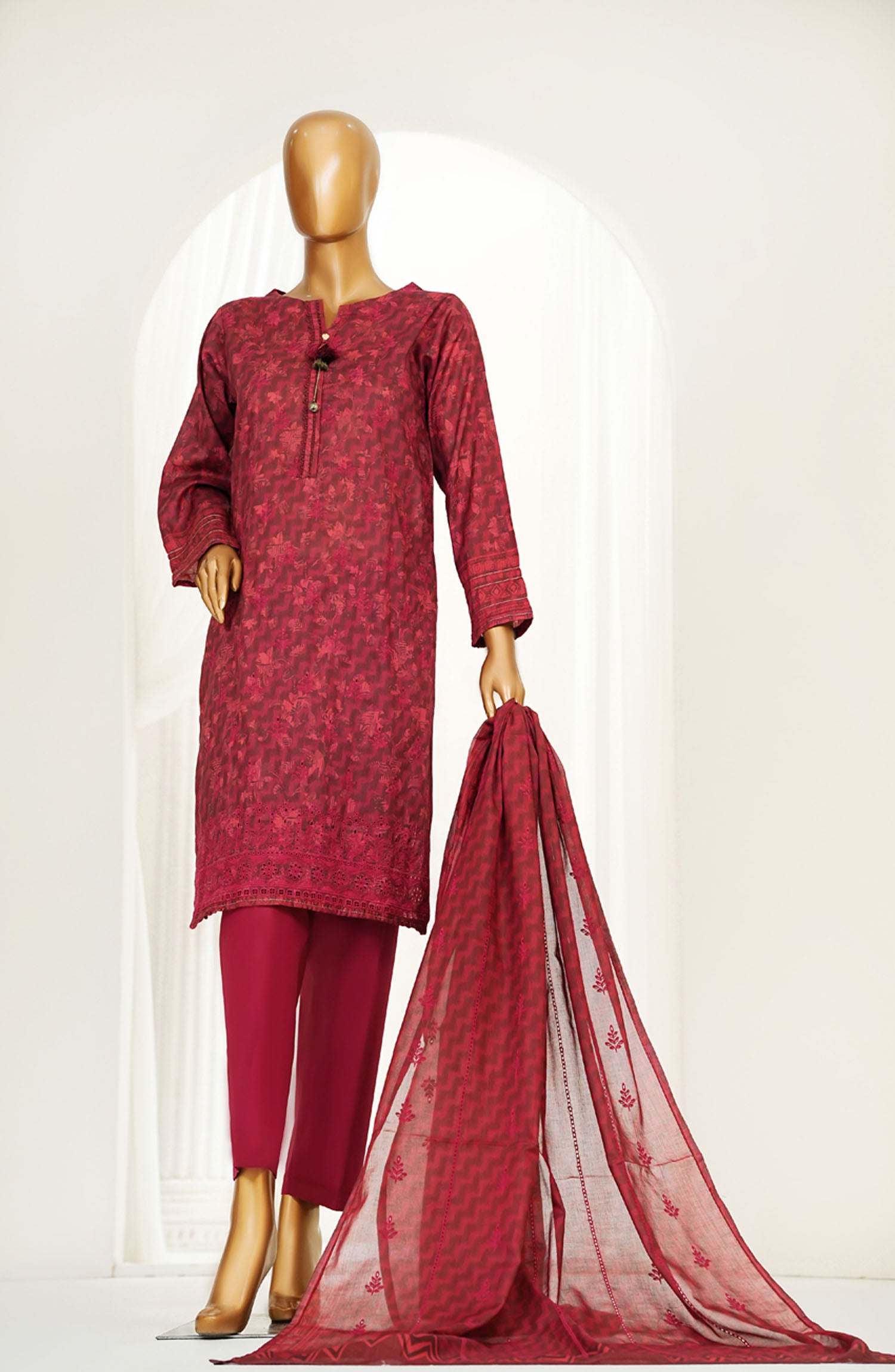 Home Printkari by HZ Textile Embroidered Chikankari Lawn Stitched 3 Piece Suit - HZ25PNK4 - LPK-3P-503 MAROON - Summer Collection