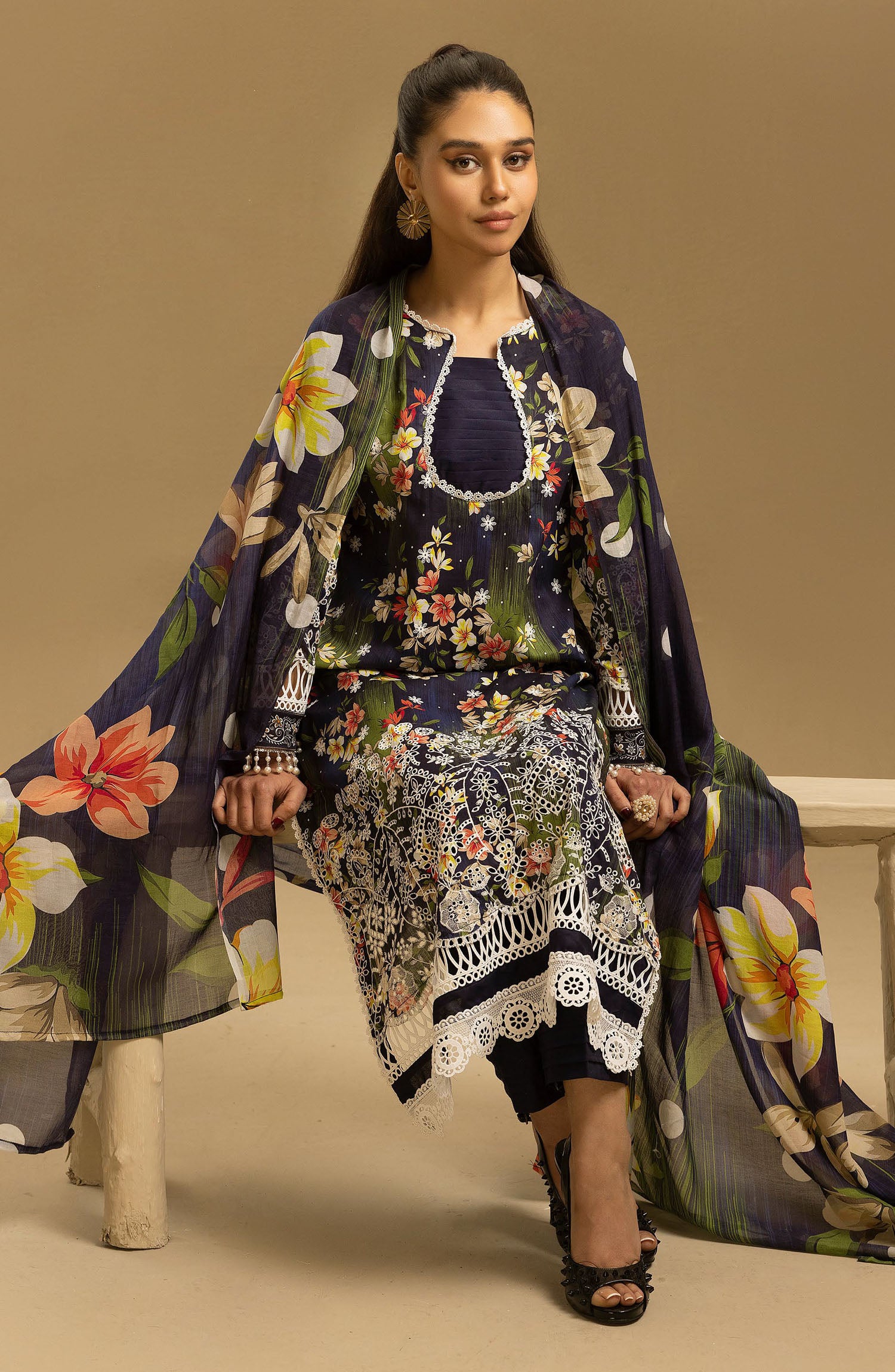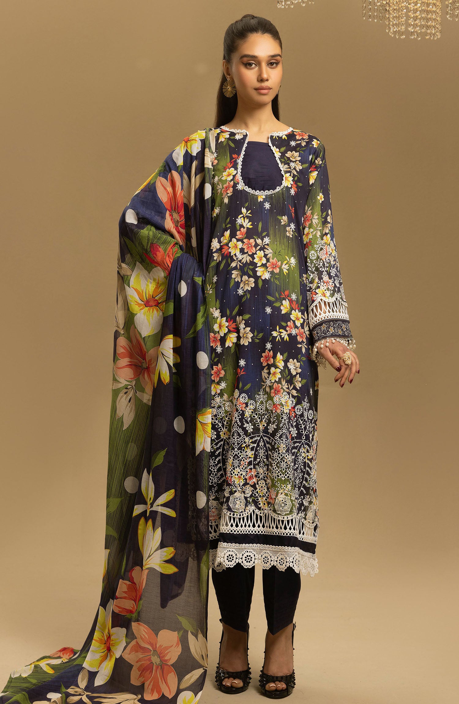 Sadabahar Signature Embroidered Khaddar Stitched 3 Piece Suit - Design-03 - SBD25SNA - Blue - Winter Collection
