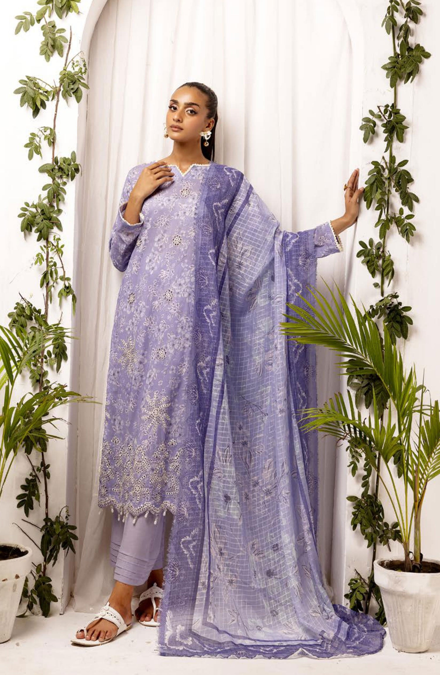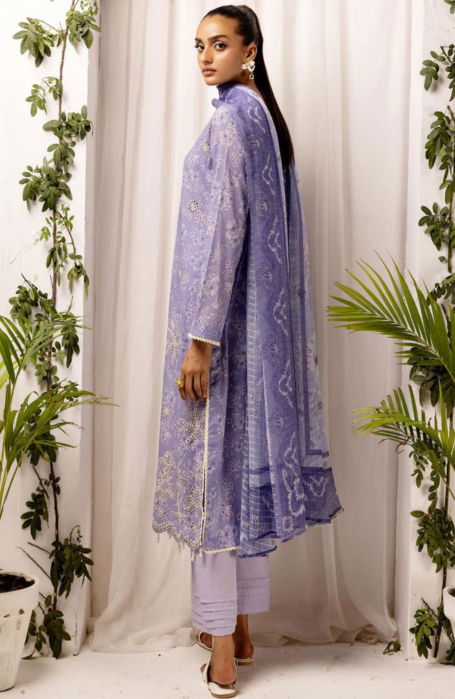 Printkari Embroidered and Printed Unstitched Collection By NUR Vol 03 has been styled in the image for photography and illustrative purposes.