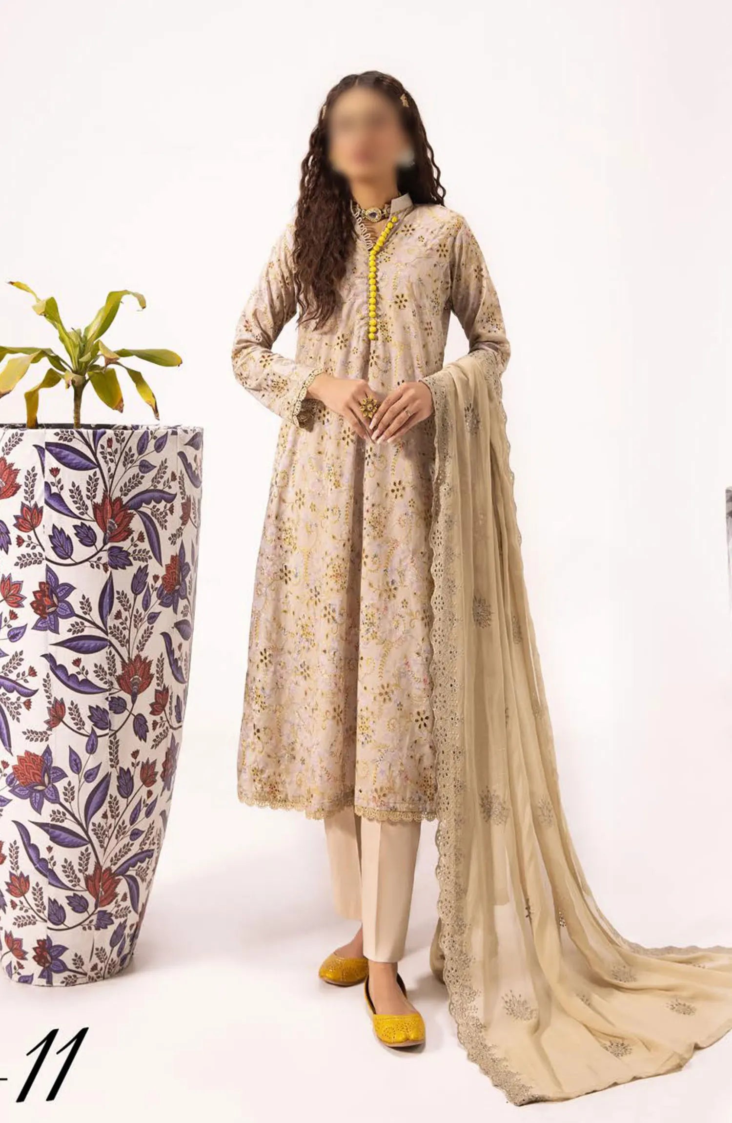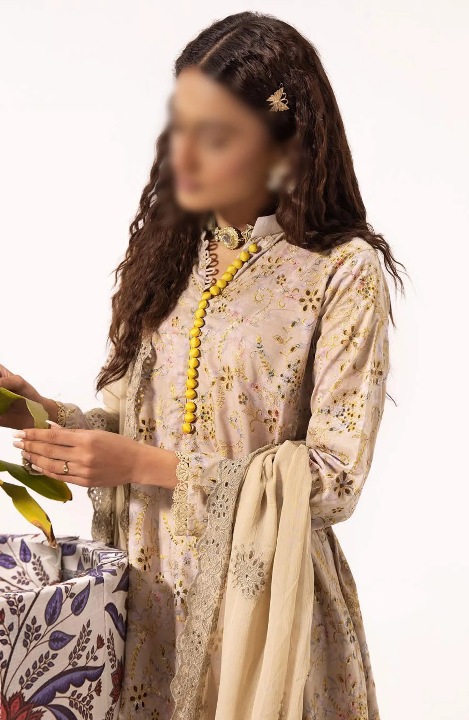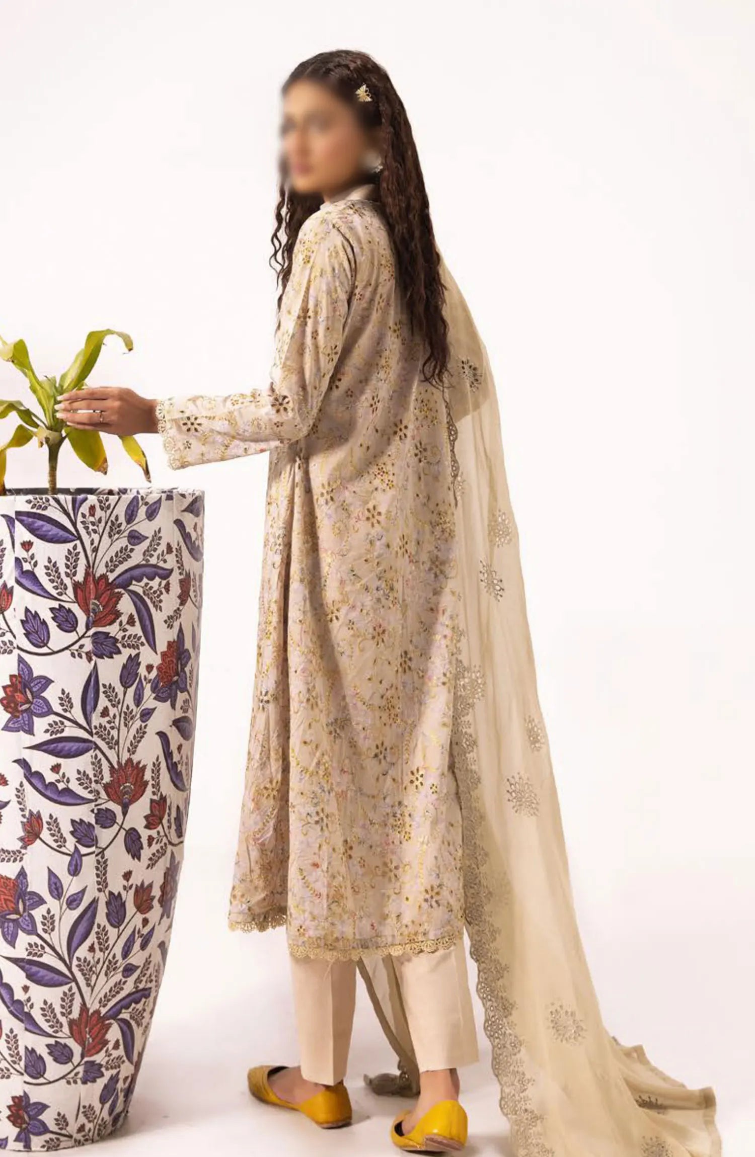 Shanzey Printed Cambric Stitched 3 Piece Suit - SHK-4901 - SHZ25CAM - Off White - Girls Winter Collection