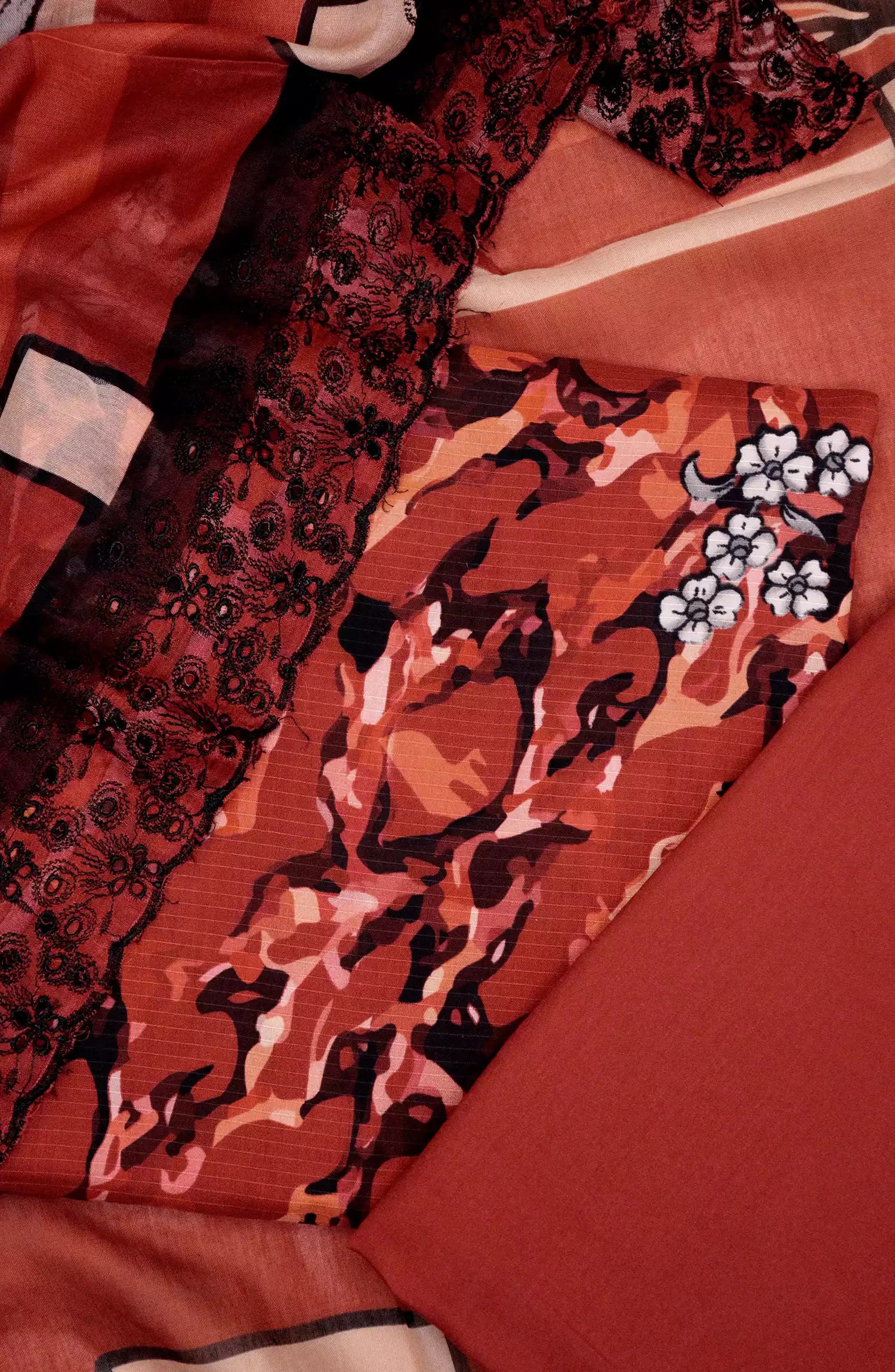 Printkari Unstitch Printed Viscose Collection with Emb Slub Voile Dupatta - Design 02
