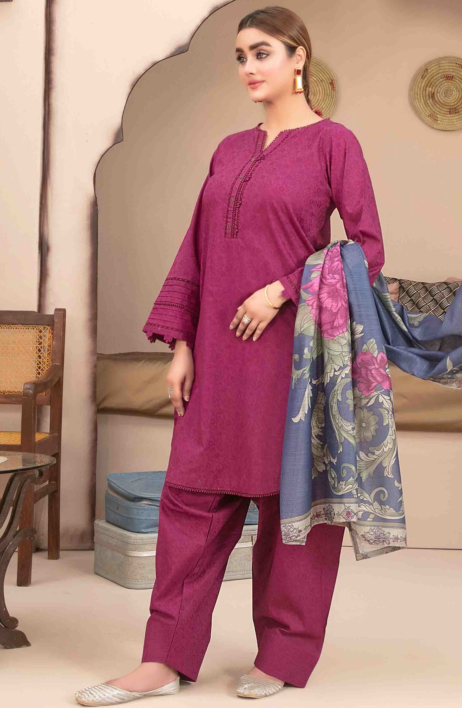 Modest Embroidered Khaddar Stitched 3 Piece Suit - 10040-Pnk - MOD25WNT - Pink - Winter Collection