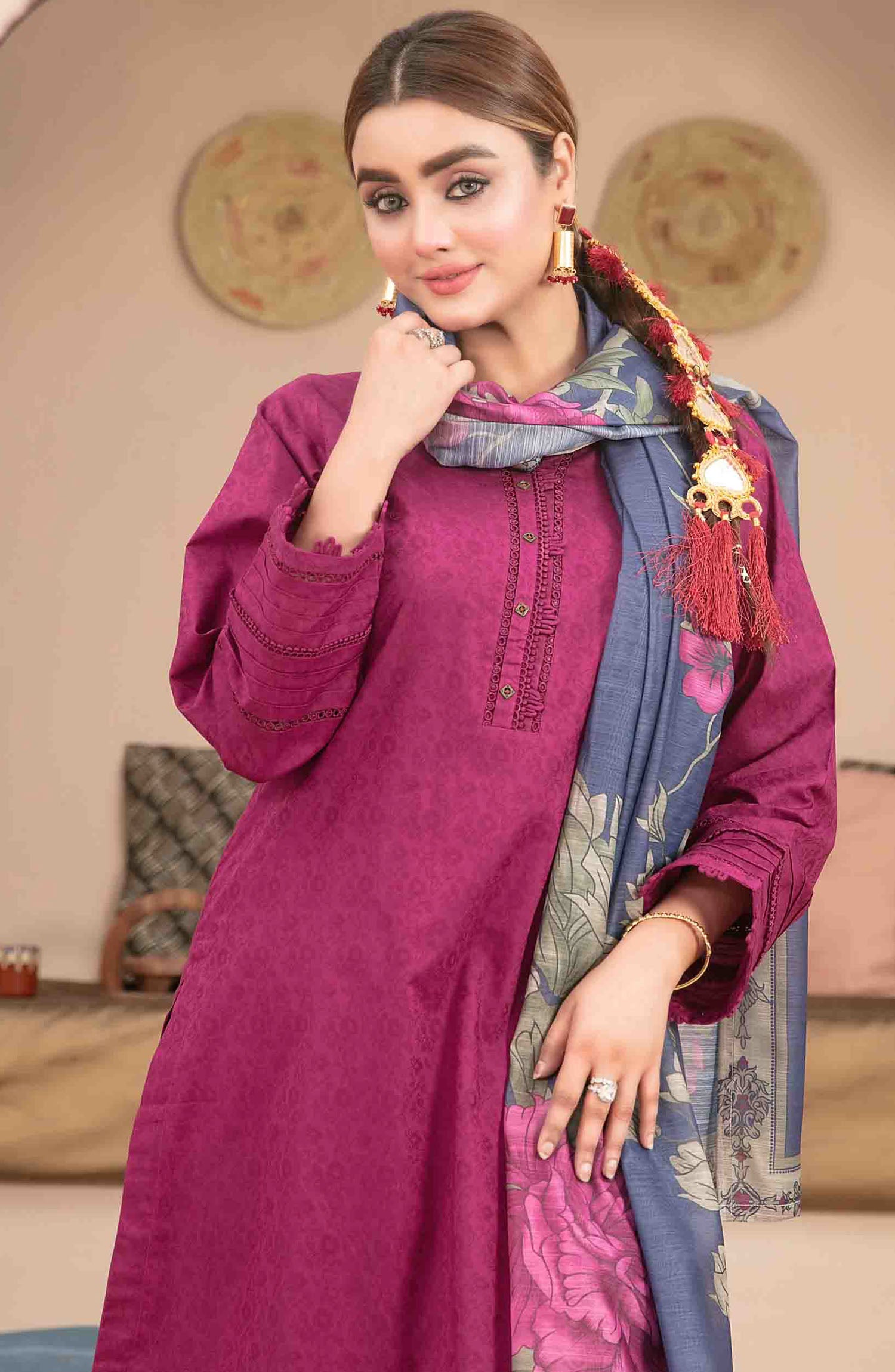 Modest Embroidered Khaddar Stitched 3 Piece Suit - 9940-Pnk - MOD25WNT - Pink - Winter Collection