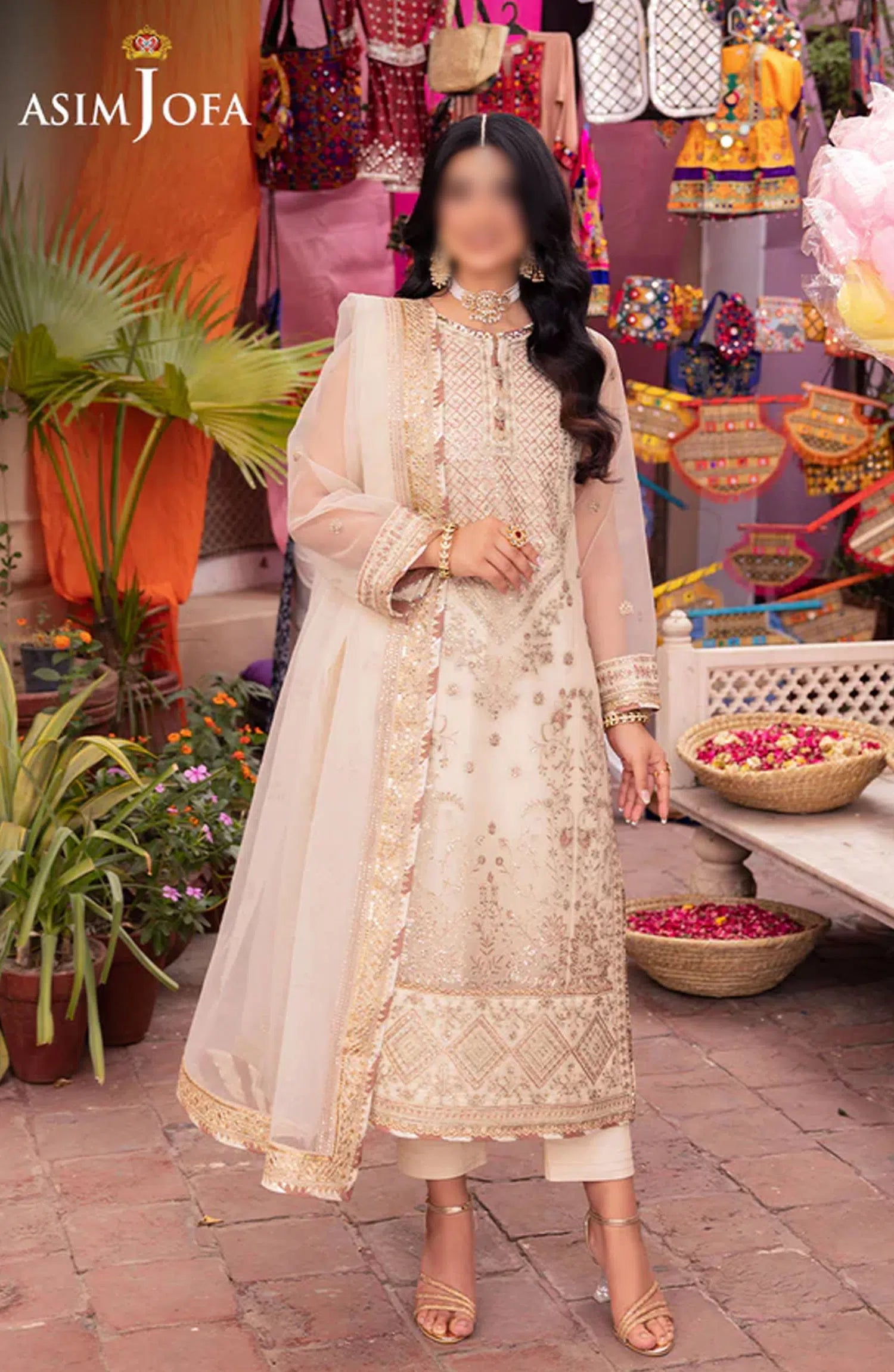 Pyaar Diyan Gallan Collection by Asim Jofa has been styled in the image for photography and illustrative purposes.