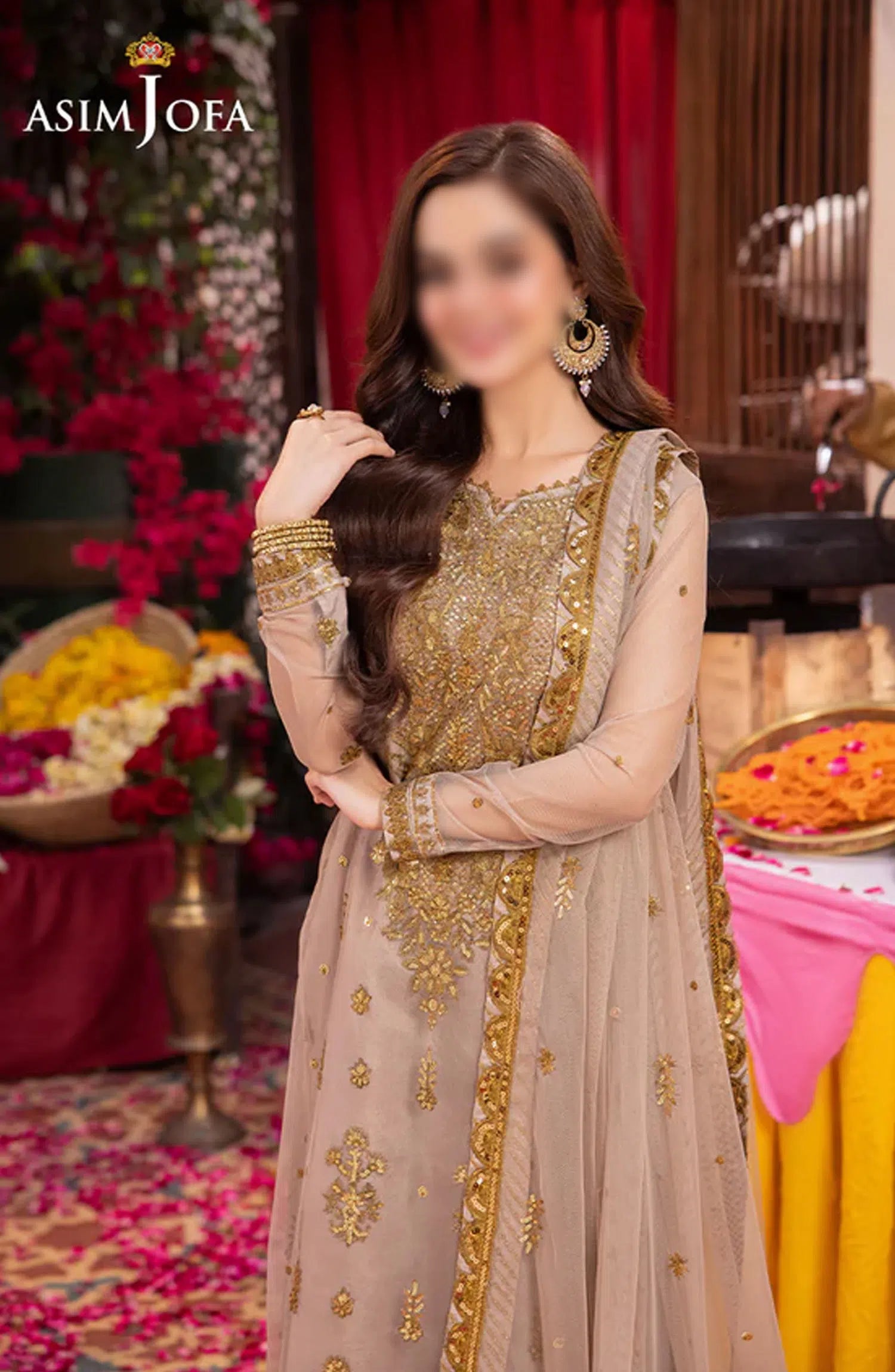 Pyaar Diyan Gallan Collection by Asim Jofa has been styled in the image for photography and illustrative purposes.