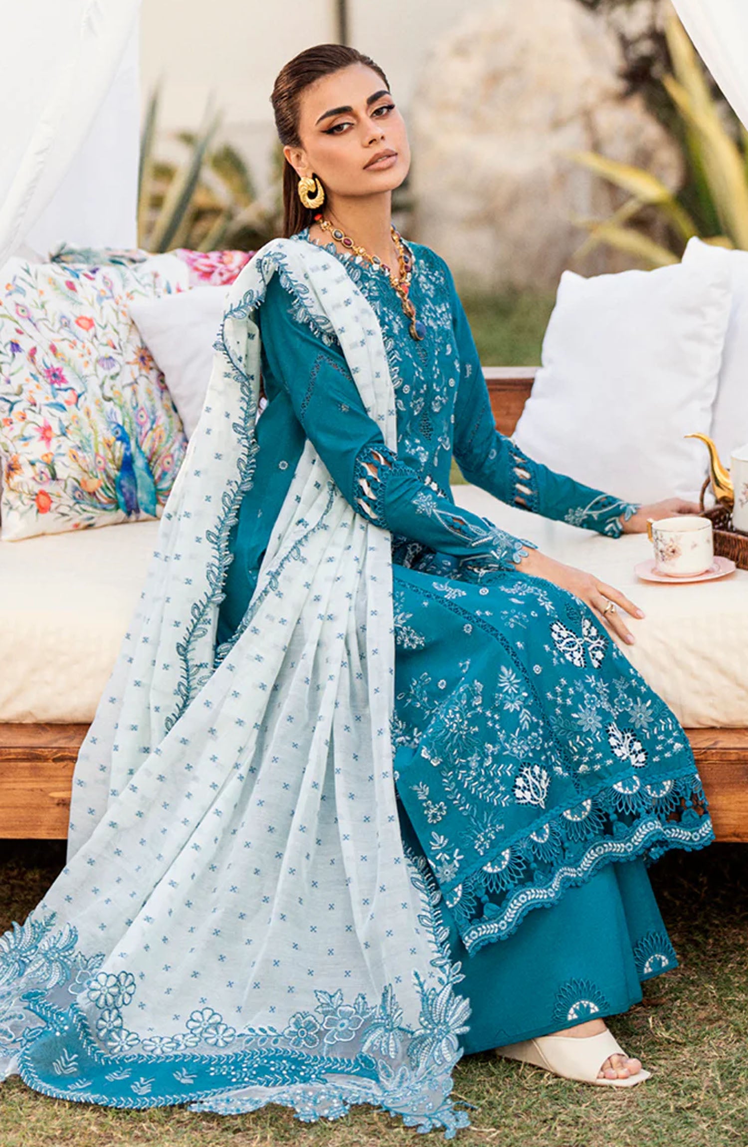 Chikankari Laser Cut Embroidered Front Center Panel