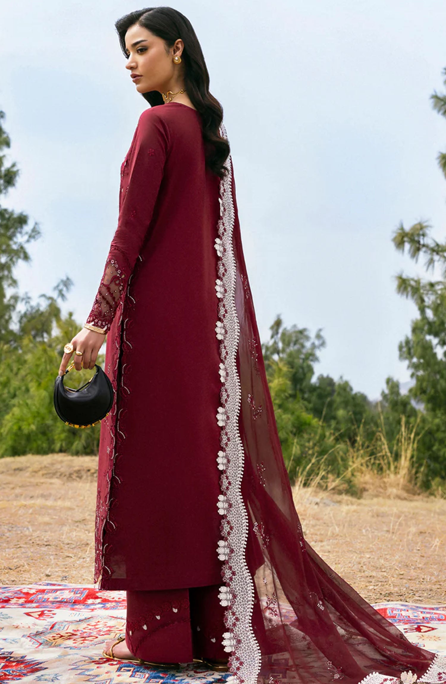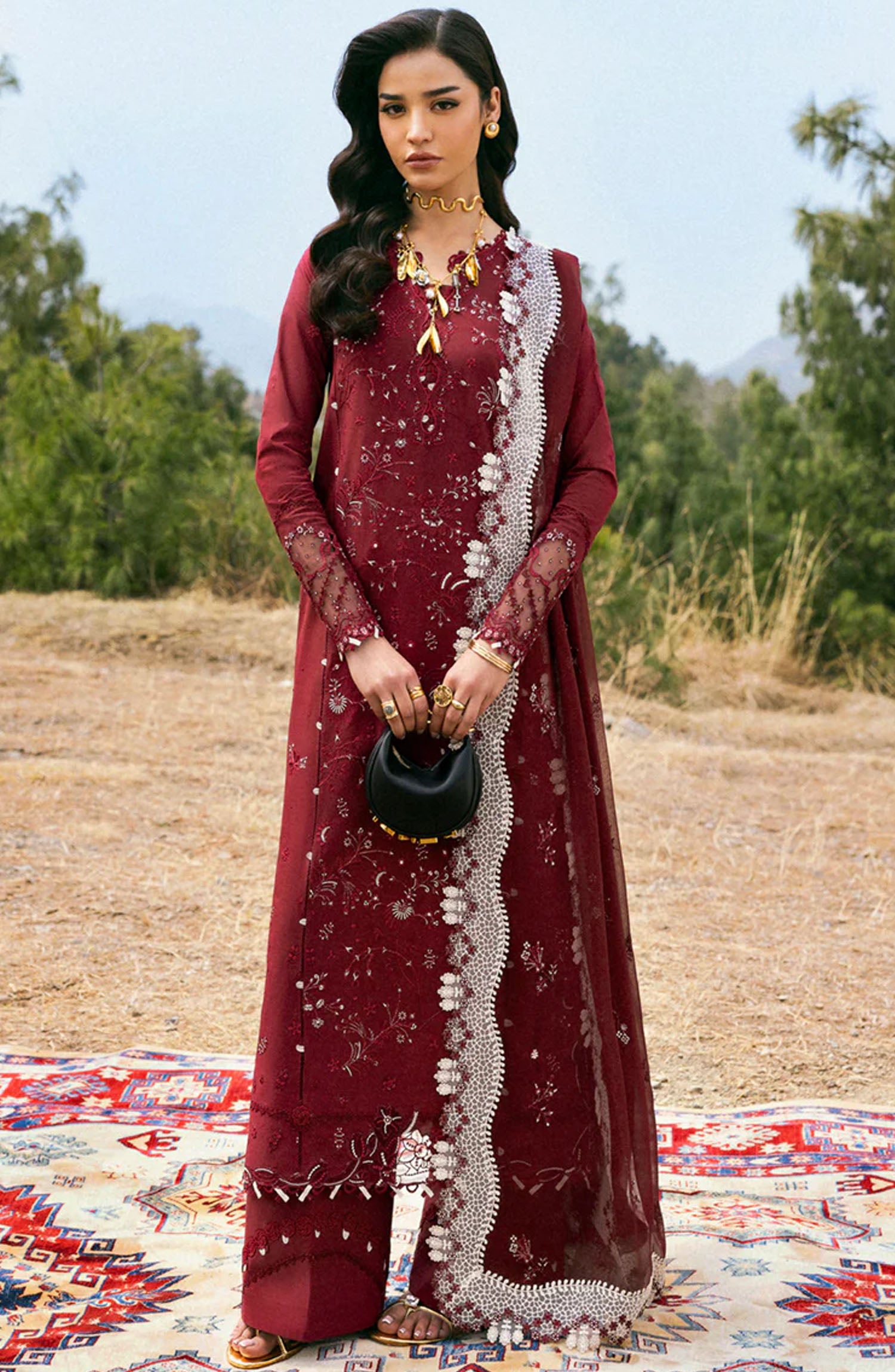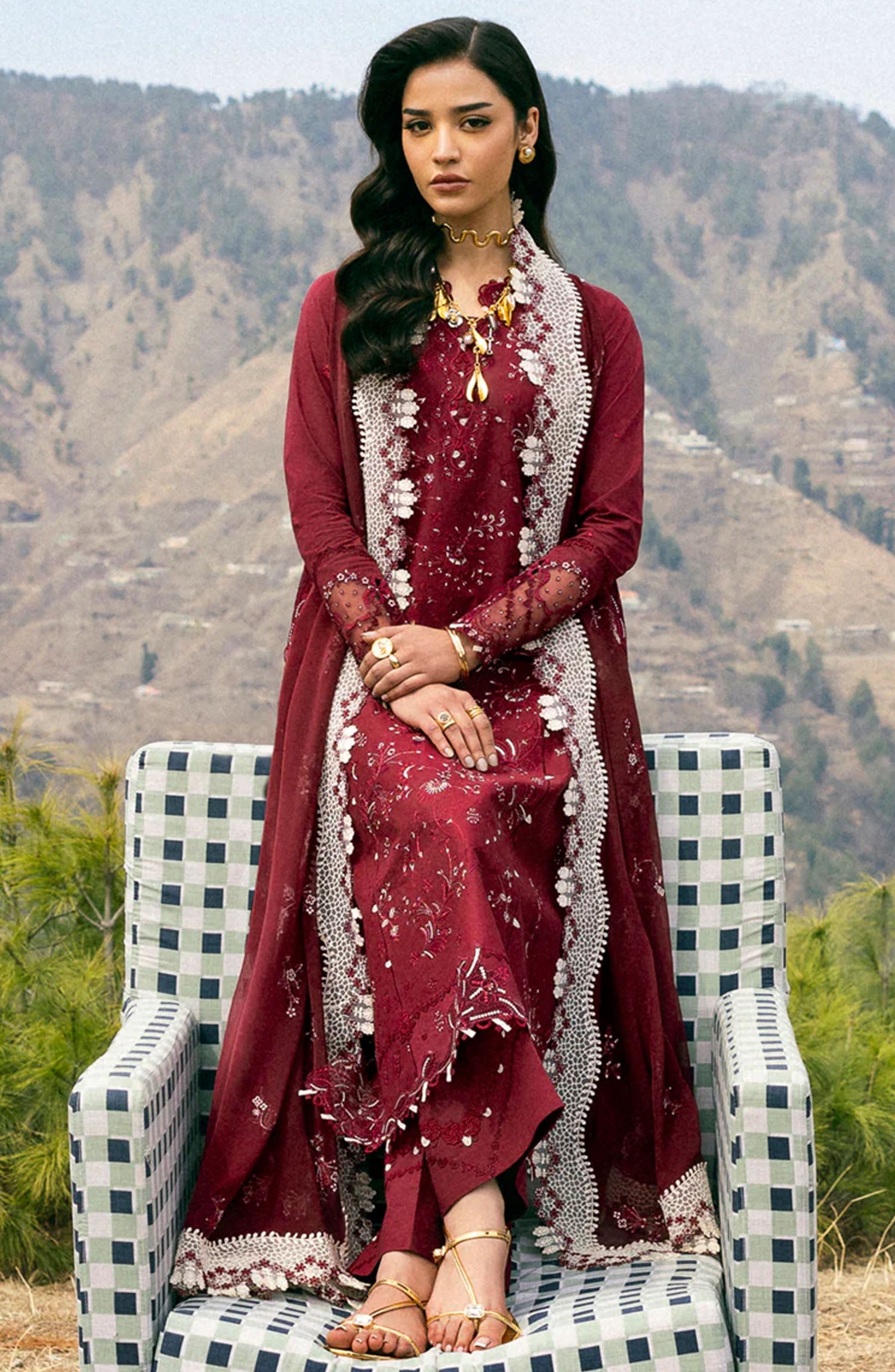 Qalamkar Chikankari Lawn Unstitched 3 Piece Suit - DC-06 Aila - Q25QLK - Red - Summer Collection