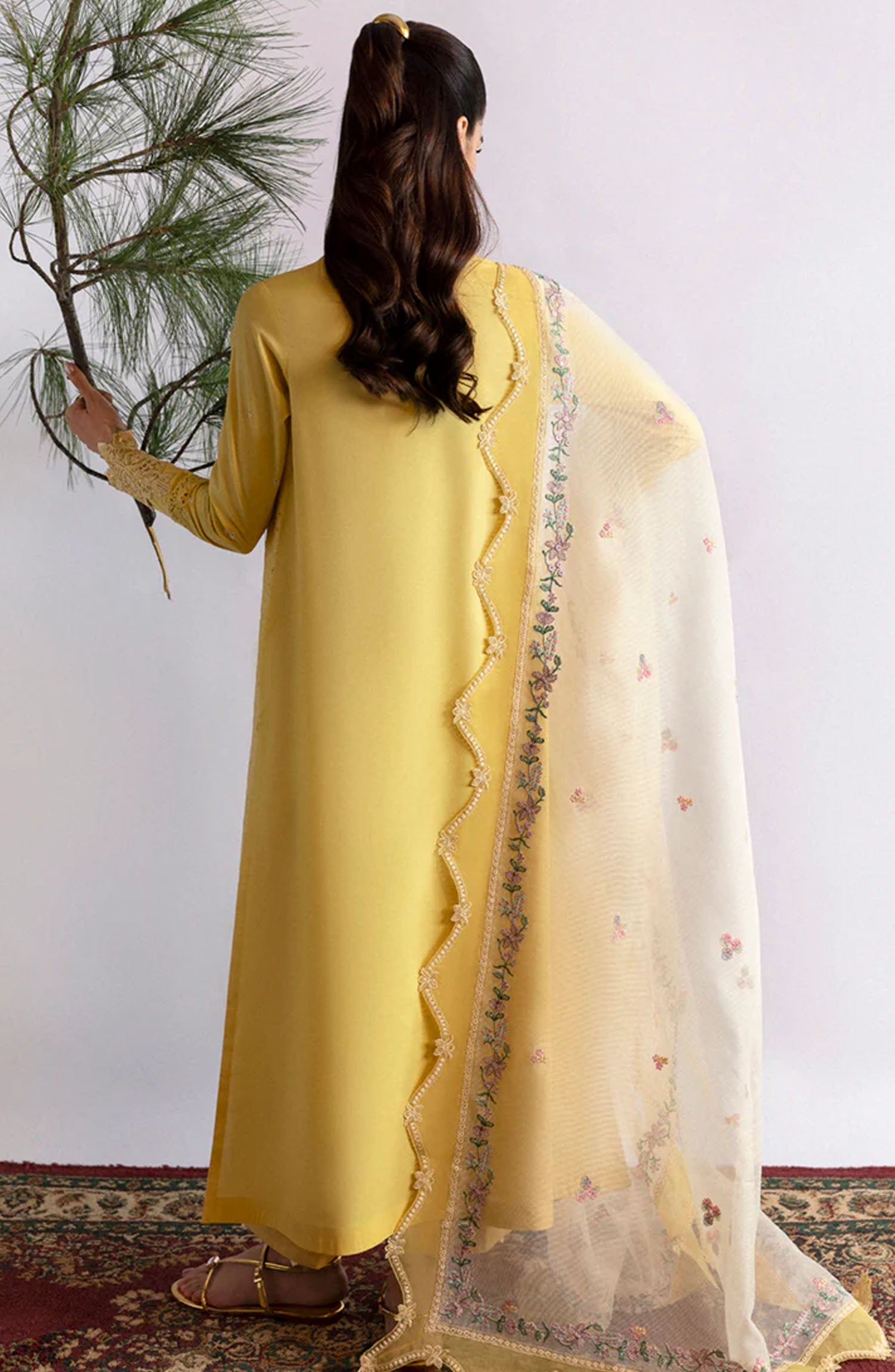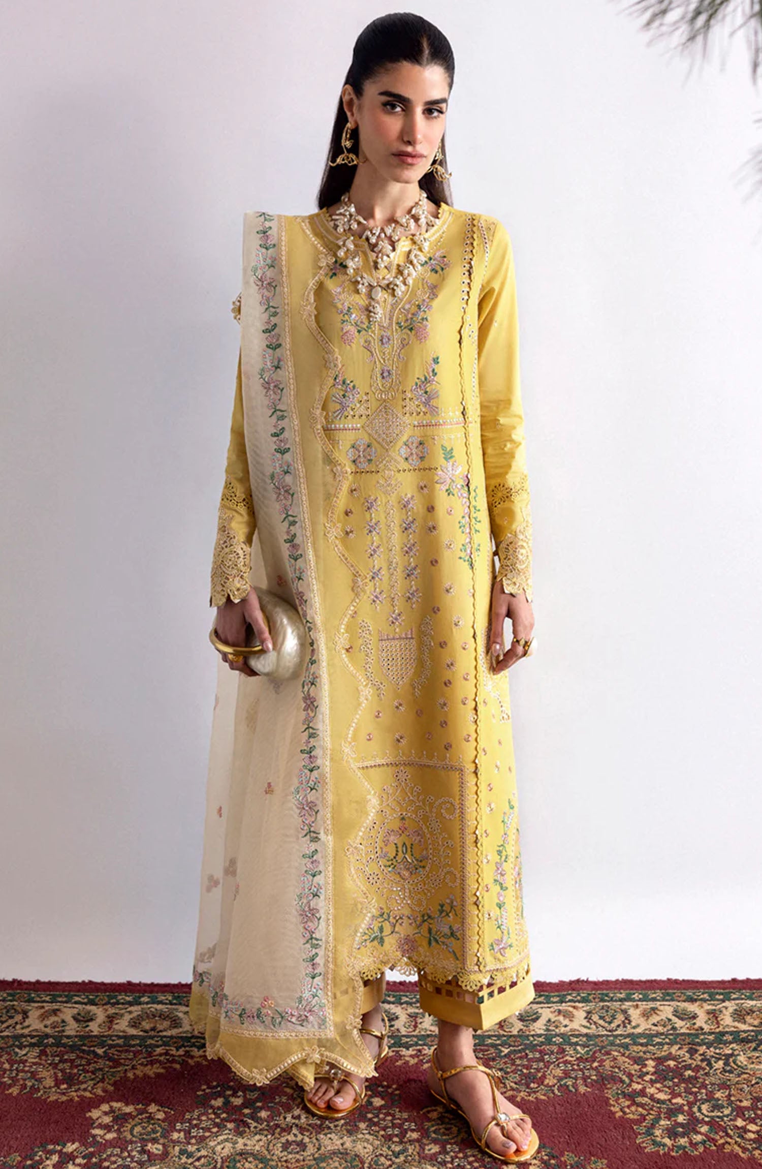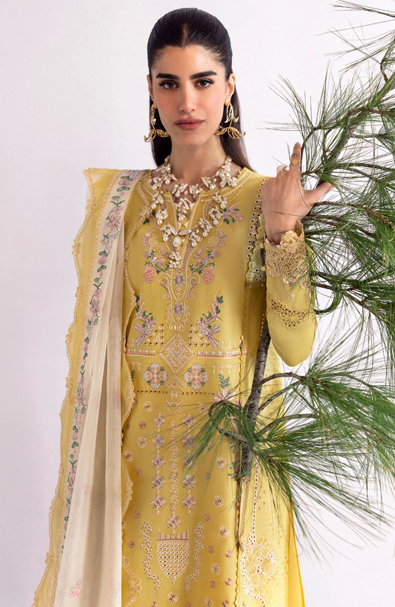 Qalamkar Chikankari Lawn Unstitched 3 Piece Suit - DC-09 Enya - Q25QLK - Yellow - Summer Collection