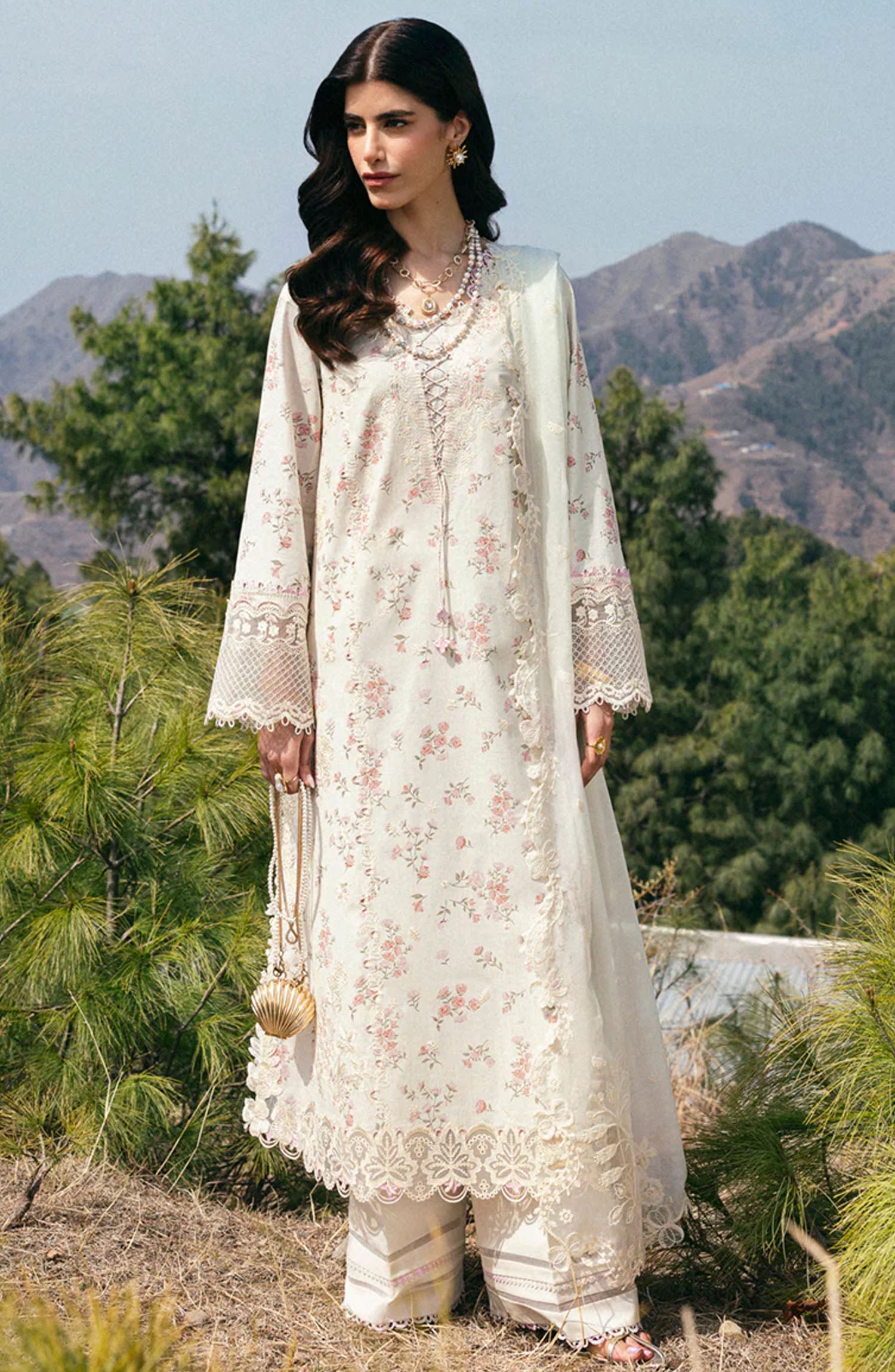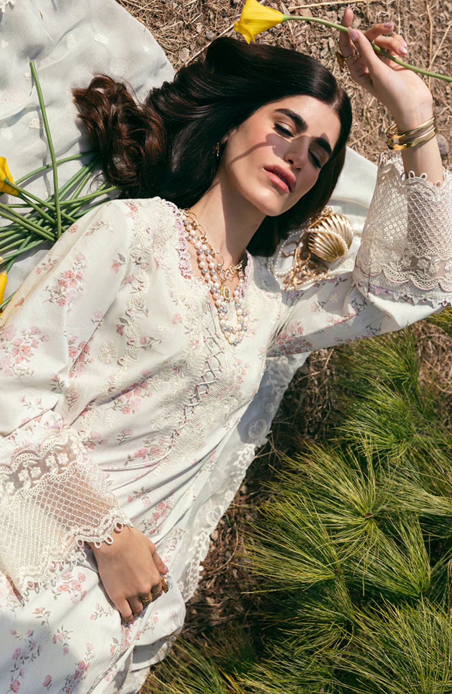 Qalamkar Chikankari Lawn Unstitched 3 Piece Suit - DC-13 Miri - Q25QLK - White - Summer Collection