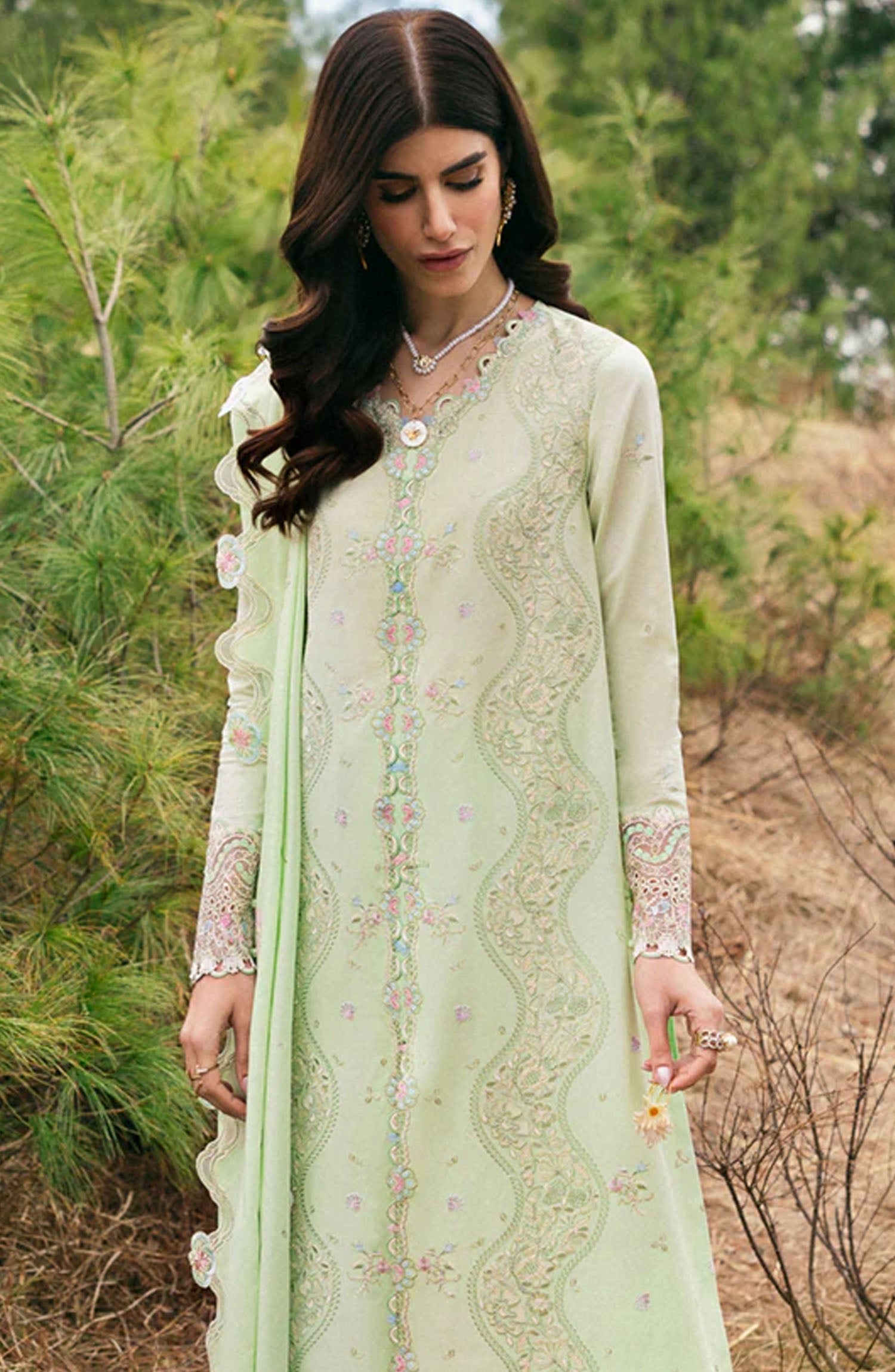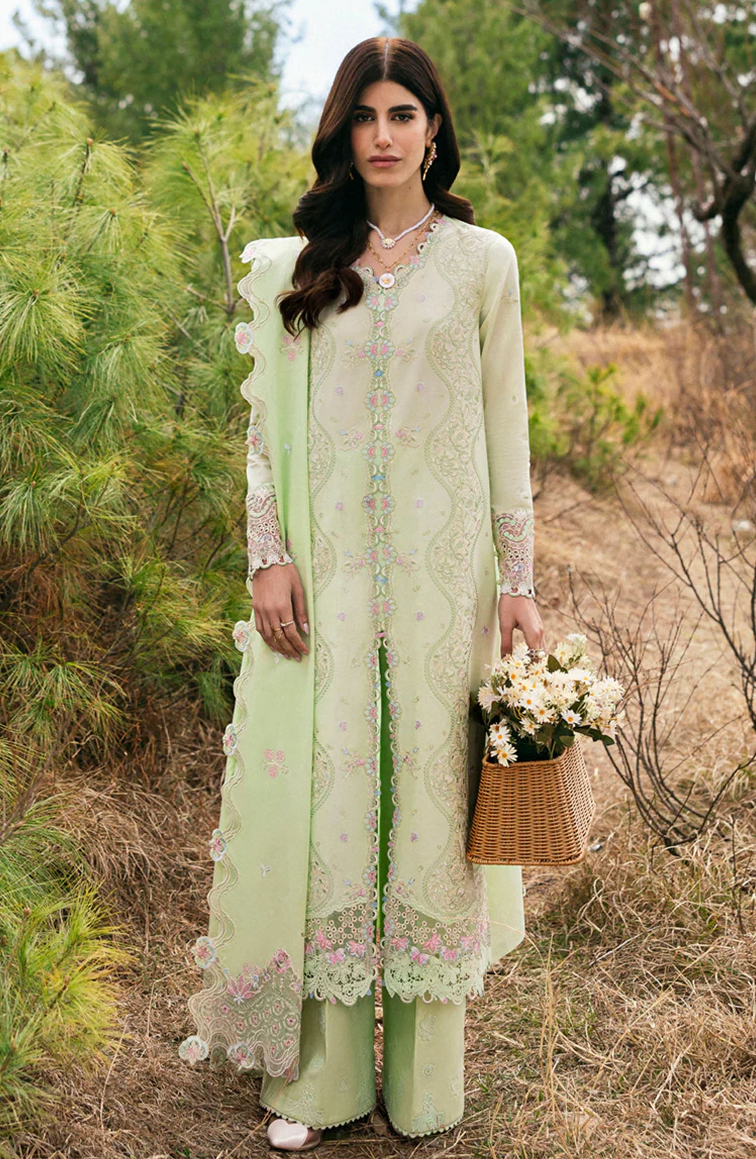 Qalamkar Chikankari Lawn Unstitched 3 Piece Suit - DC-14 Meline - Q25QLK - Green - Summer Collection