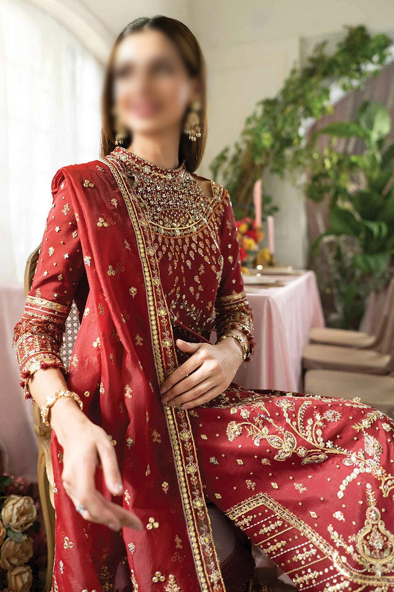 Qalamkar Dilnaz Wedding Formals 2023 has been styled in the image for photography and illustrative purposes.