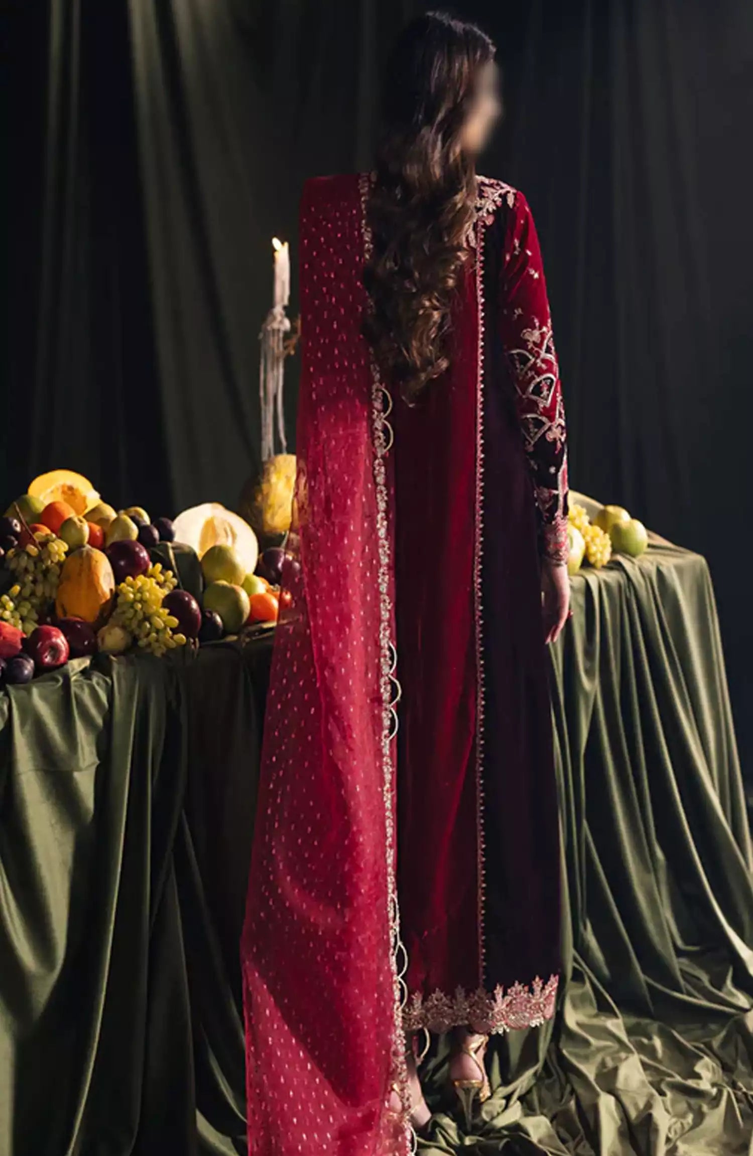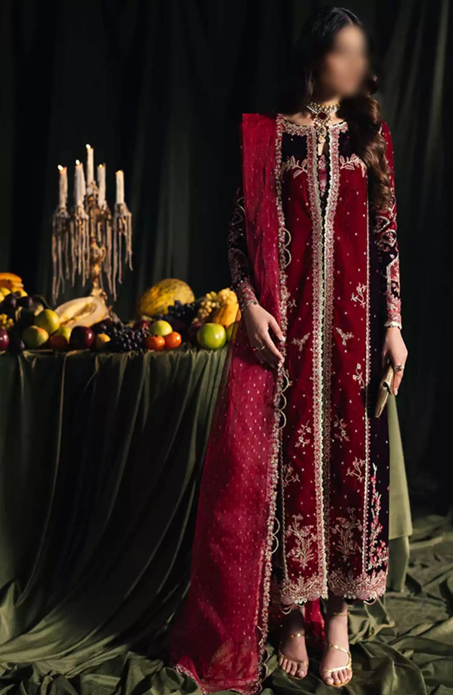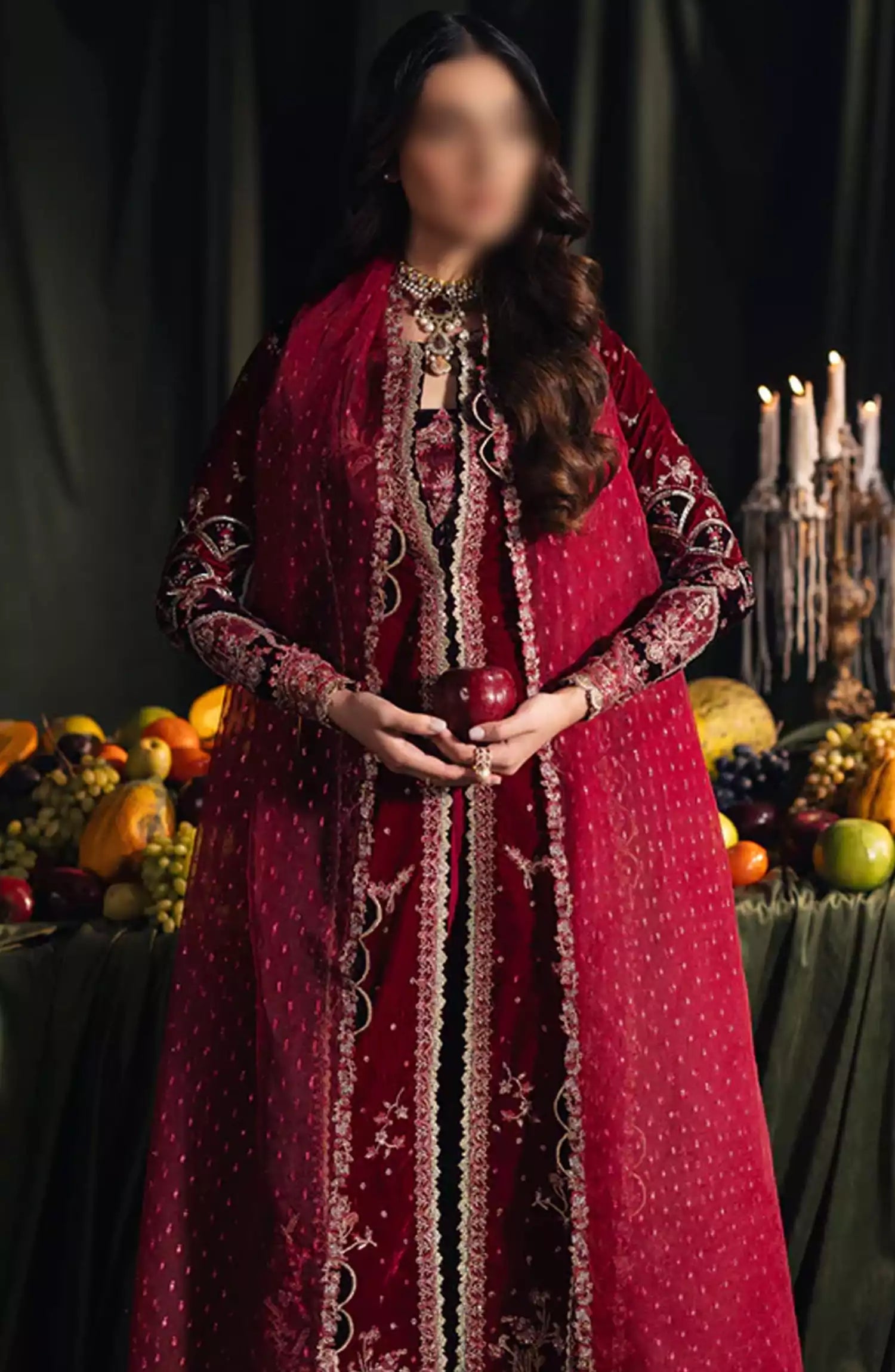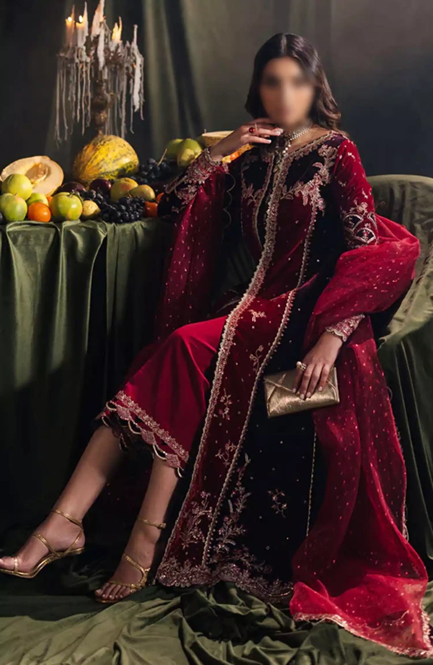 Qalamkar Luxury Velvet Collection 2024 has been styled in the image for photography and illustrative purposes.