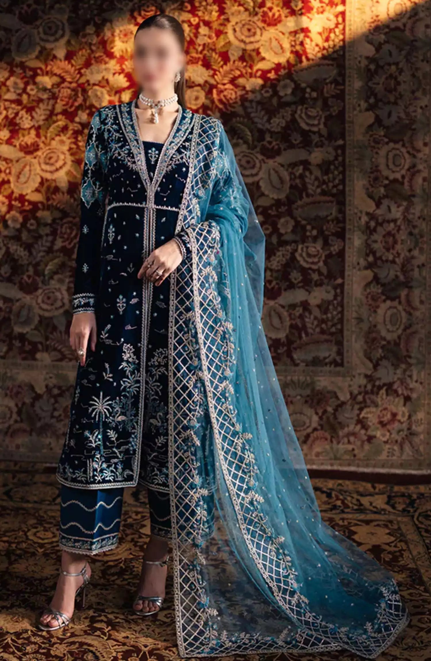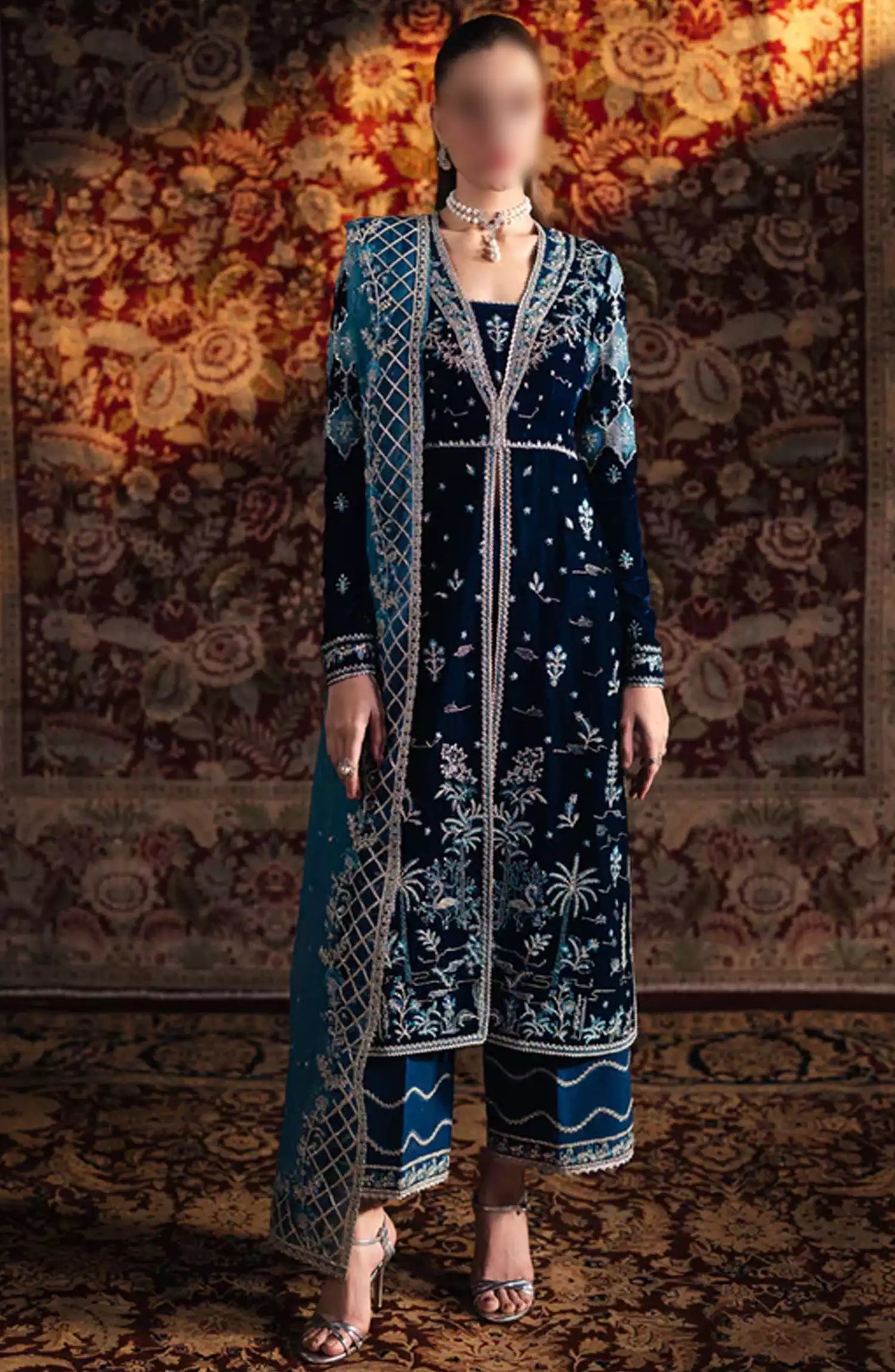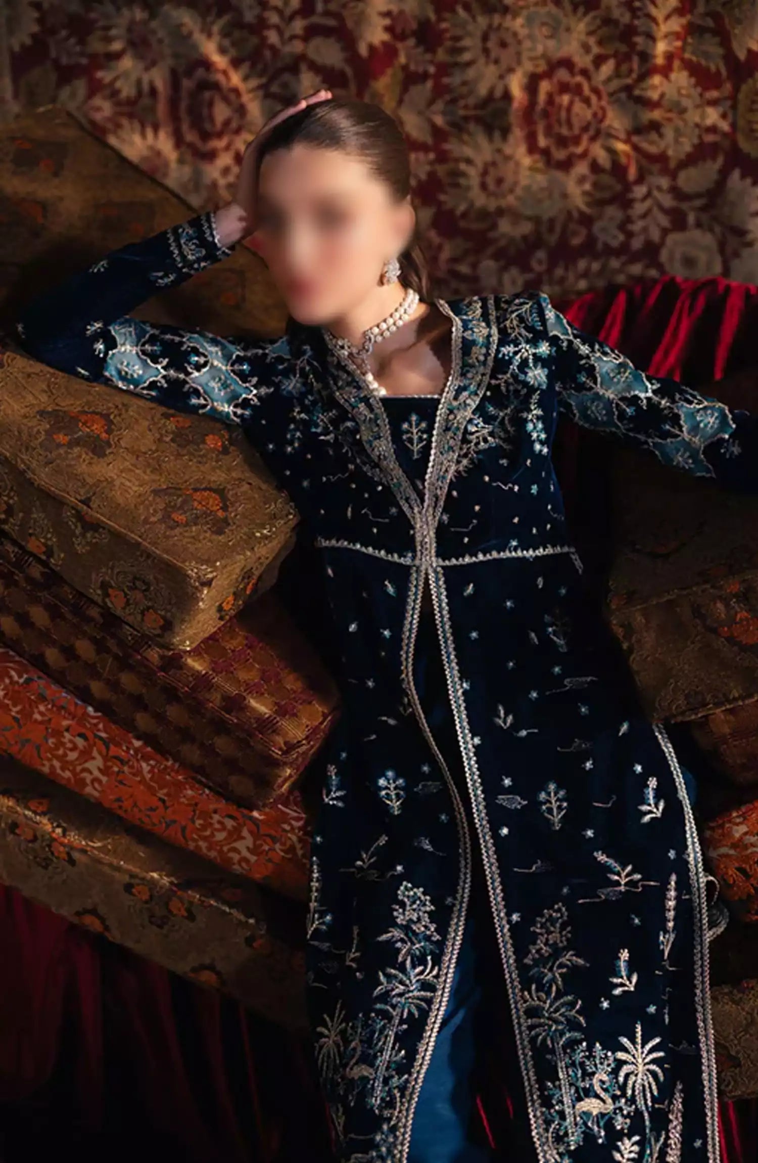Qalamkar Luxury Velvet Collection 2024 has been styled in the image for photography and illustrative purposes.