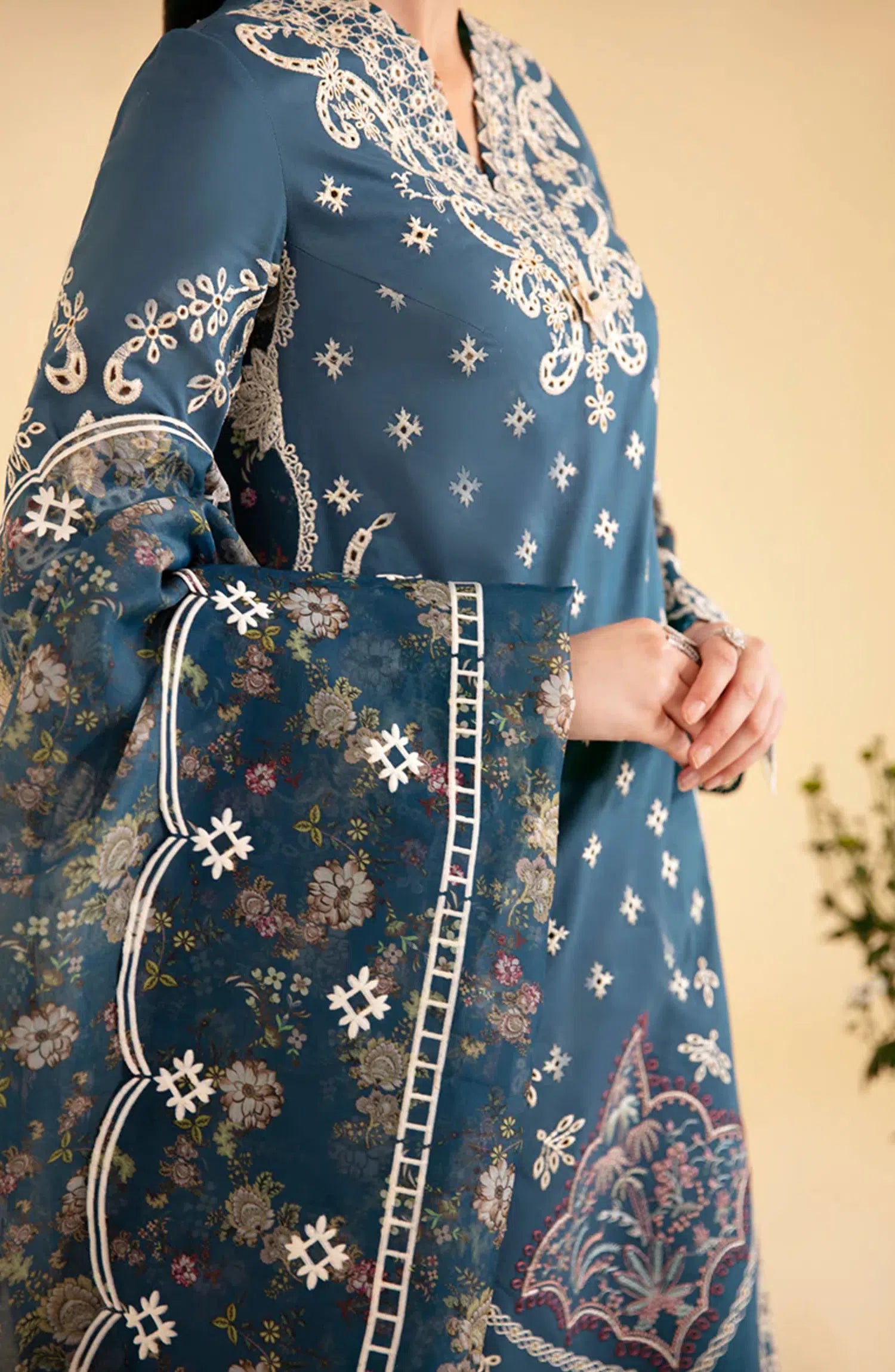 Qalamkar Qlinekari Lawn Collection 2024 has been styled in the image for photography and illustrative purposes.