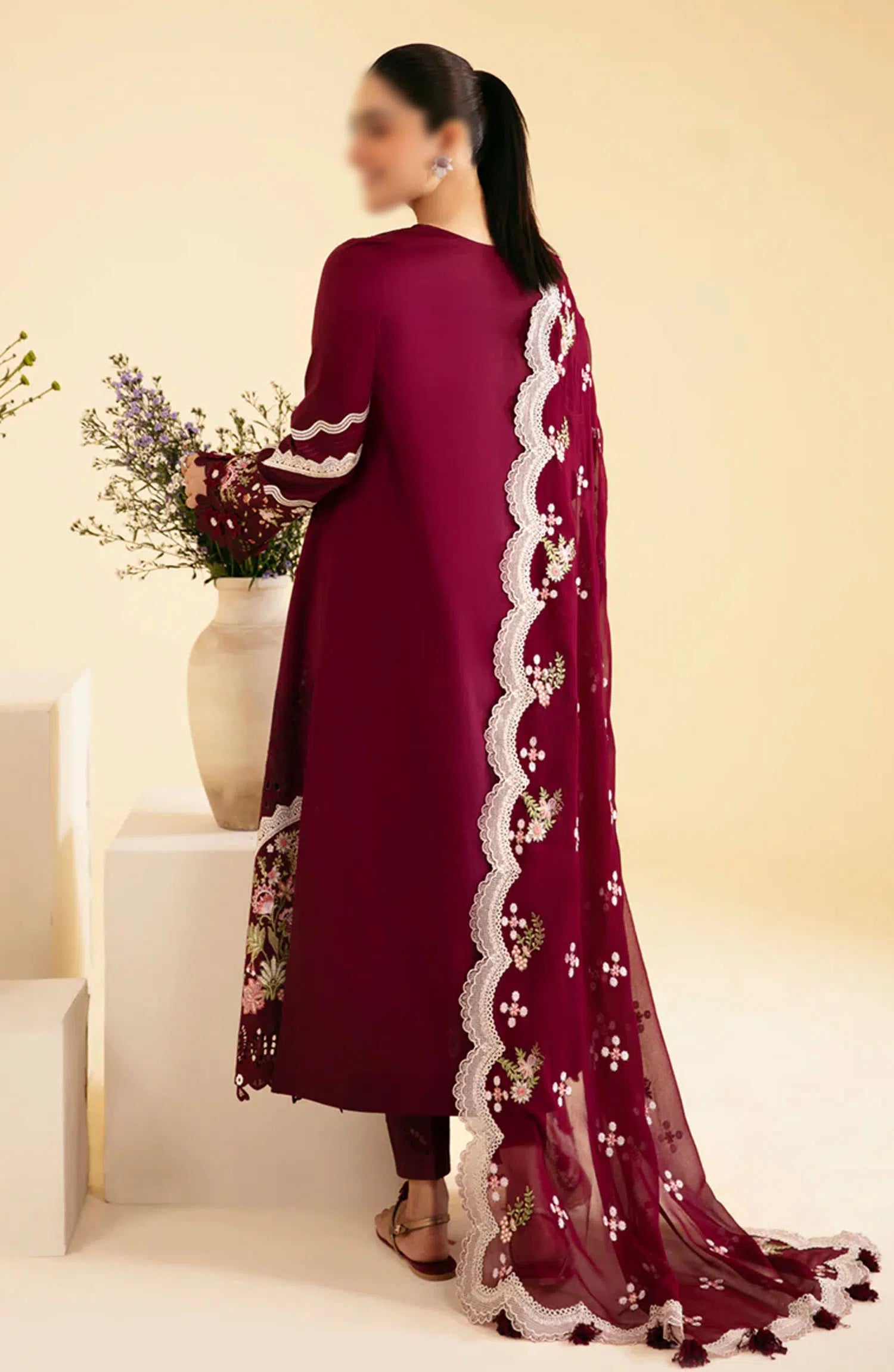 Embroidered Dupatta Pallu Lace