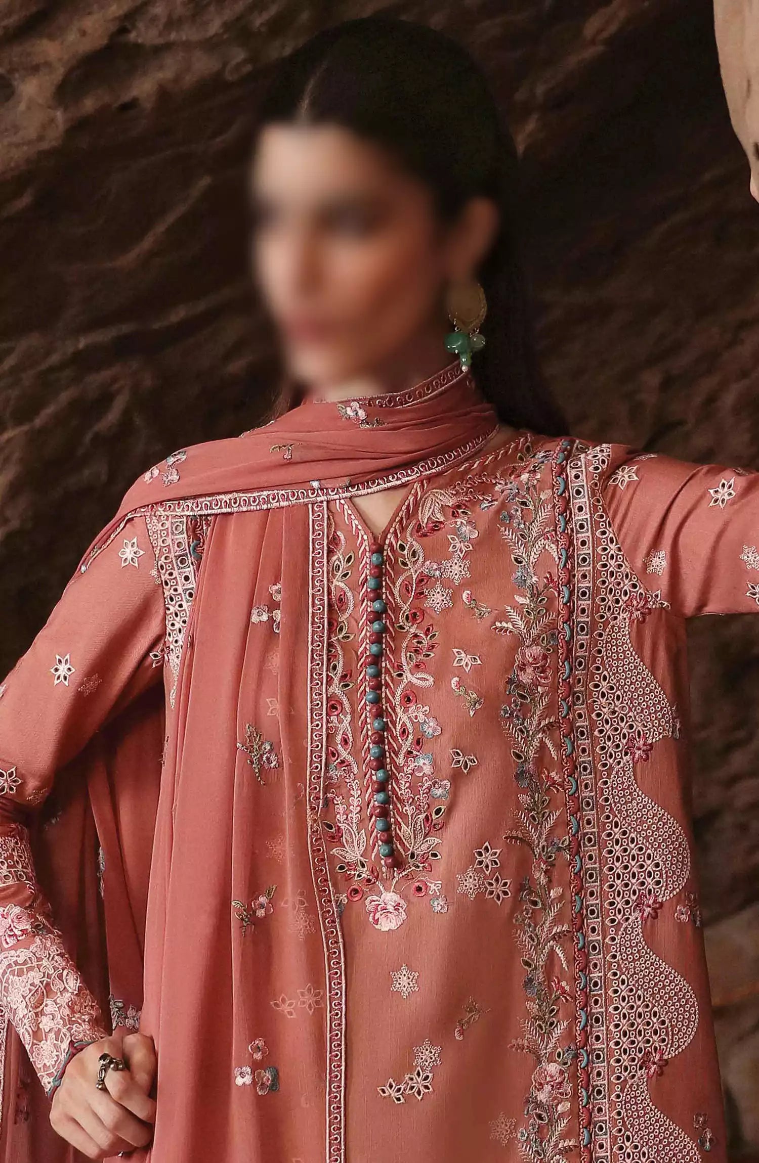 Qalamkar Qlinekari Winter Linen Unstitched Collection 2024 has been styled in the image for photography and illustrative purposes.