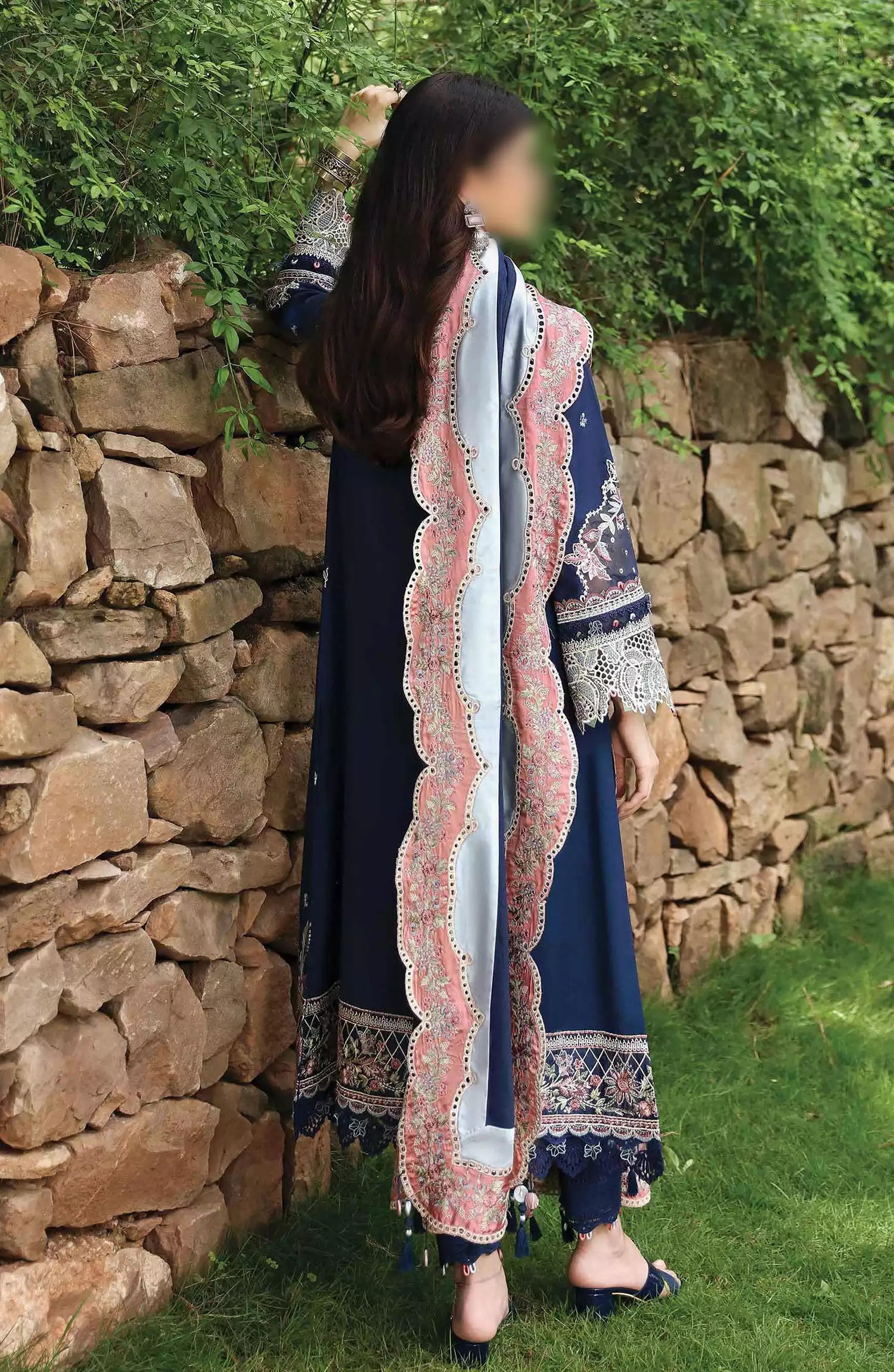 Embroidered Front & Back Border (Charmeuse Silk)