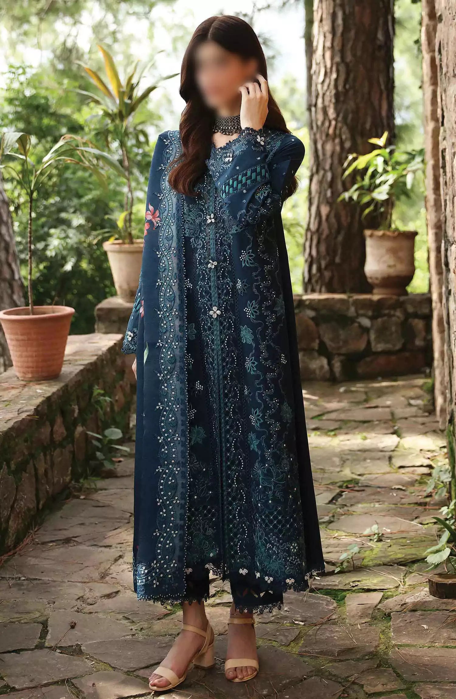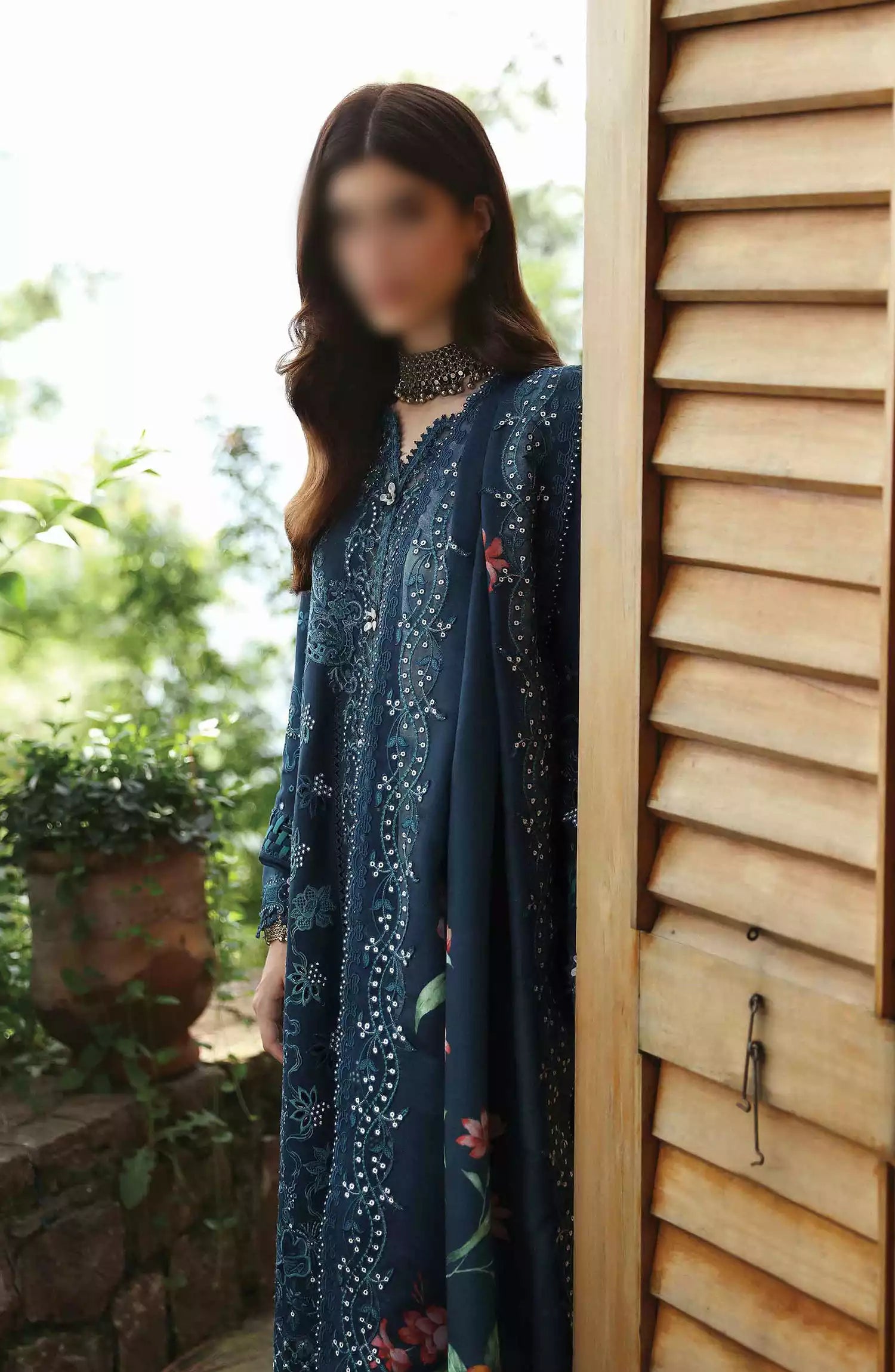 Qalamkar Qlinekari Winter Linen Unstitched Collection 2024 has been styled in the image for photography and illustrative purposes.