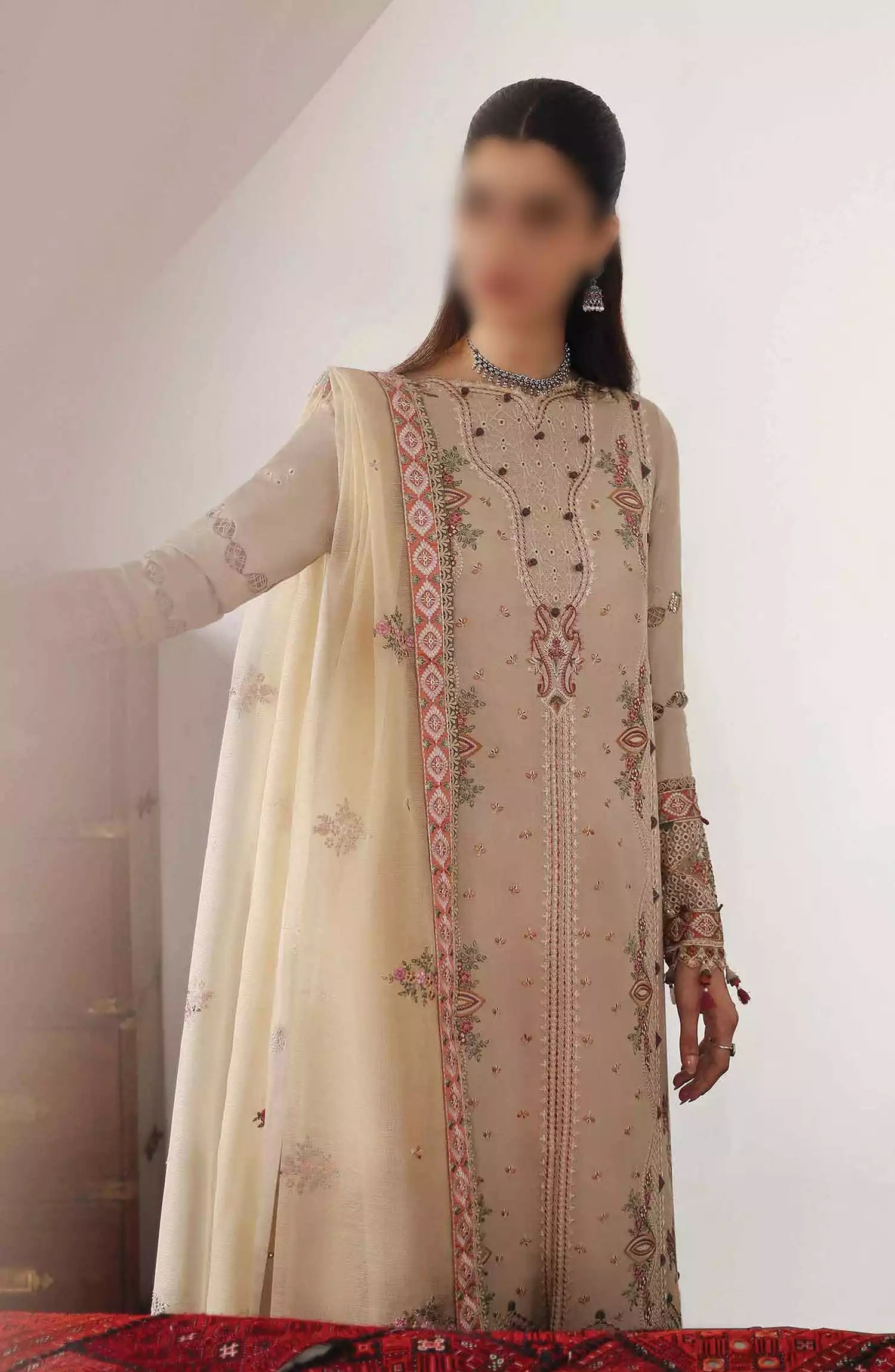 Qalamkar Qlinekari Winter Linen Unstitched Collection 2024 has been styled in the image for photography and illustrative purposes.