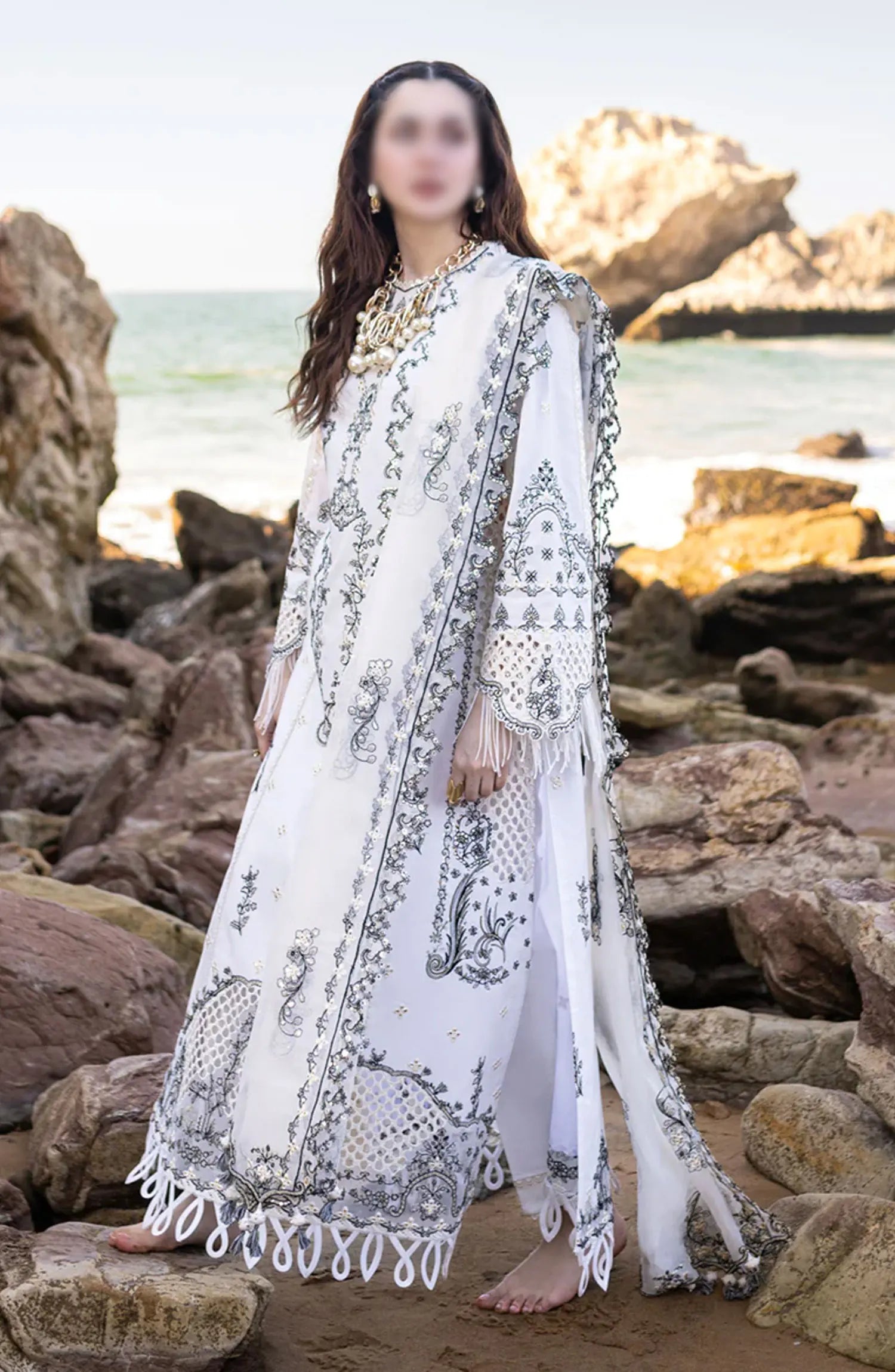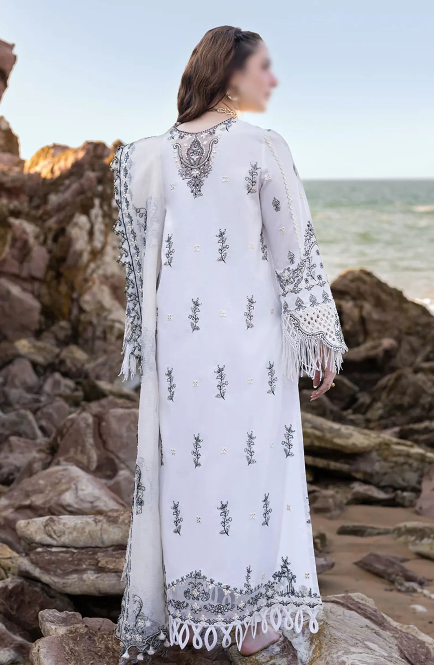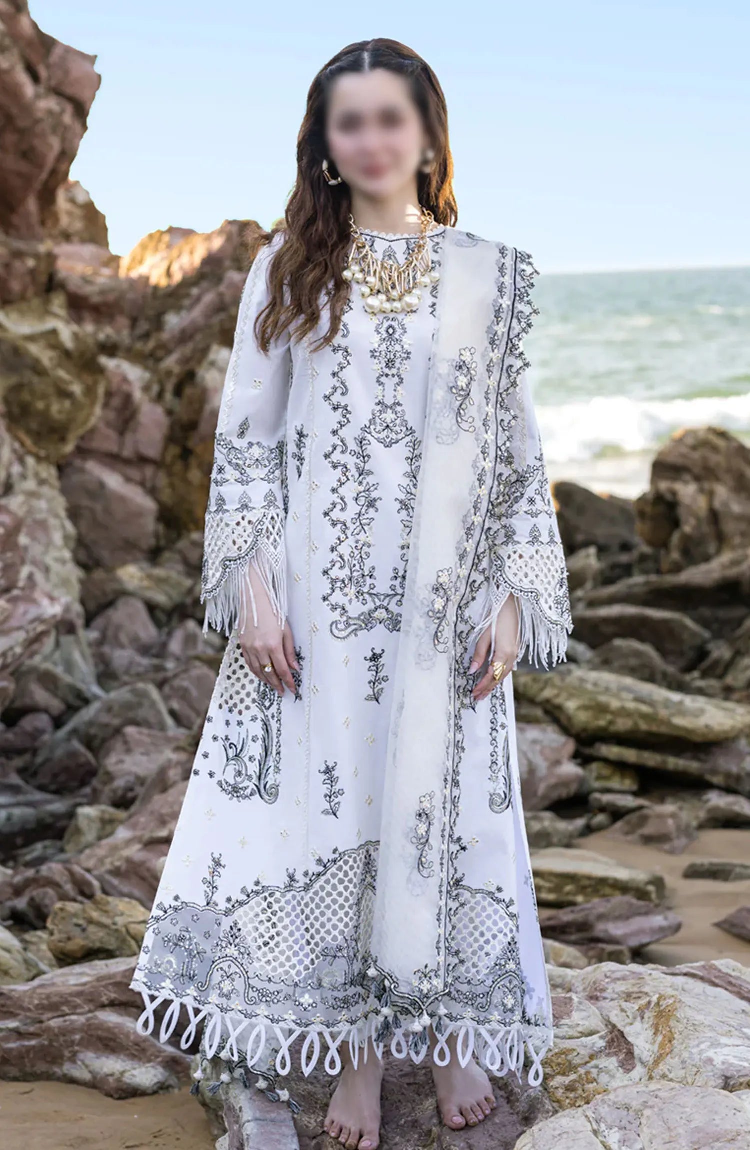 Maryams Luxury Embroidered Chiffon Unstitched 3 Piece Suit - ANUSHEH-ARZ-9007 - MAR25LF - White - Festive Collection