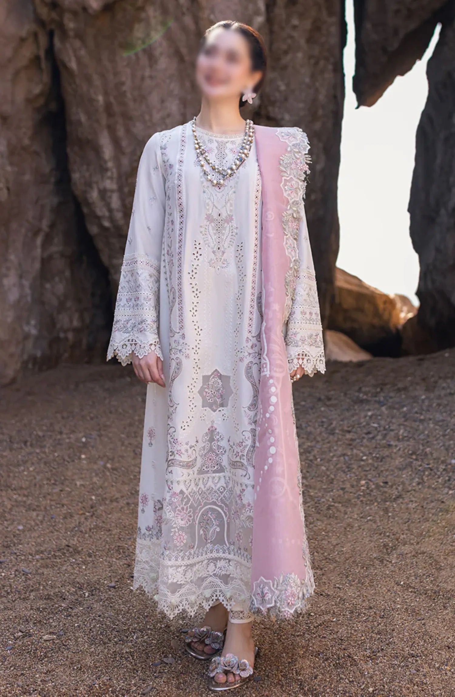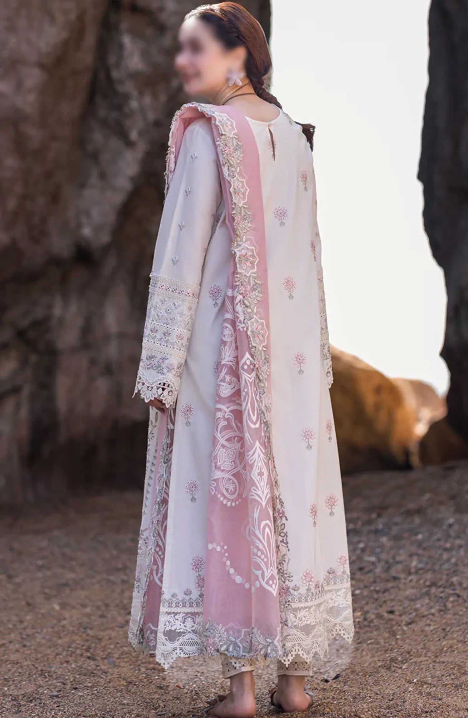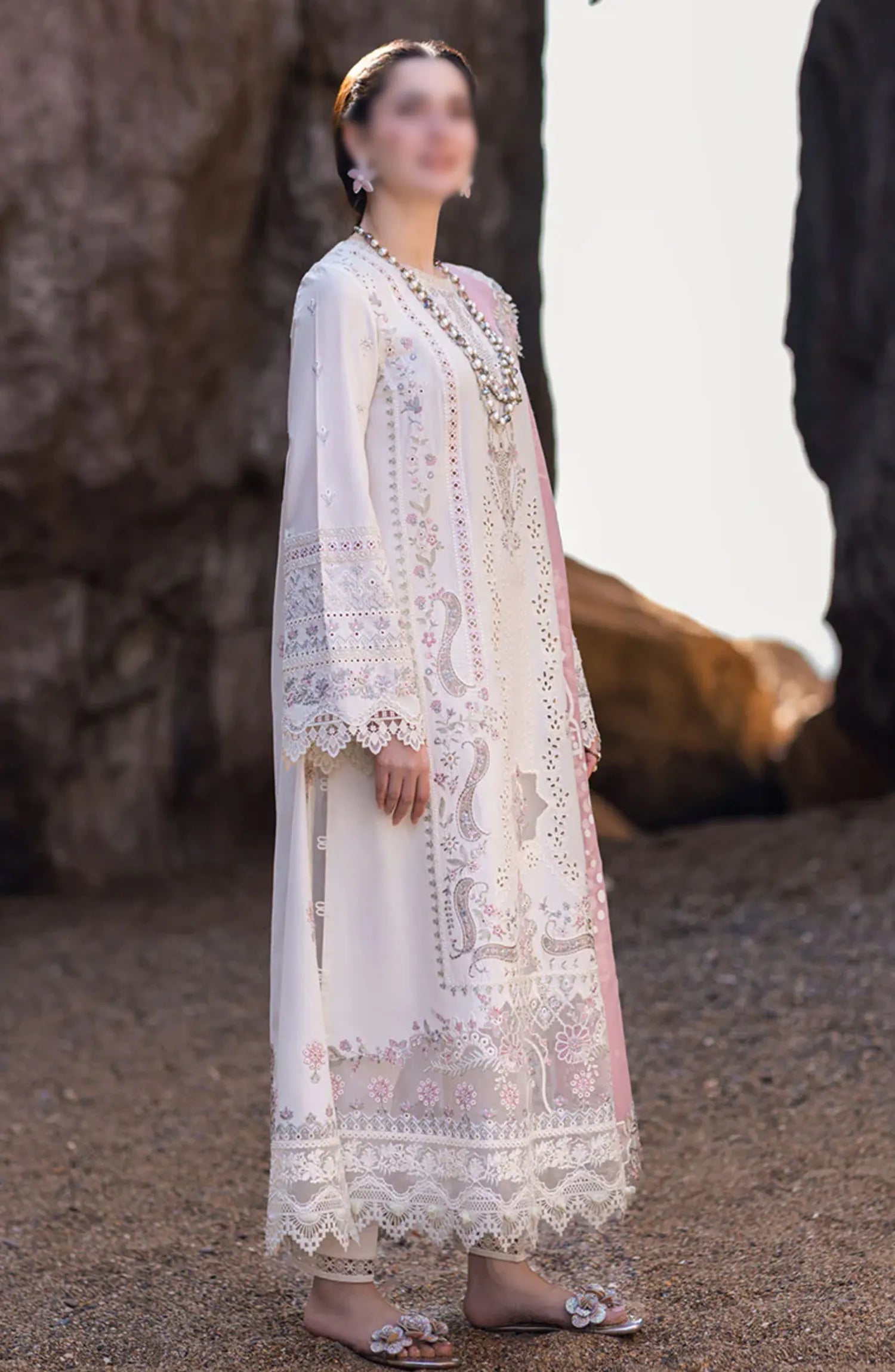 Qalamkar SAHIL KINARE Luxury Lawn Collection 2024 has been styled in the image for photography and illustrative purposes.