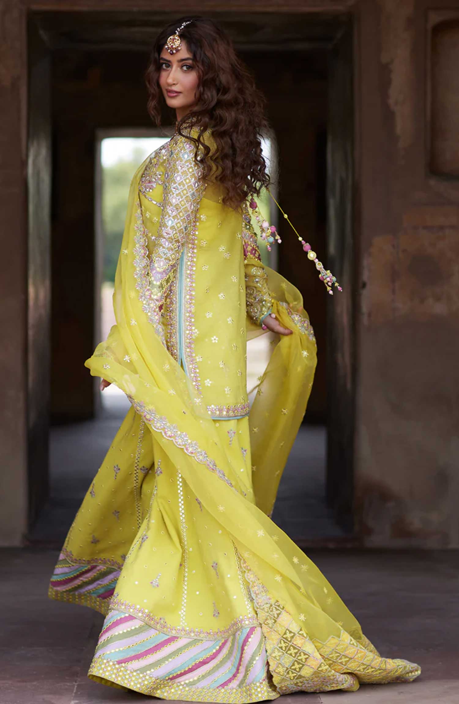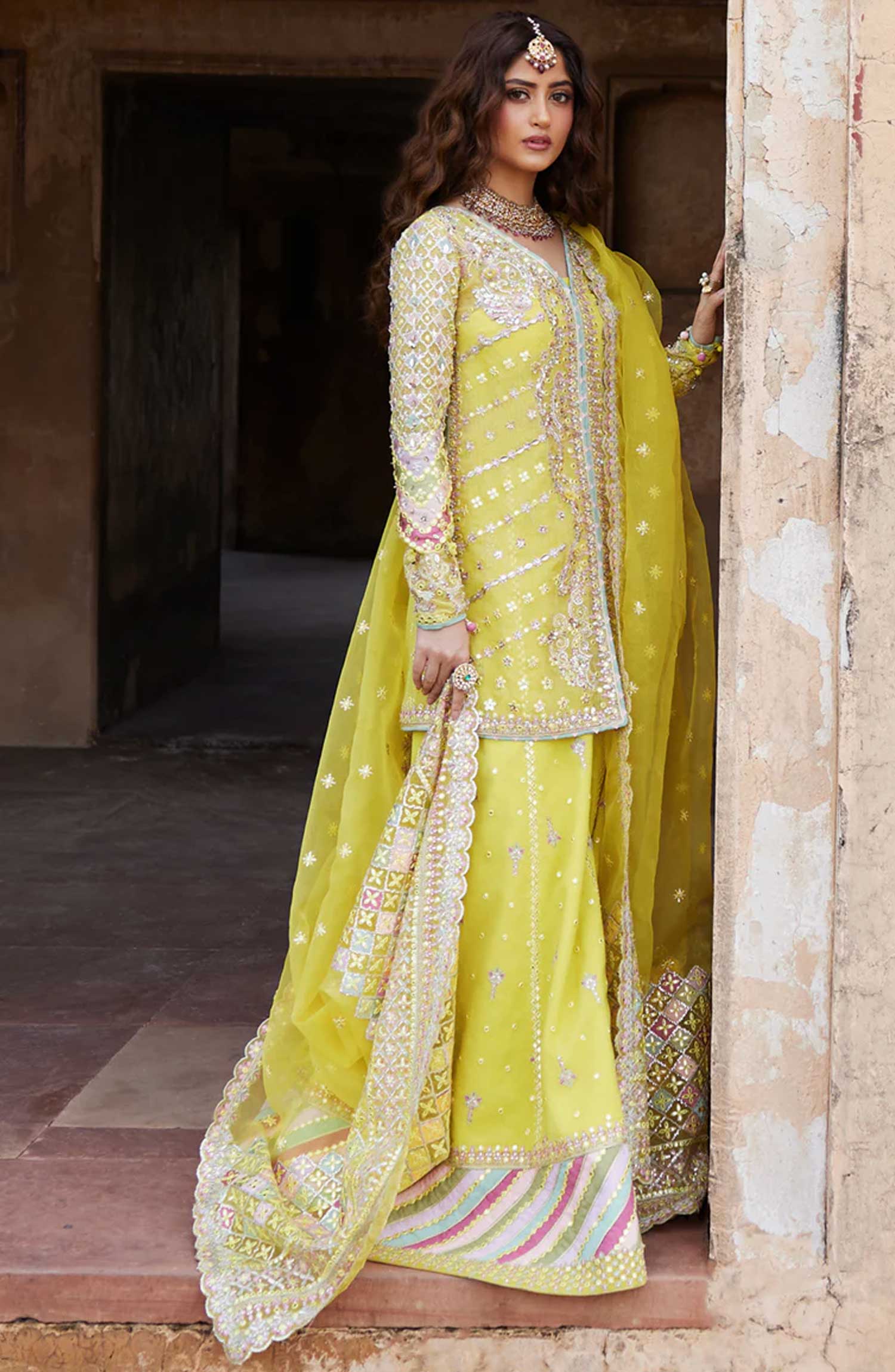 Qalamkar Shaadmani Luxury Formals Unstitched Collection 2024 has been styled in the image for photography and illustrative purposes.