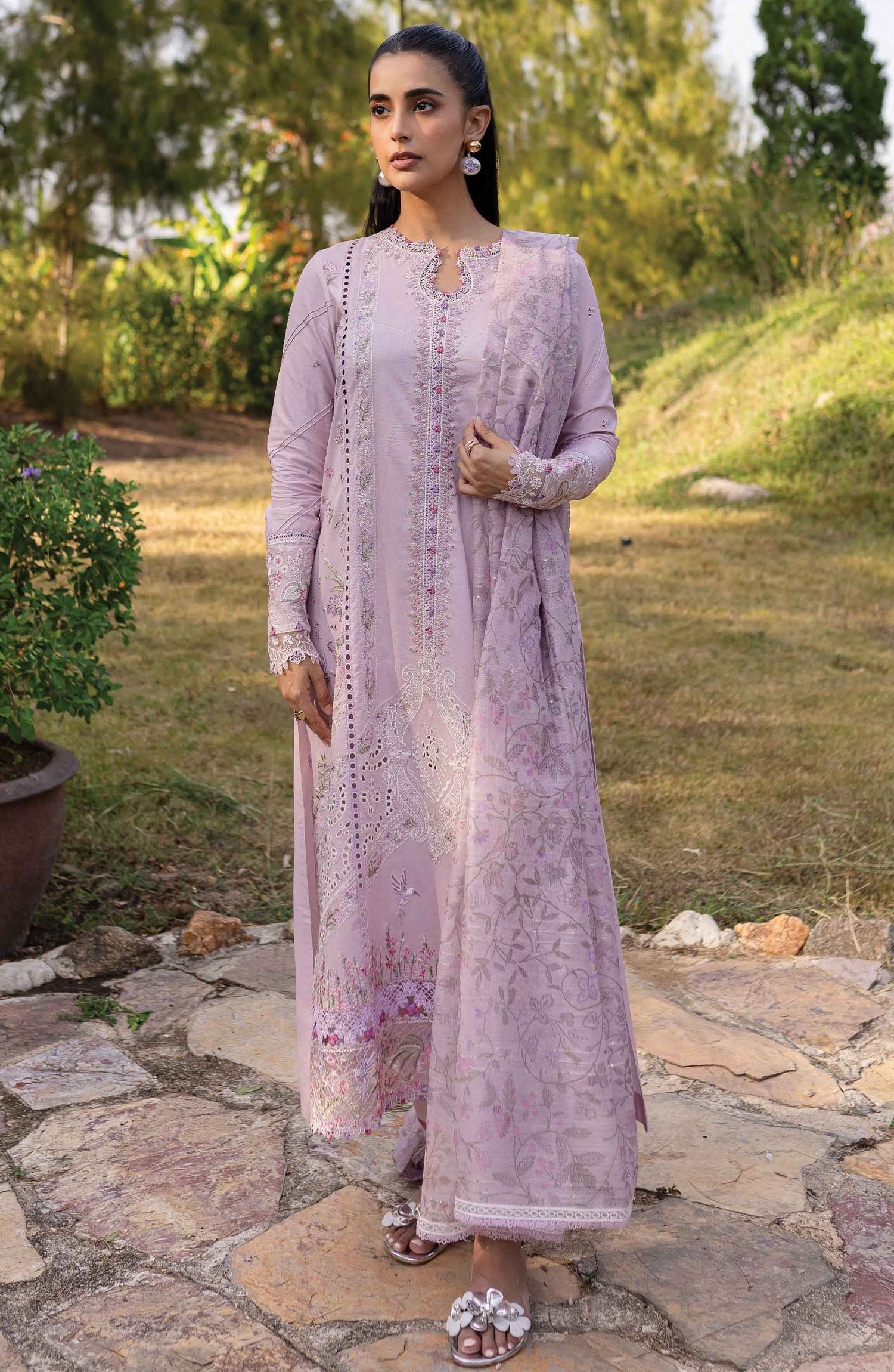 The standard style comes as a long-sleeved kameez with dupatta and trouser/shawlar.