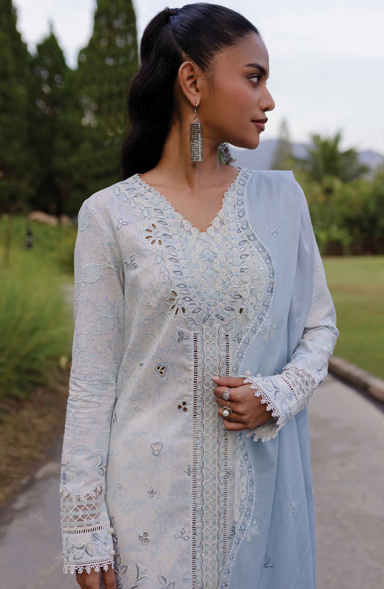 Digital Printed Chikankari Embroidered Panels (Left & Right)