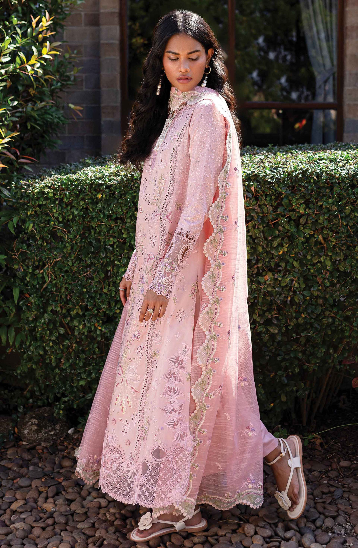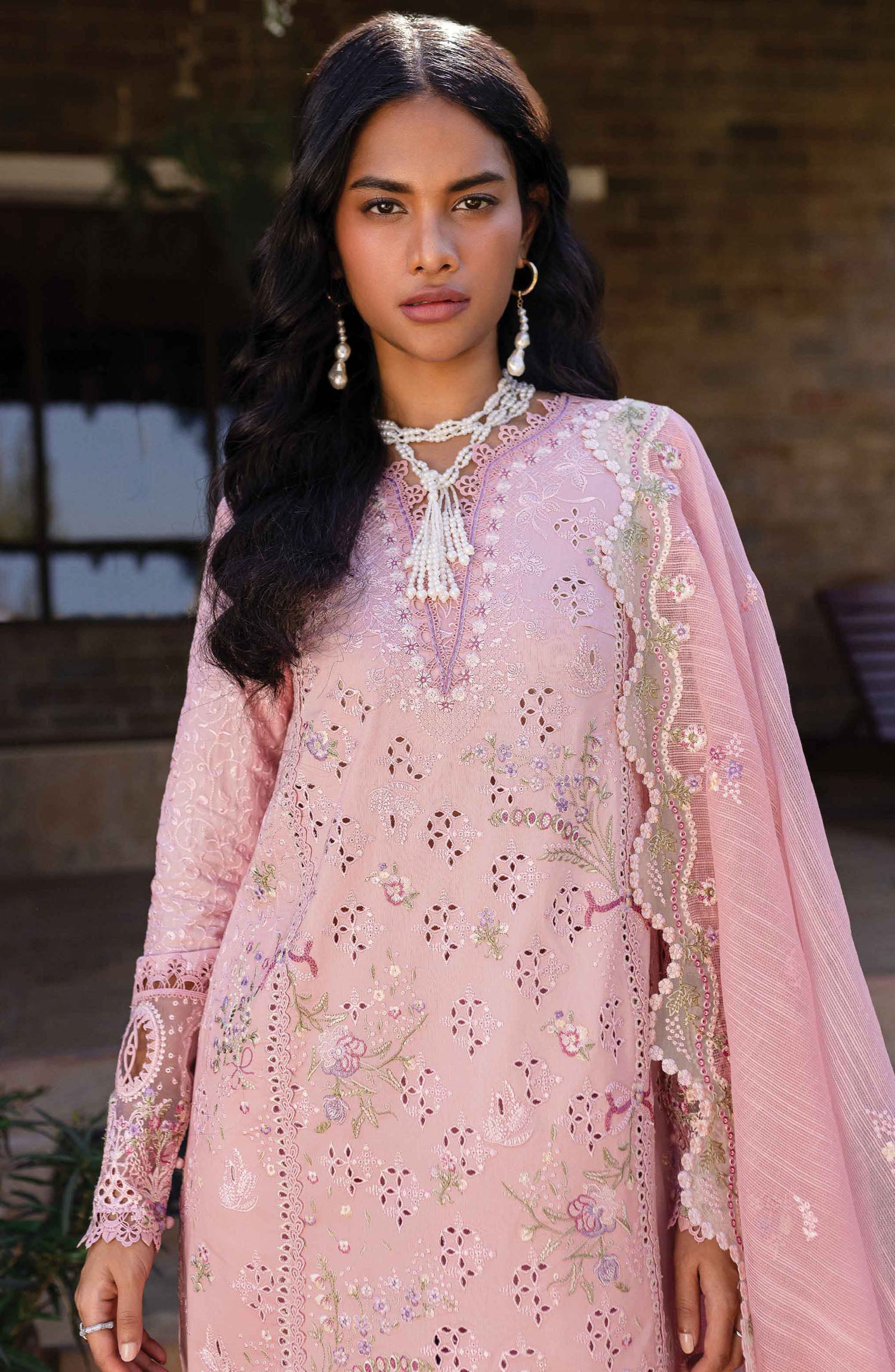 Chikankari Embroidered Panels (Left & Right) Chikankari Embroidered Border (Front)