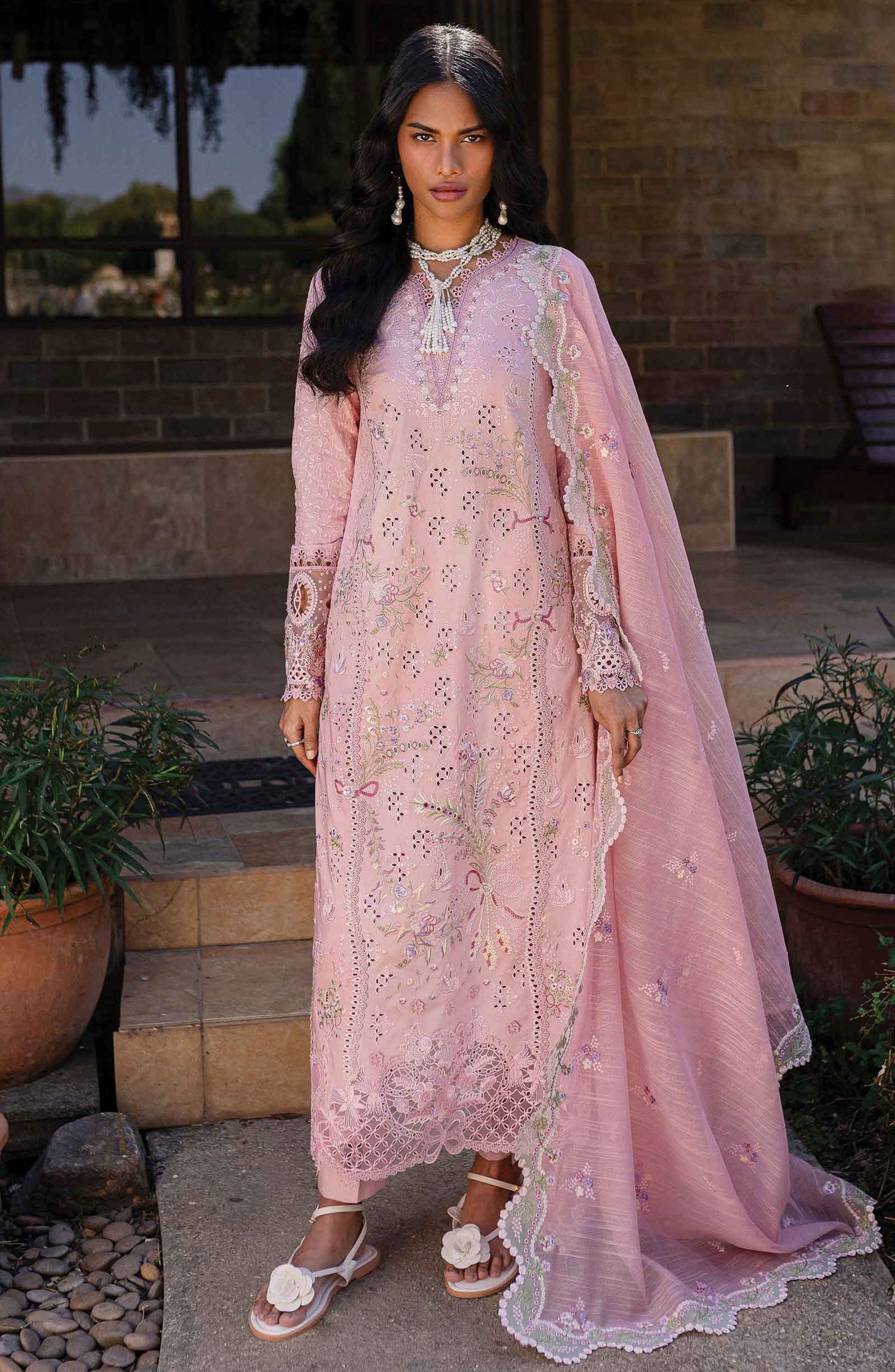 The standard style comes as a long-sleeved kameez with dupatta and trouser/shawlar.