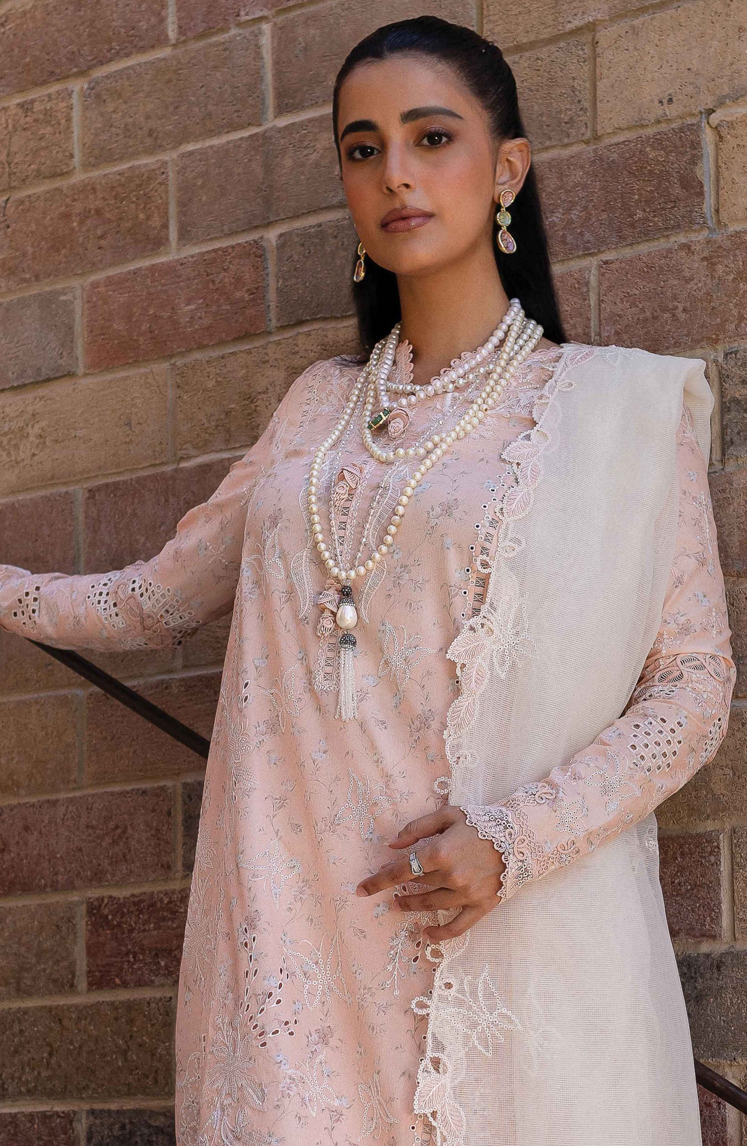 Digital Printed Chikankari Embroidered Panels (Left & Right) Embroidered Hem (Front)