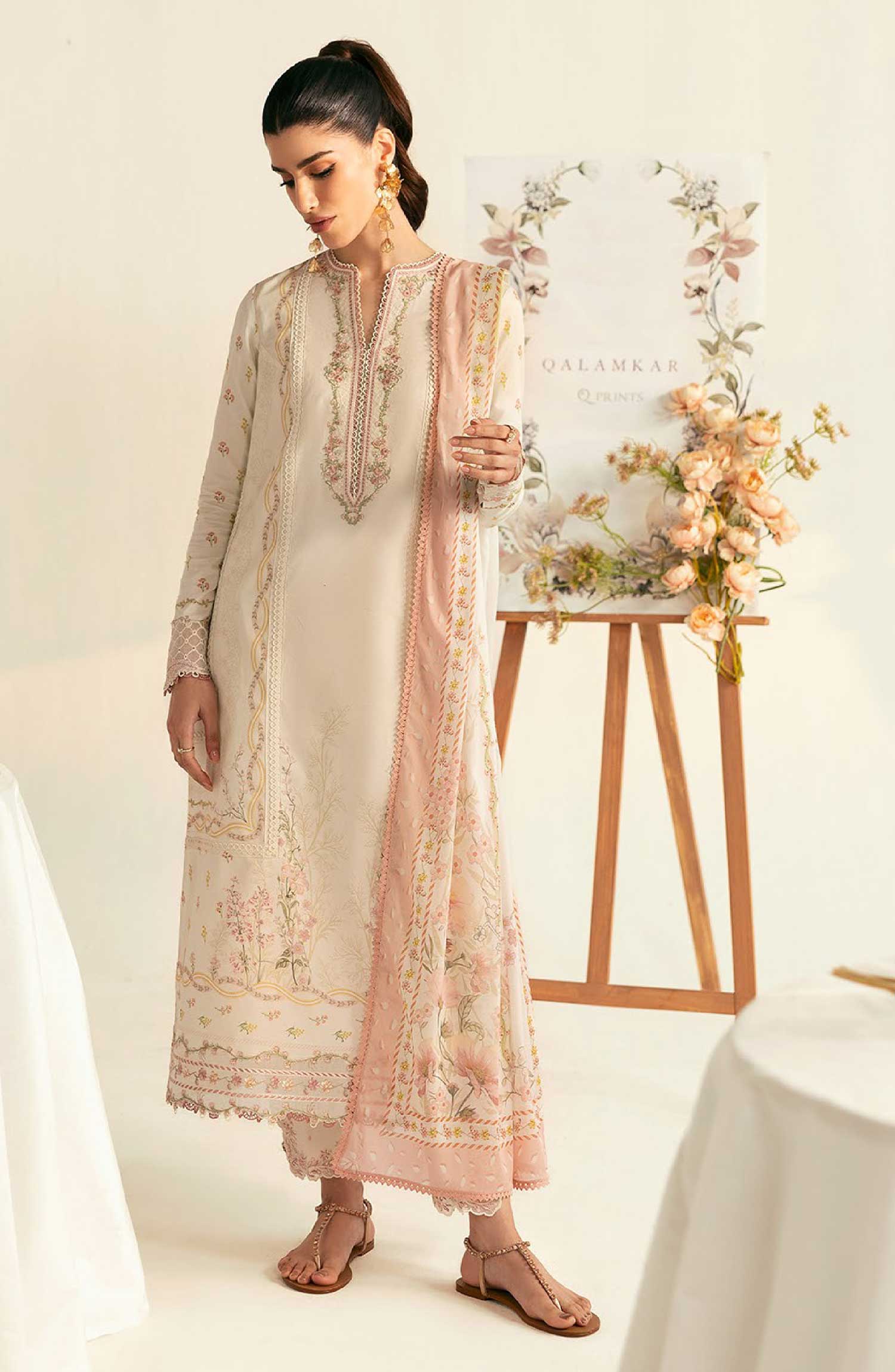 Qalamkar QPrints Lawn Collection 2025 has been styled in the image for photography and illustrative purposes.