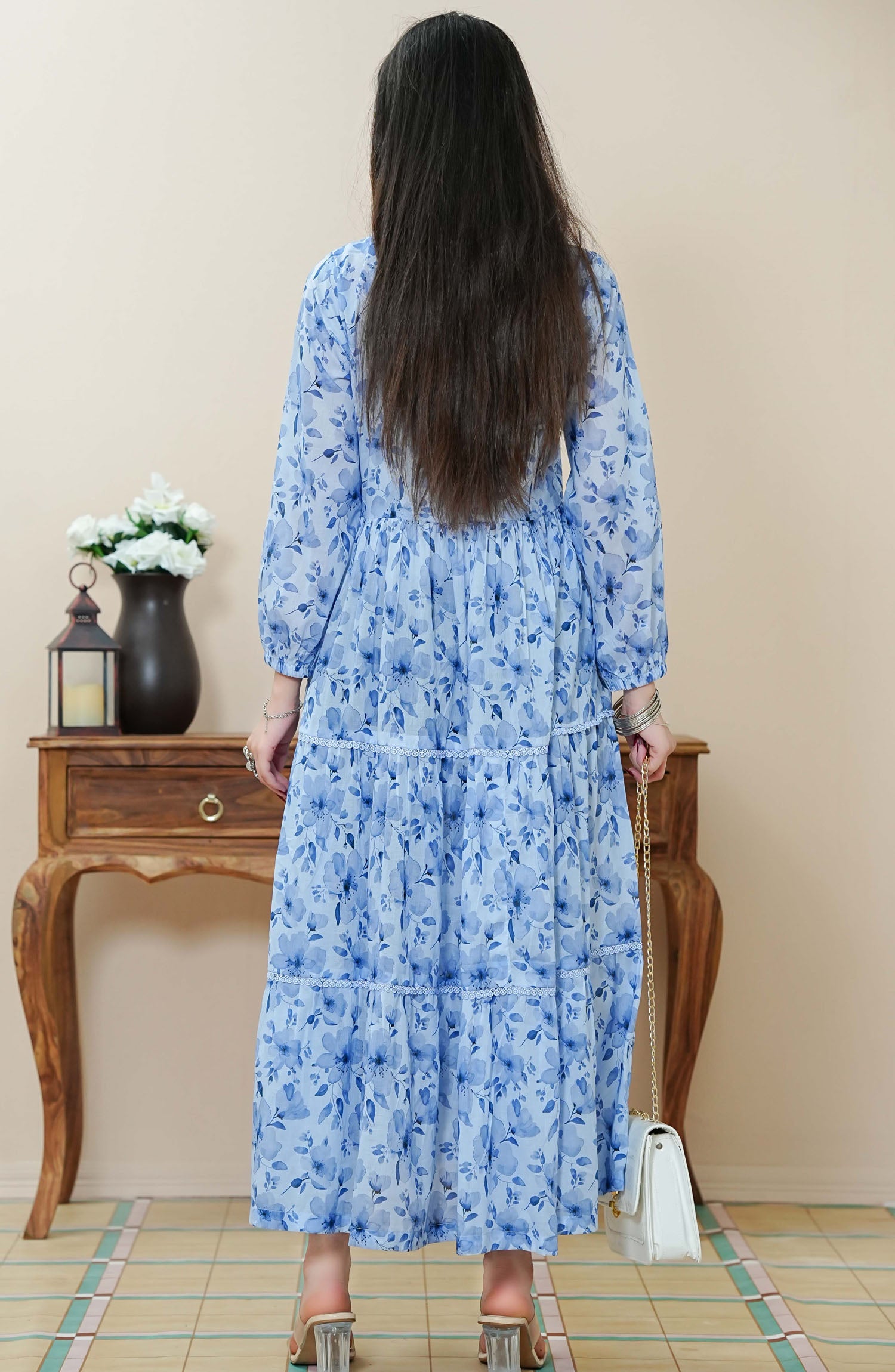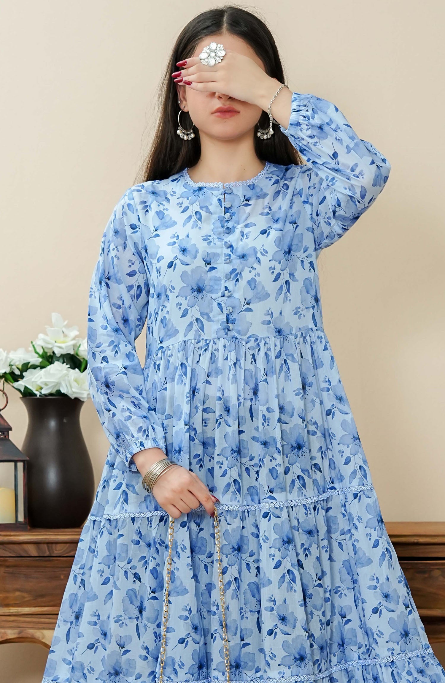 Home Quadra Floral by Amna Khadija Printed Lawn Stitched 1 Piece Frock - QFLD-14 - AM25QFL - Blue - Casual Collection
