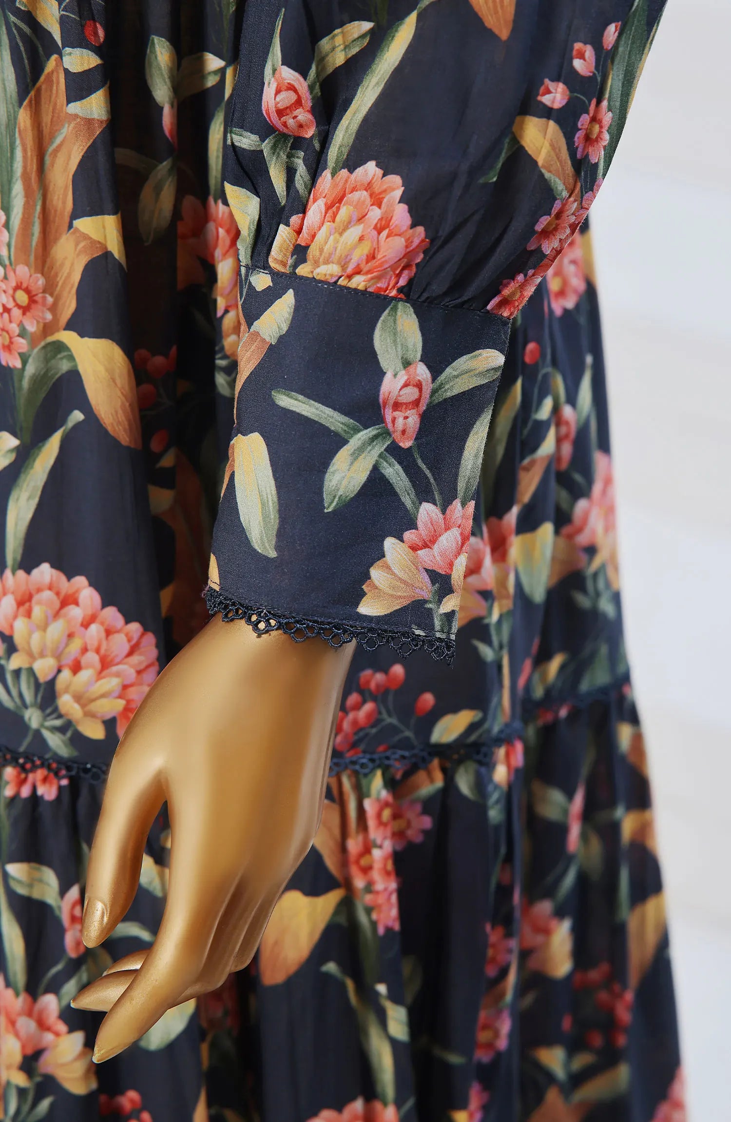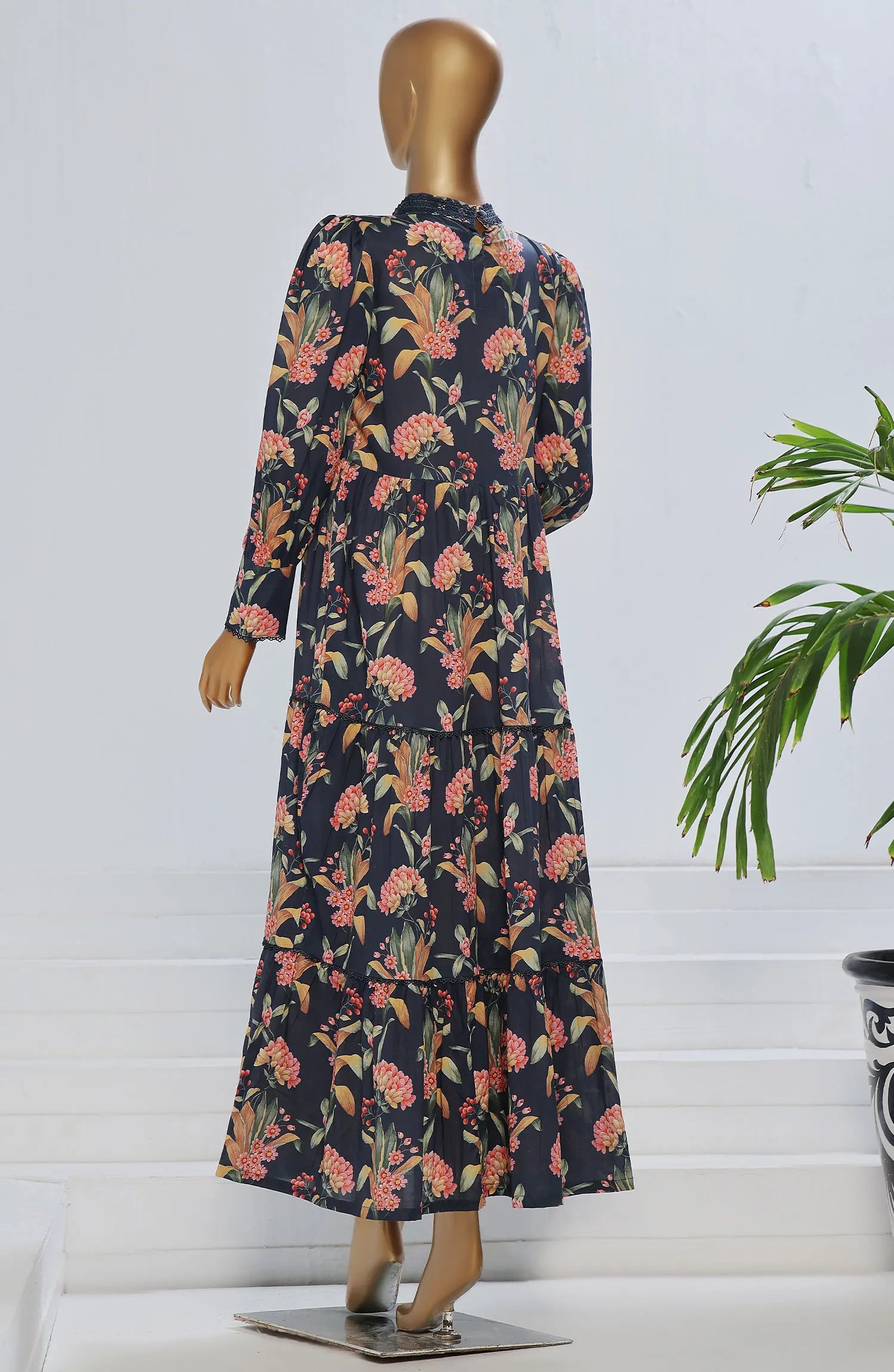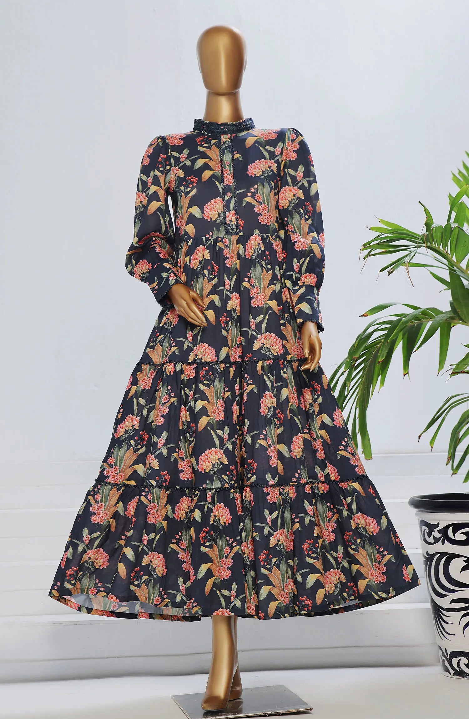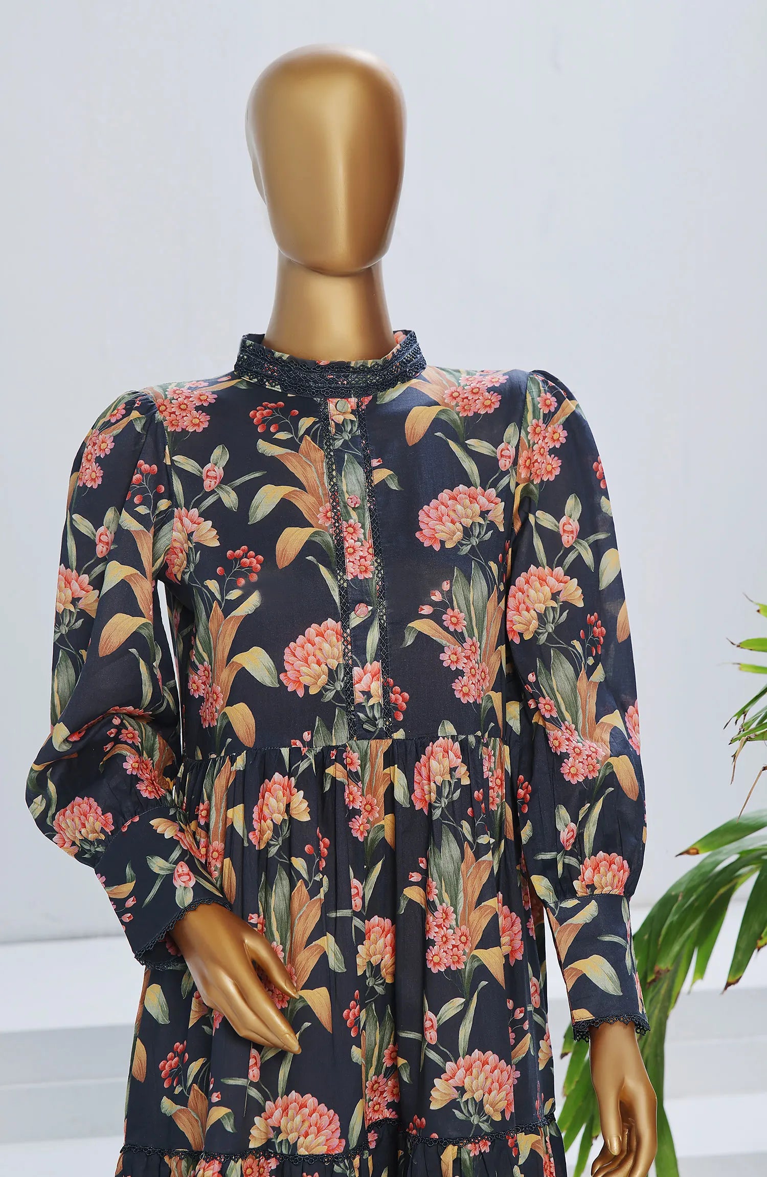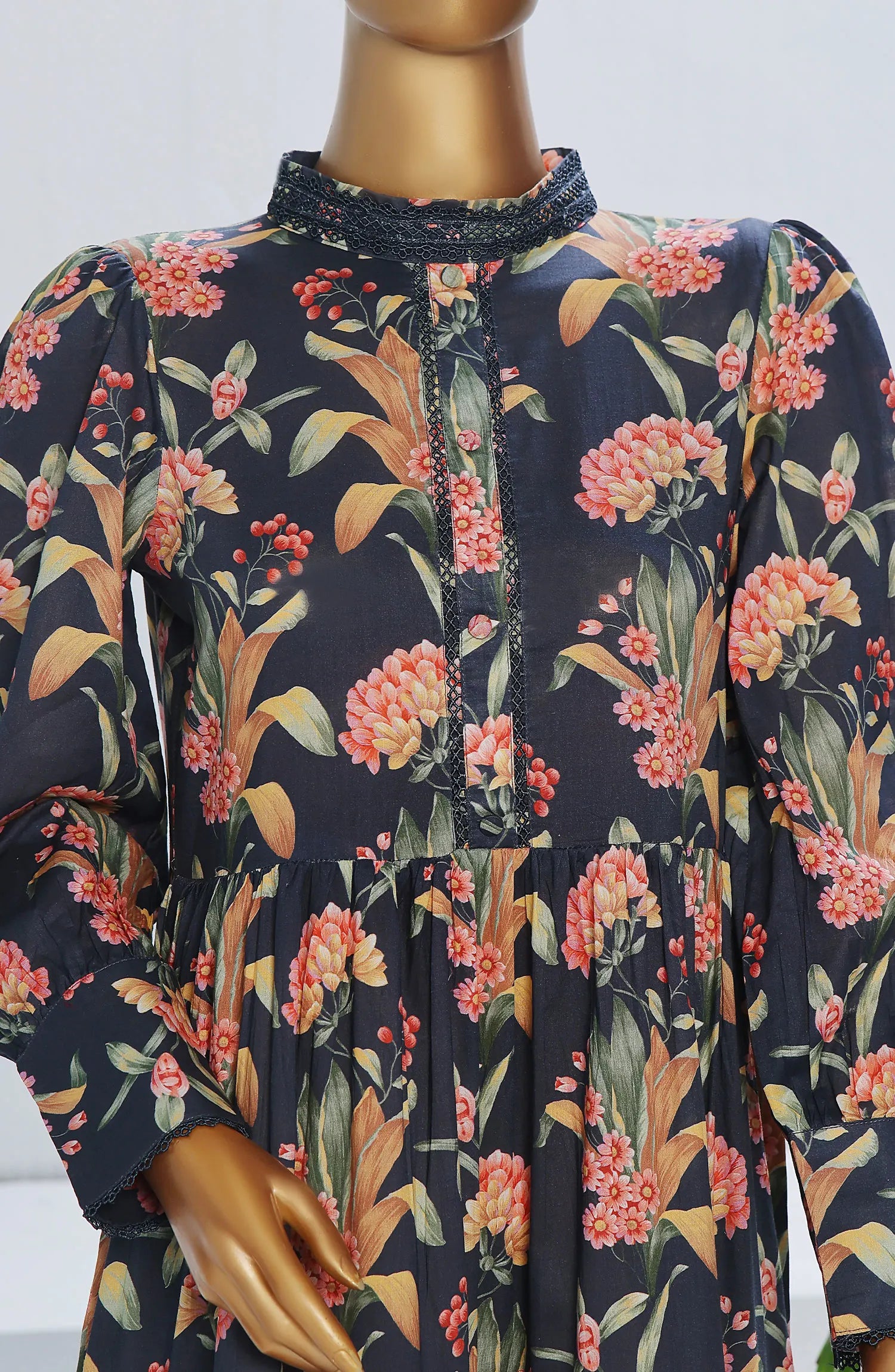 Digital Printed Exclusive Premium Lawn stitched long frock with embellishments.