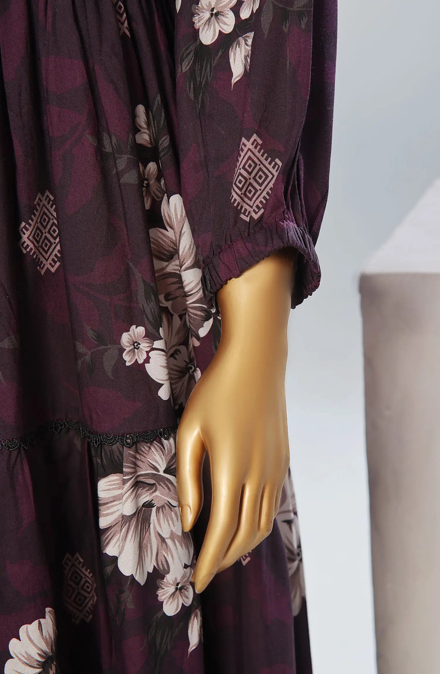 Modest Printed Cotton Stitched 3 Piece Suit - 9755-Prpl - MOD25PRF - Purple - Festive Girls Collection