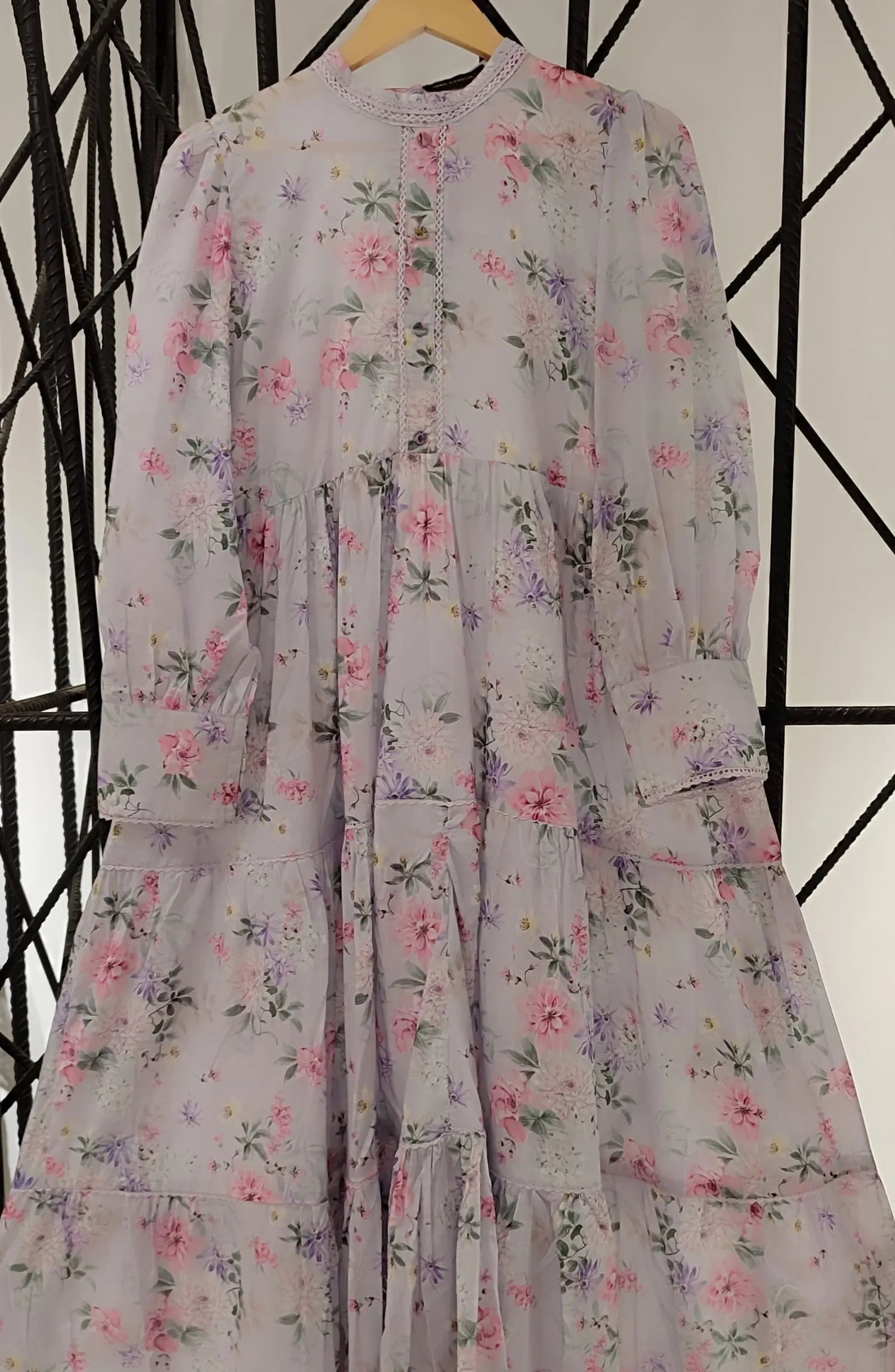 Digital Printed Exclusive Premium Lawn stitched long frock with embellishments.