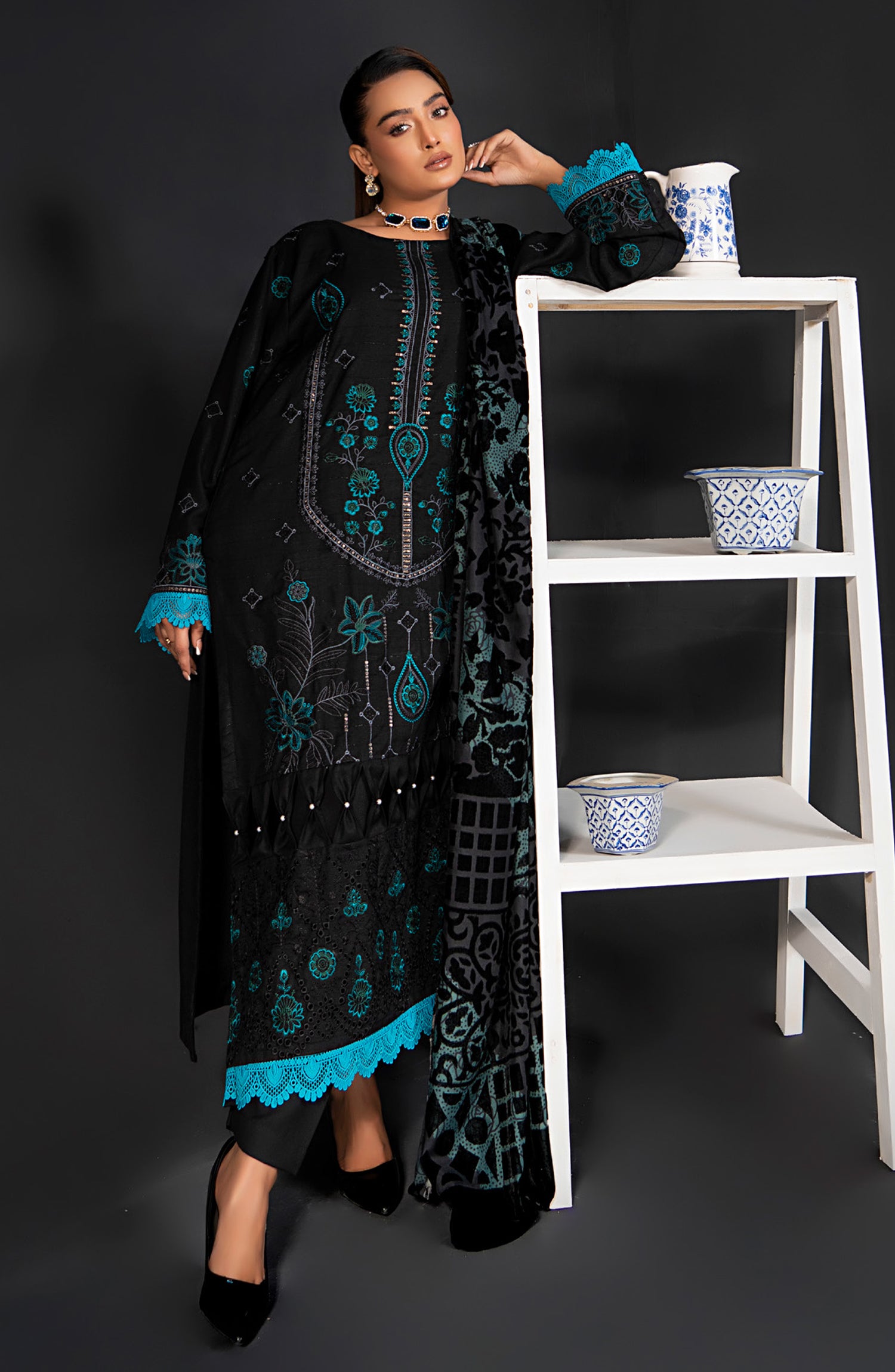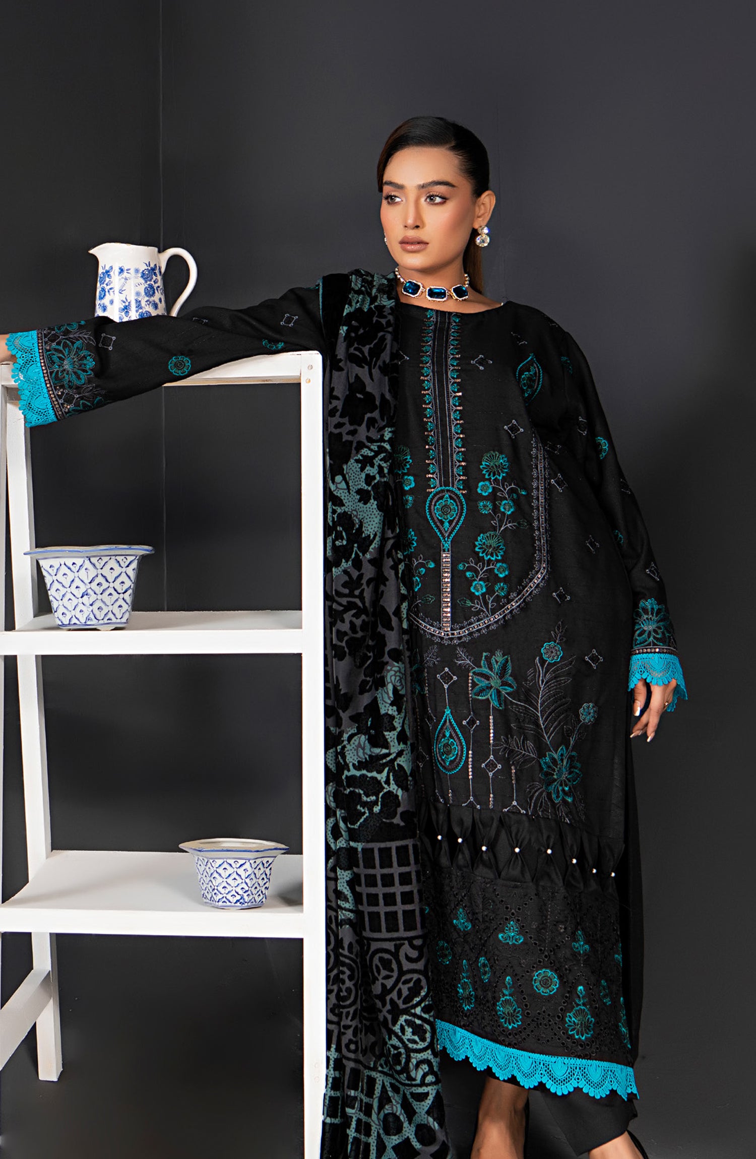 Luxurious Embroidered Palachi Unstitched 3 Piece Suit