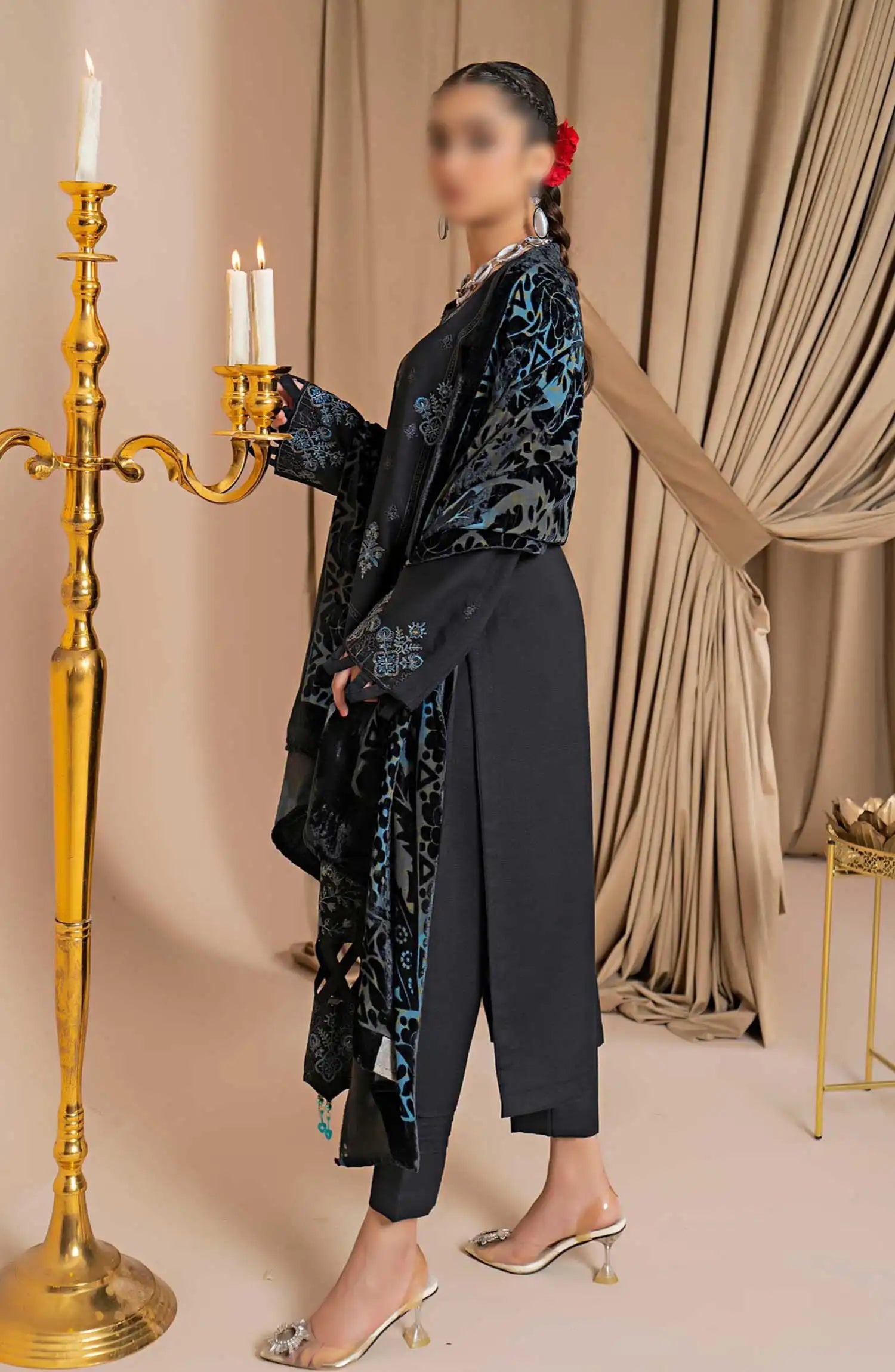 Baroque Chantelle Embroidered Net Unstitched 3 Piece Suit - V14-D06 - BQ25CHN - Blue - Formal Collection