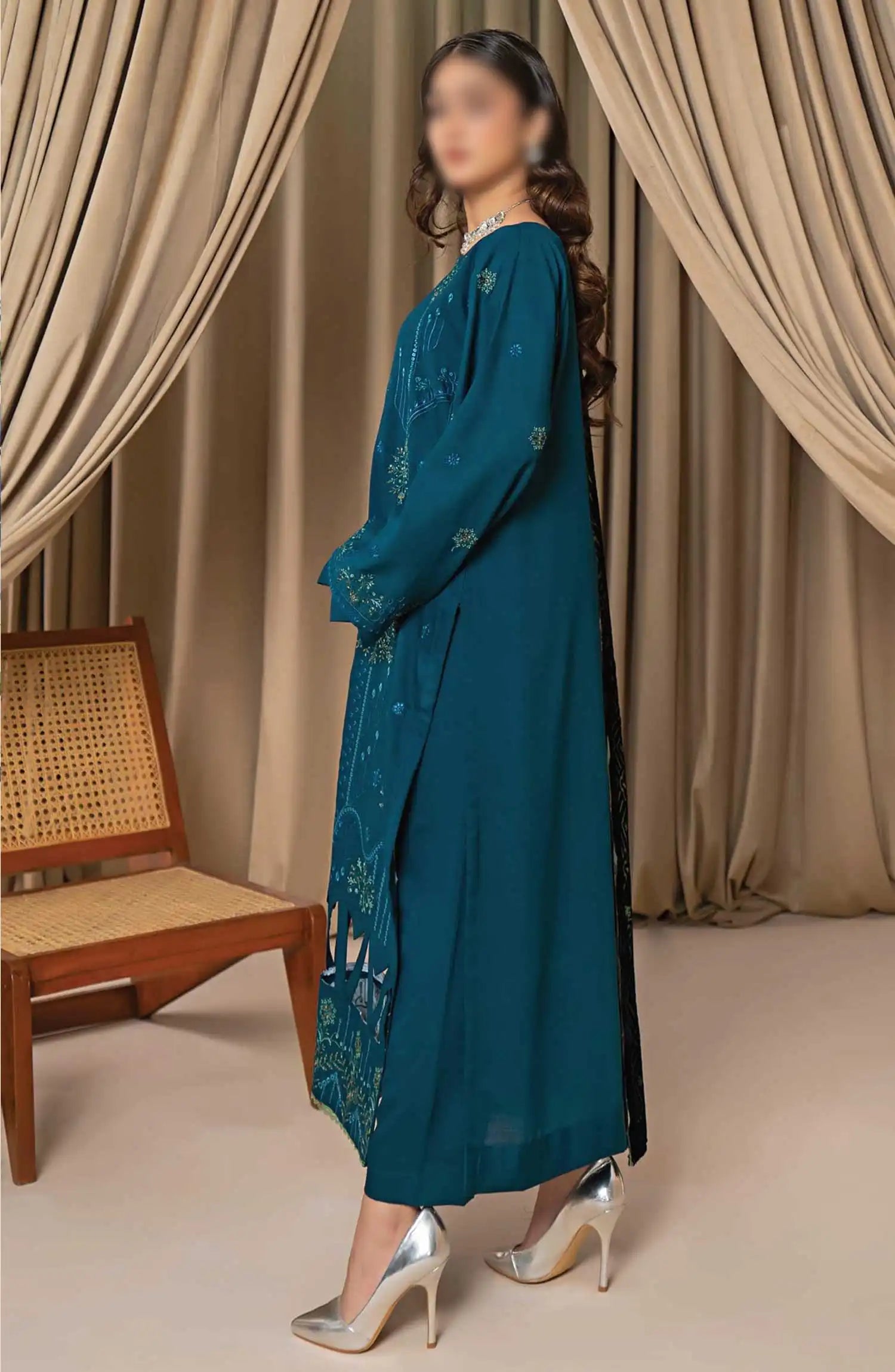 3 piece Embroidered Slub Dhanak Wool Suit with Palachi Shawl .