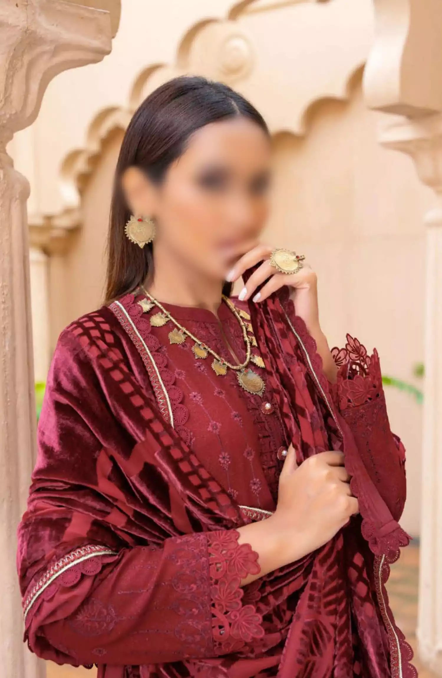 Queen Winter Palachi Shawl Embroidered Collection has been styled in the image for photography and illustrative purposes.