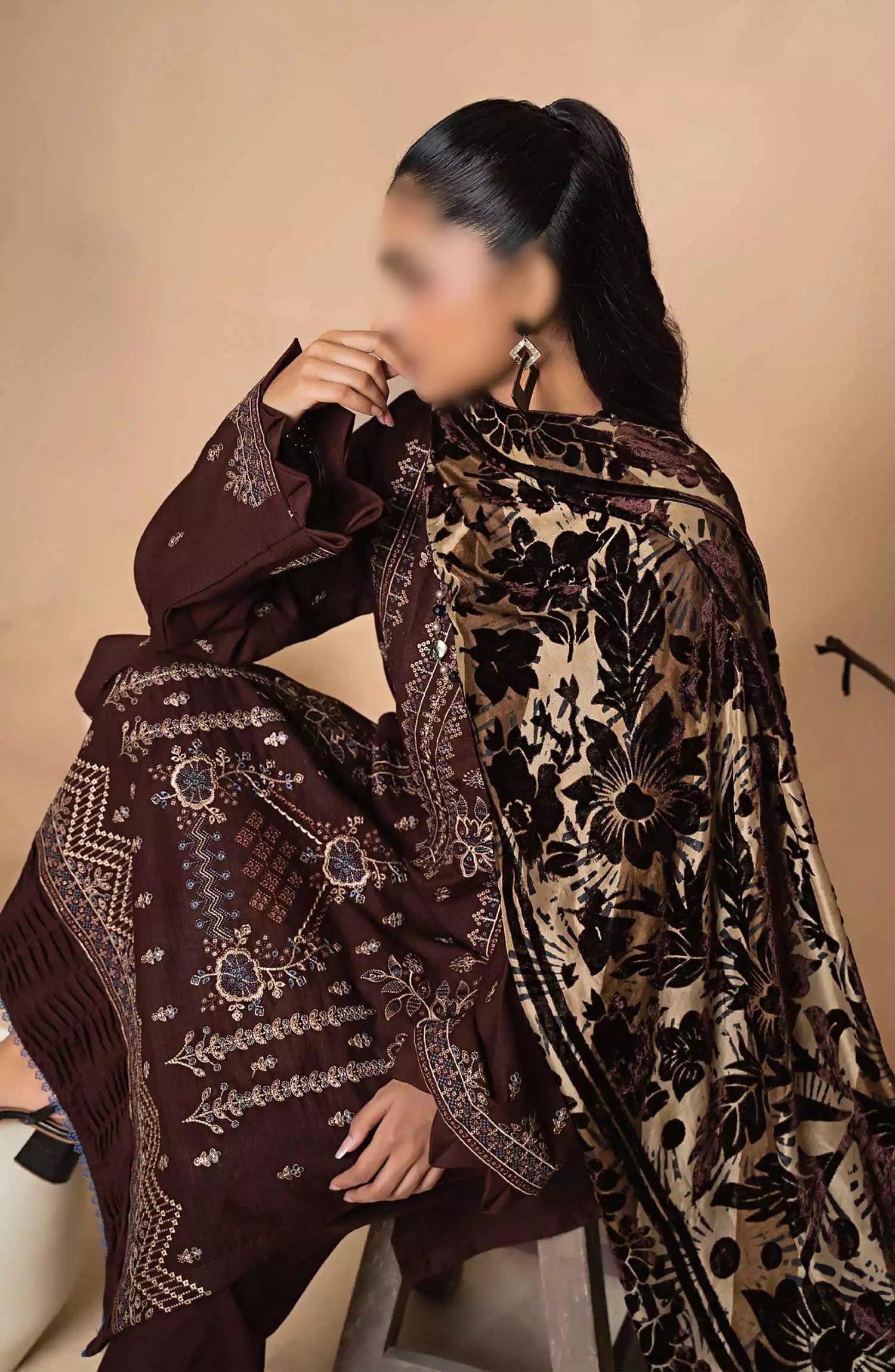 3 piece Embroidered Bana Dora Dhanak unstitch winter Suit with Palachi Shawl .