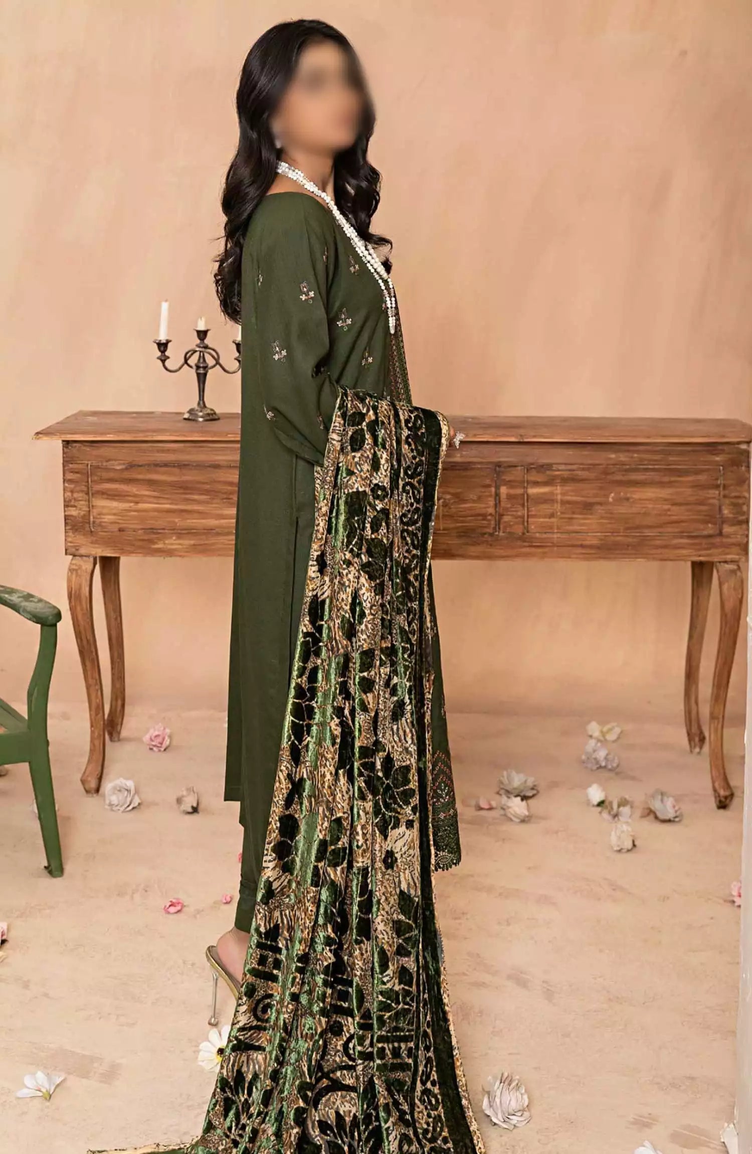 3 piece Embroidered Bana Dora Dhanak unstitch winter Suit with Palachi Shawl .