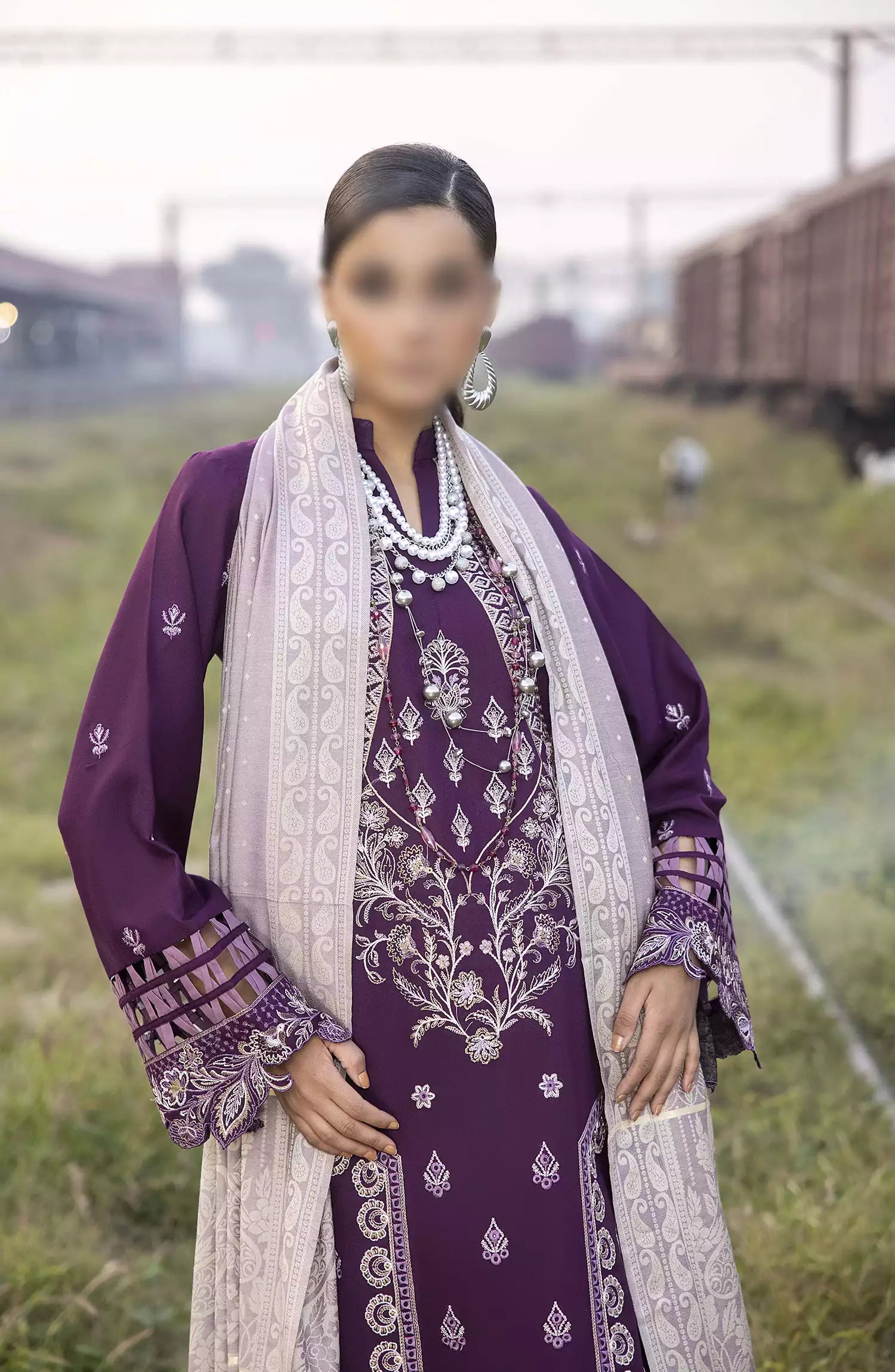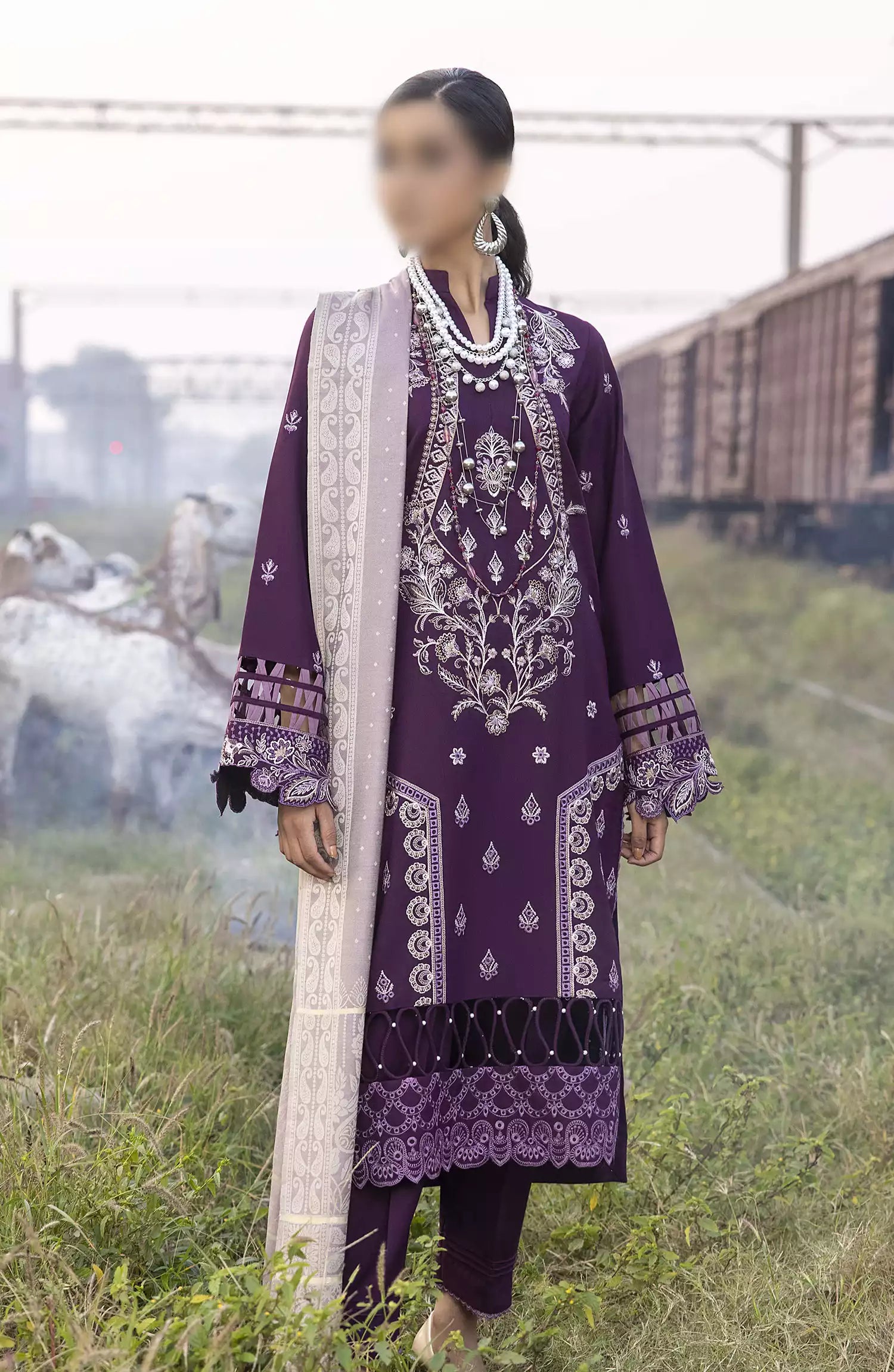 Rahgeer Embroidered Wool Collection has been styled in the image for photography and illustrative purposes.