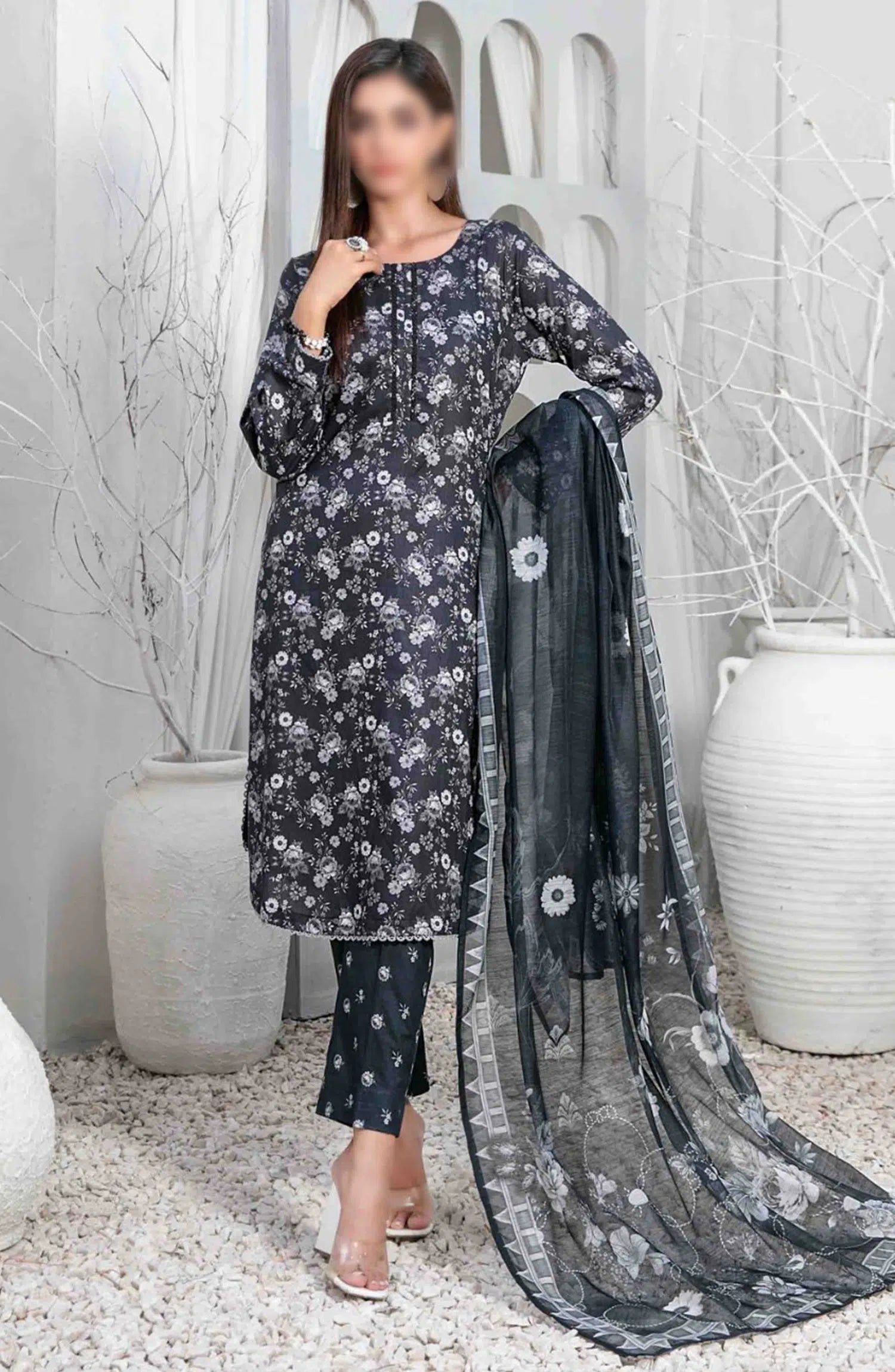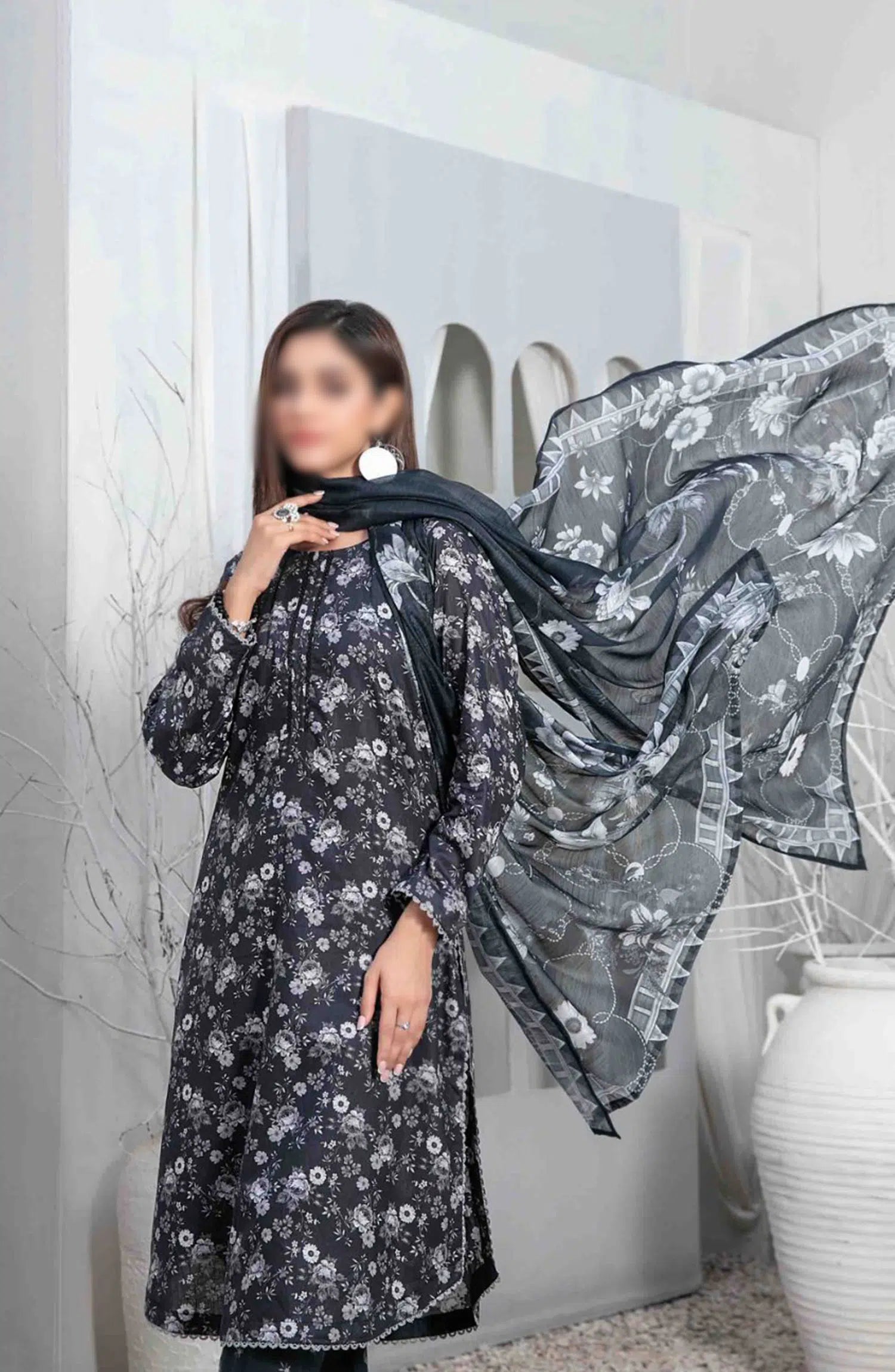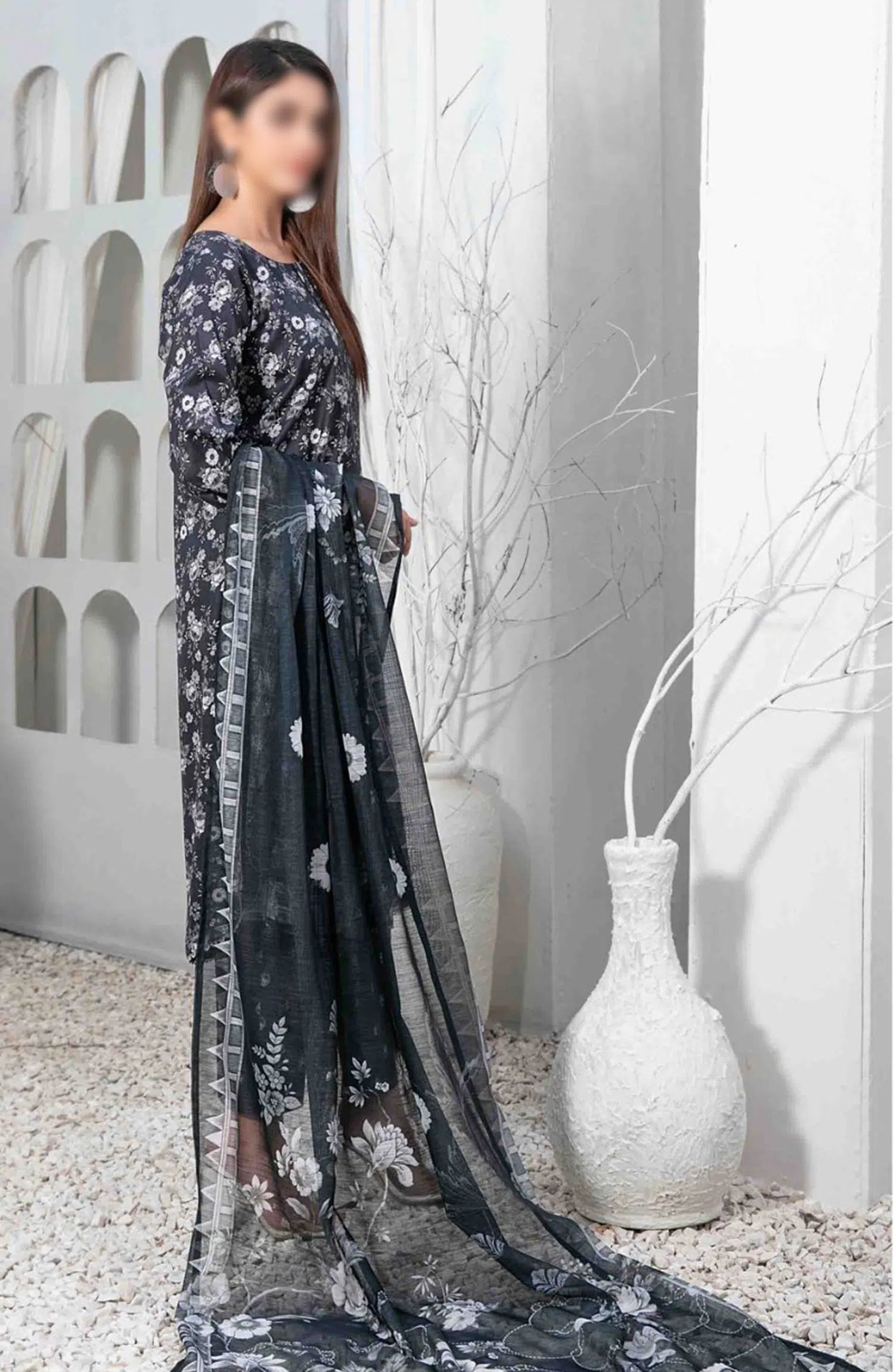 Un-Stitched Digital Printed Black & White Lawn Shirt