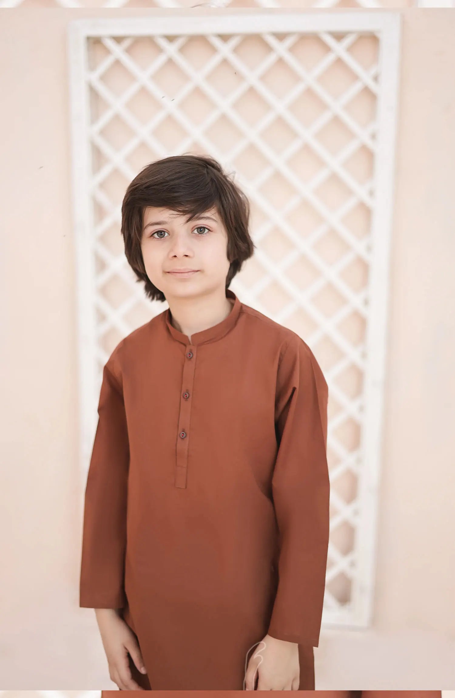 This brown dress is made from wash andhich is known for its easy maintenance and wrinkle-resistant properties. The kurta features intricate detailing work, adding a touch of elegance to the overall design. It's a versatile piece that can be dressed up or down for any occasion. Pair it with matching trousers, and you'll have a stylish and comfortable outfit ready to go!
