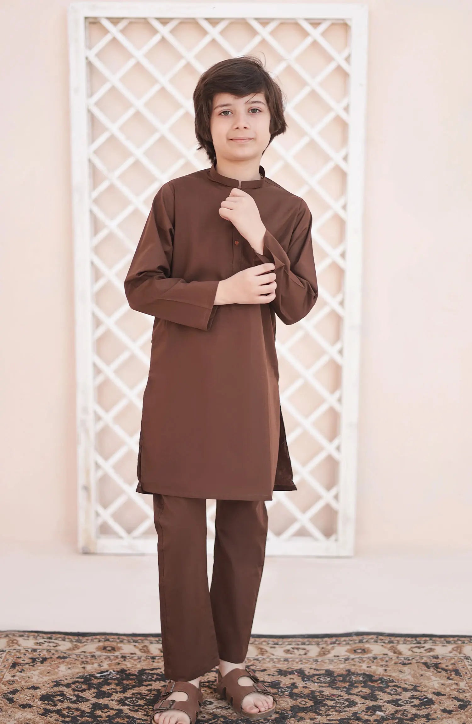 Ramazan Edit Kurta Trouser Collection By Hassan Jee - KT 22 Wood Brown Kurta Trouser