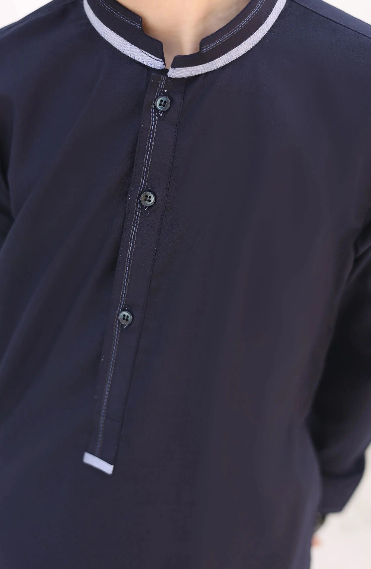 The kurta is a stylish shade of blue and features intricate detailing work, which adds a touch of elegance. The wash and wear fabric makes it super convenient to maintain. The pajama is a matching grey color, completing the look with a comfortable fit. It's the perfect combo of style and ease!
