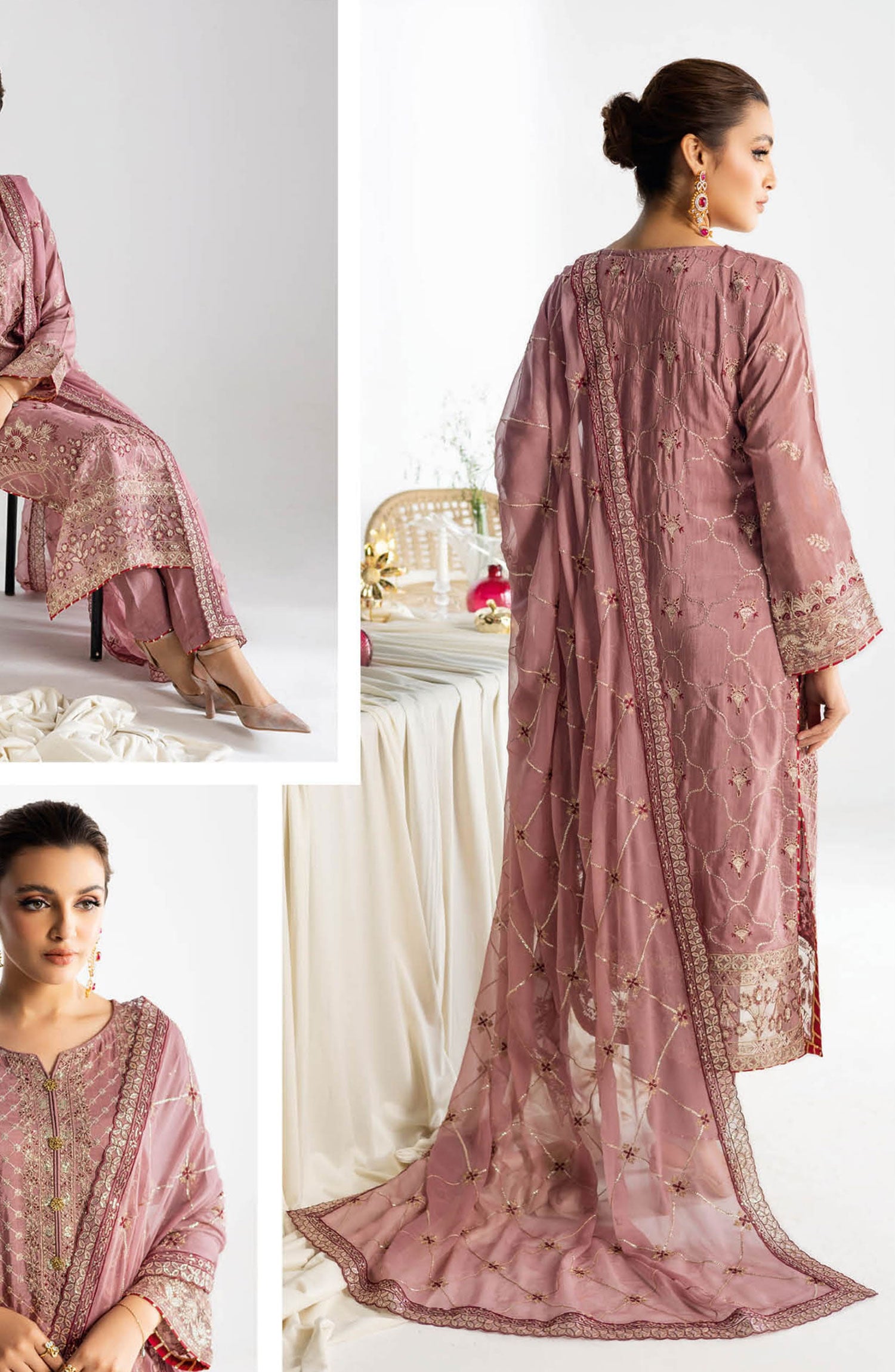 Ramsha Aangan Luxury Rawsilk Collection Vol 01 has been styled in the image for photography and illustrative purposes.