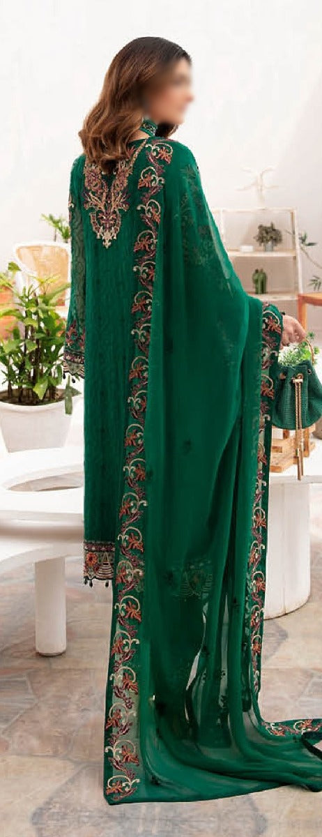 3 Piece Luxury Embroidered Chiffon Suit .